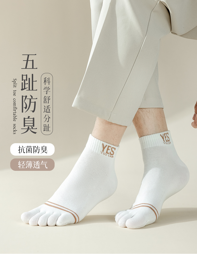 五指袜男士棉袜脚趾中筒袜男款袜子男纯棉五趾秋季薄款夏季男袜TC