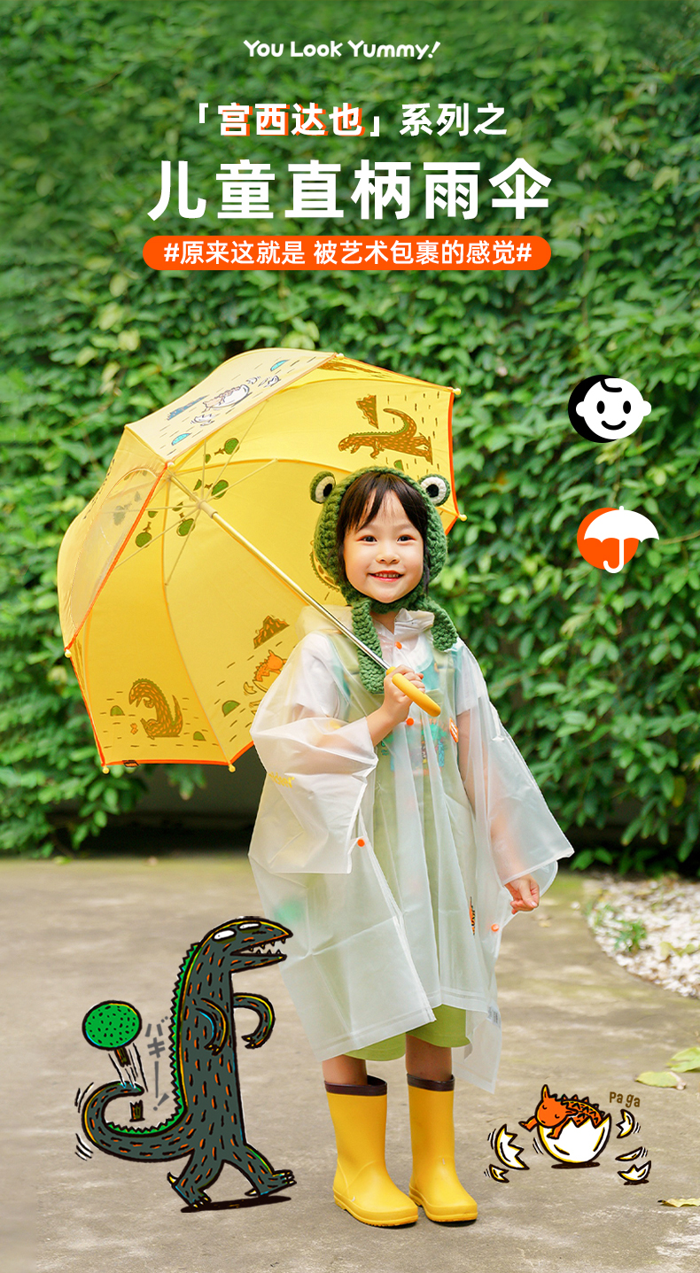mideer弥鹿儿童雨伞男女孩宝宝幼儿园上学专用遮阳直柄晴雨两用伞