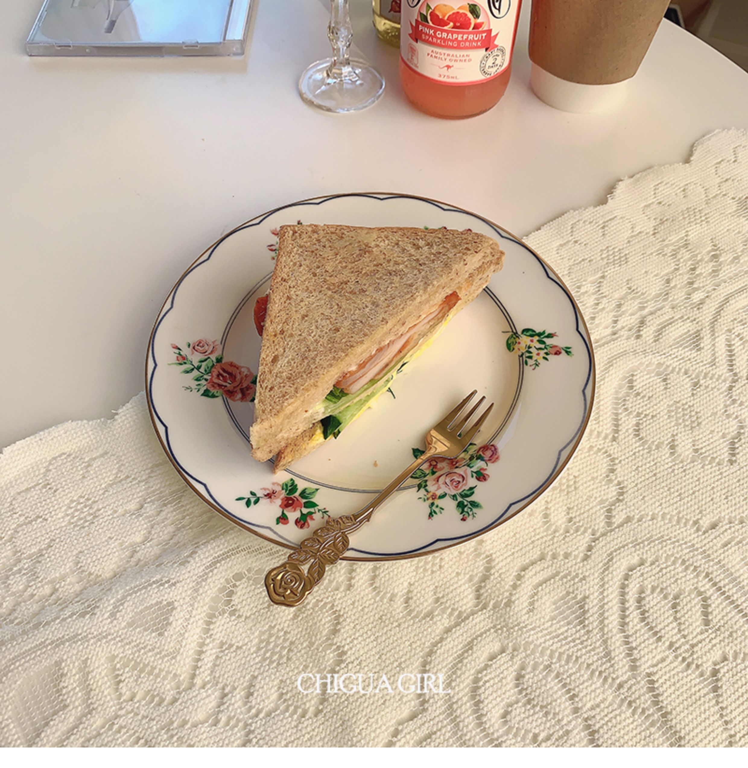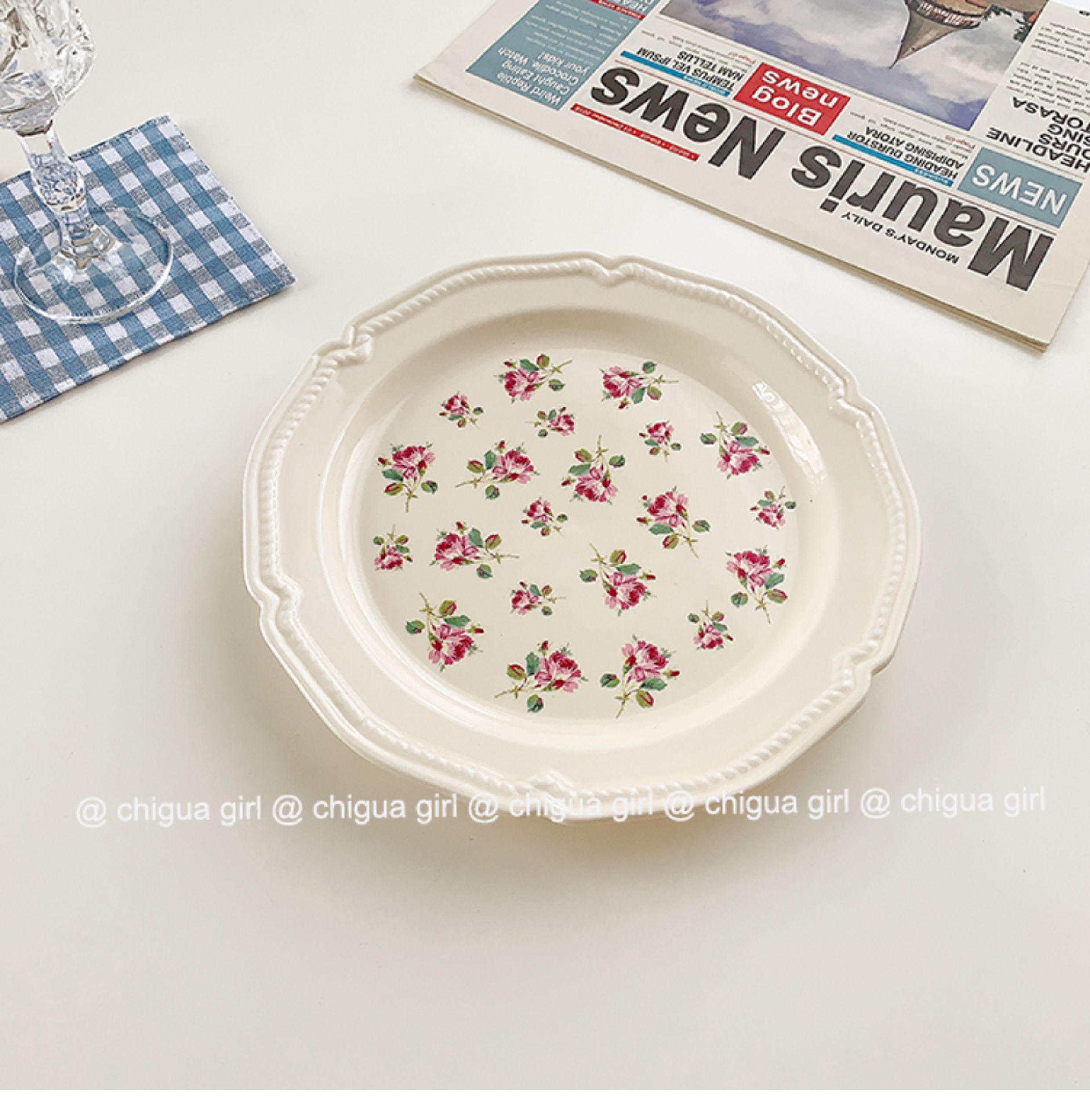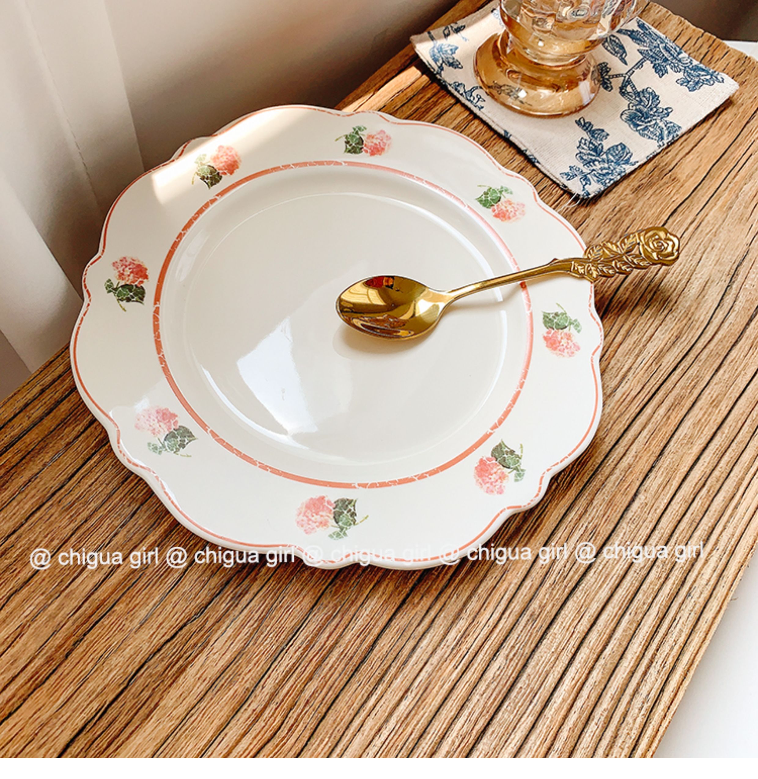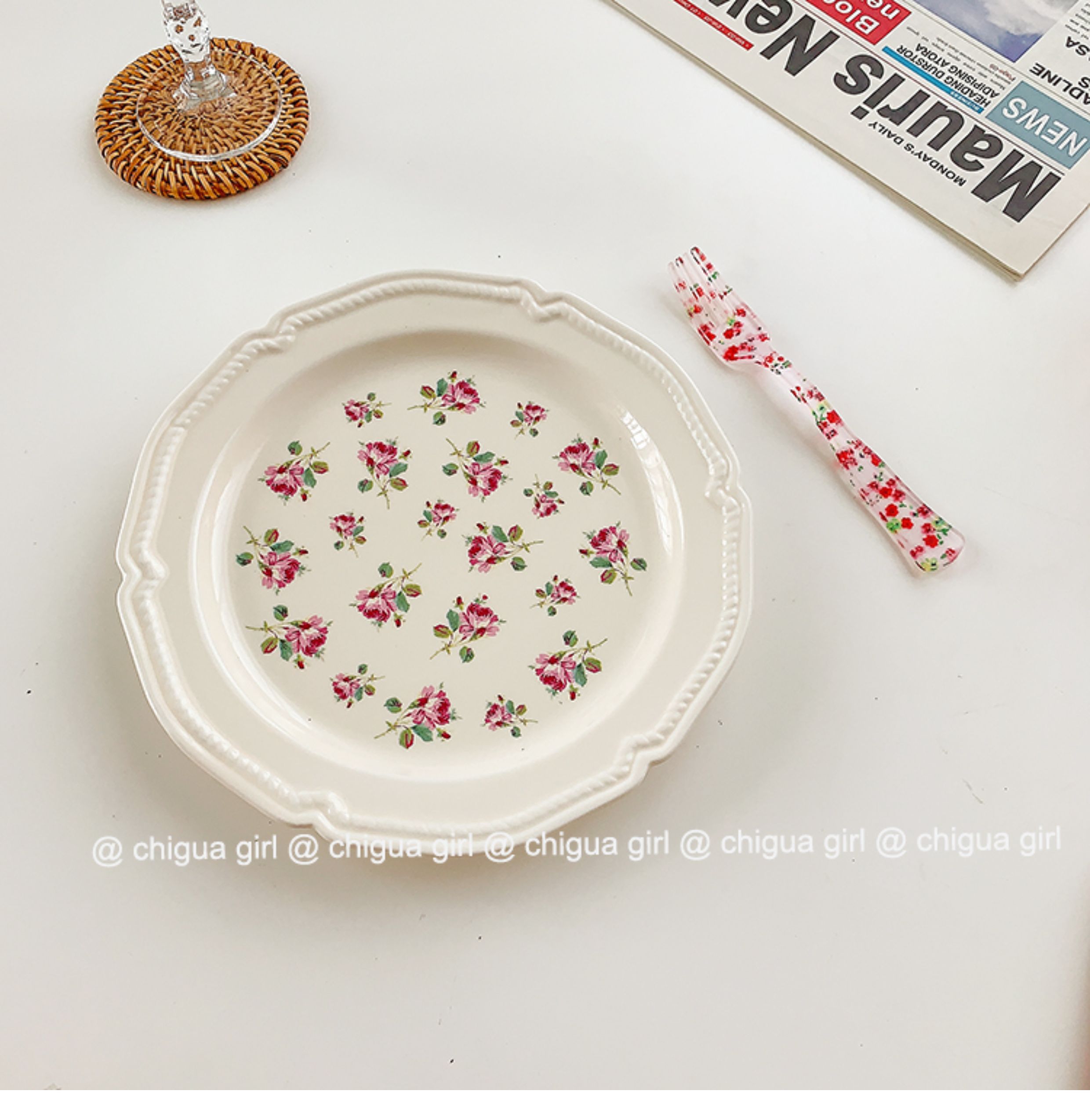 韩国ins藤条花边浮雕餐盘郁金香盘法式少女陶瓷盘甜品盘水果盘子
