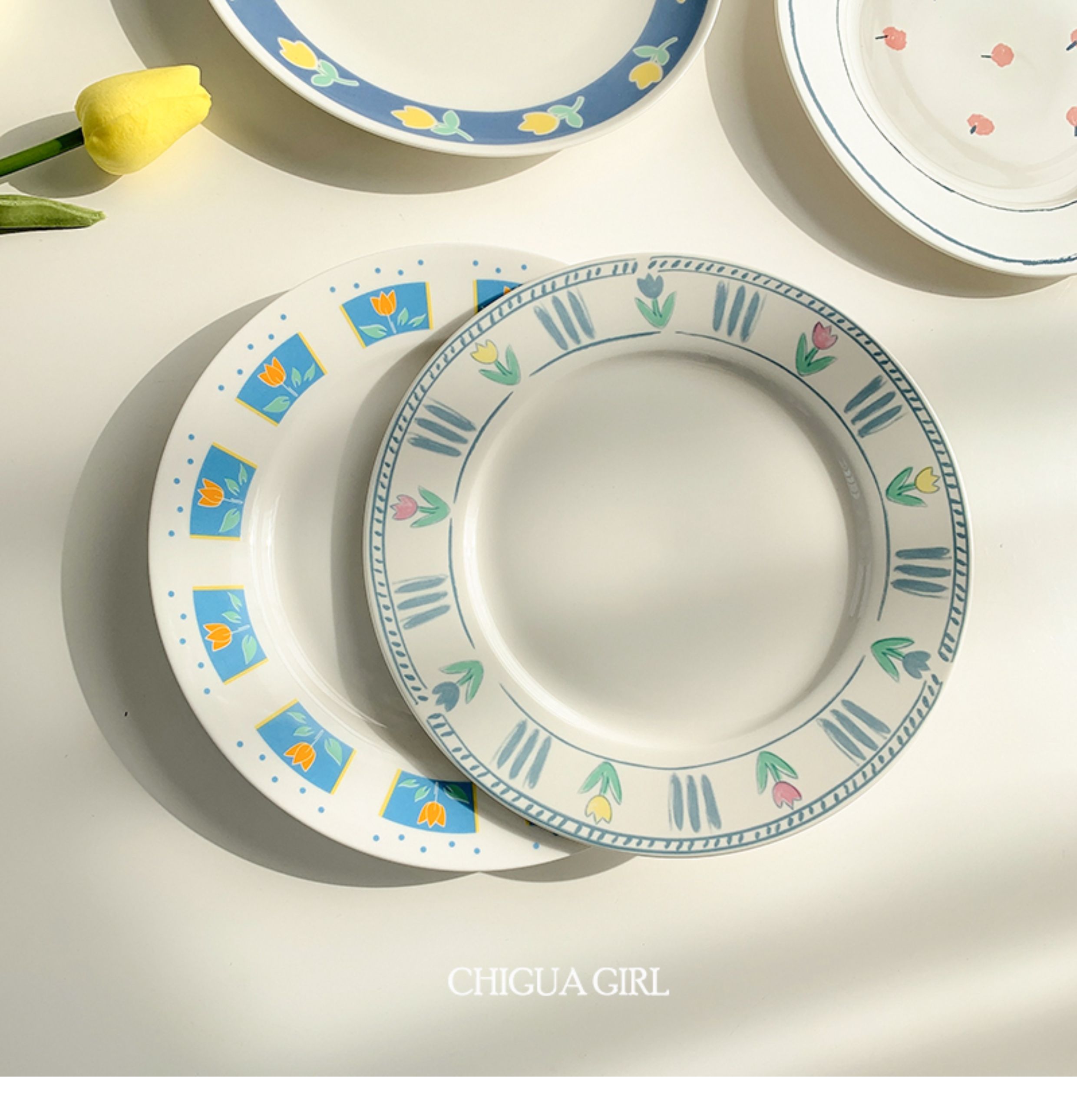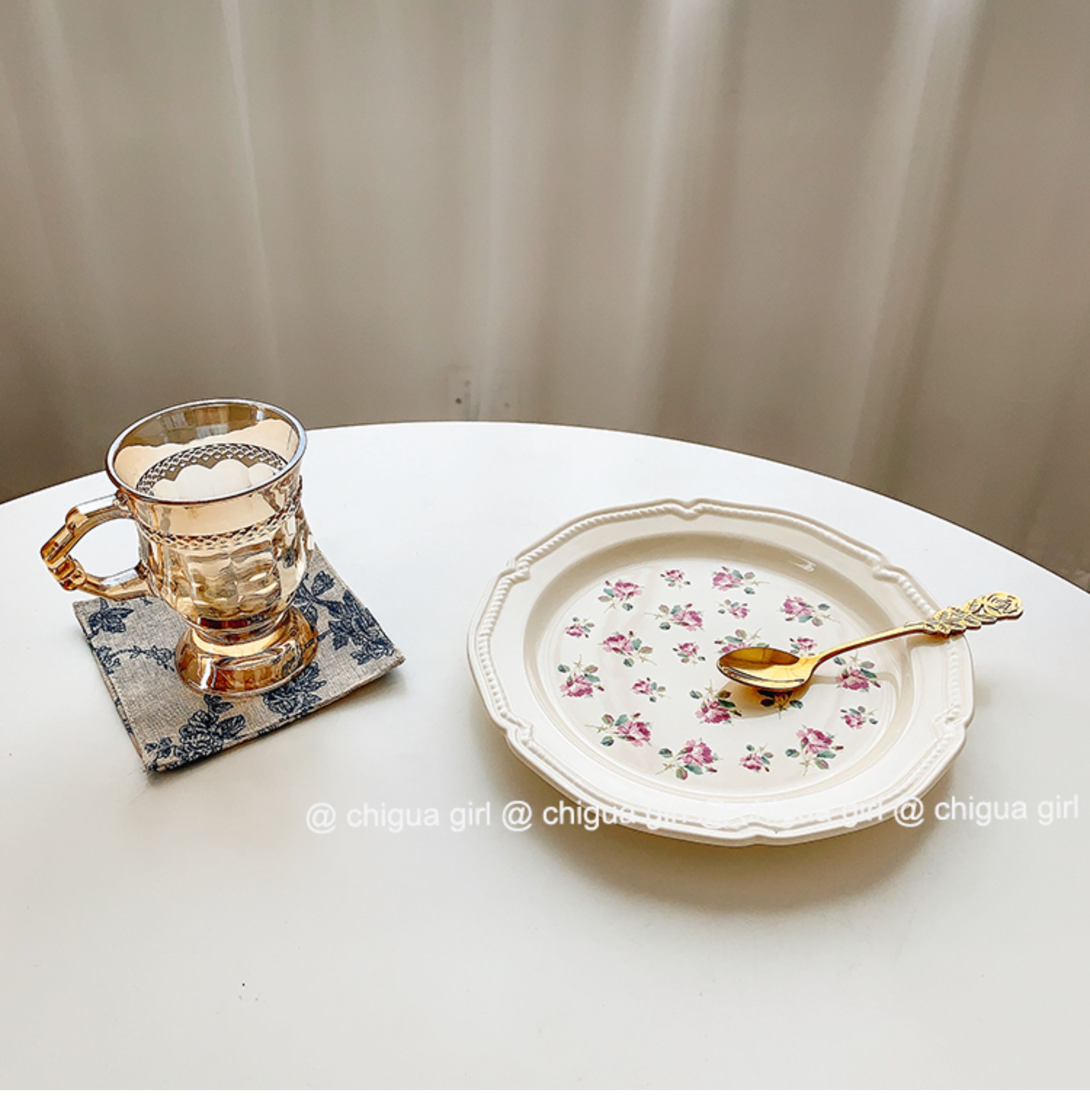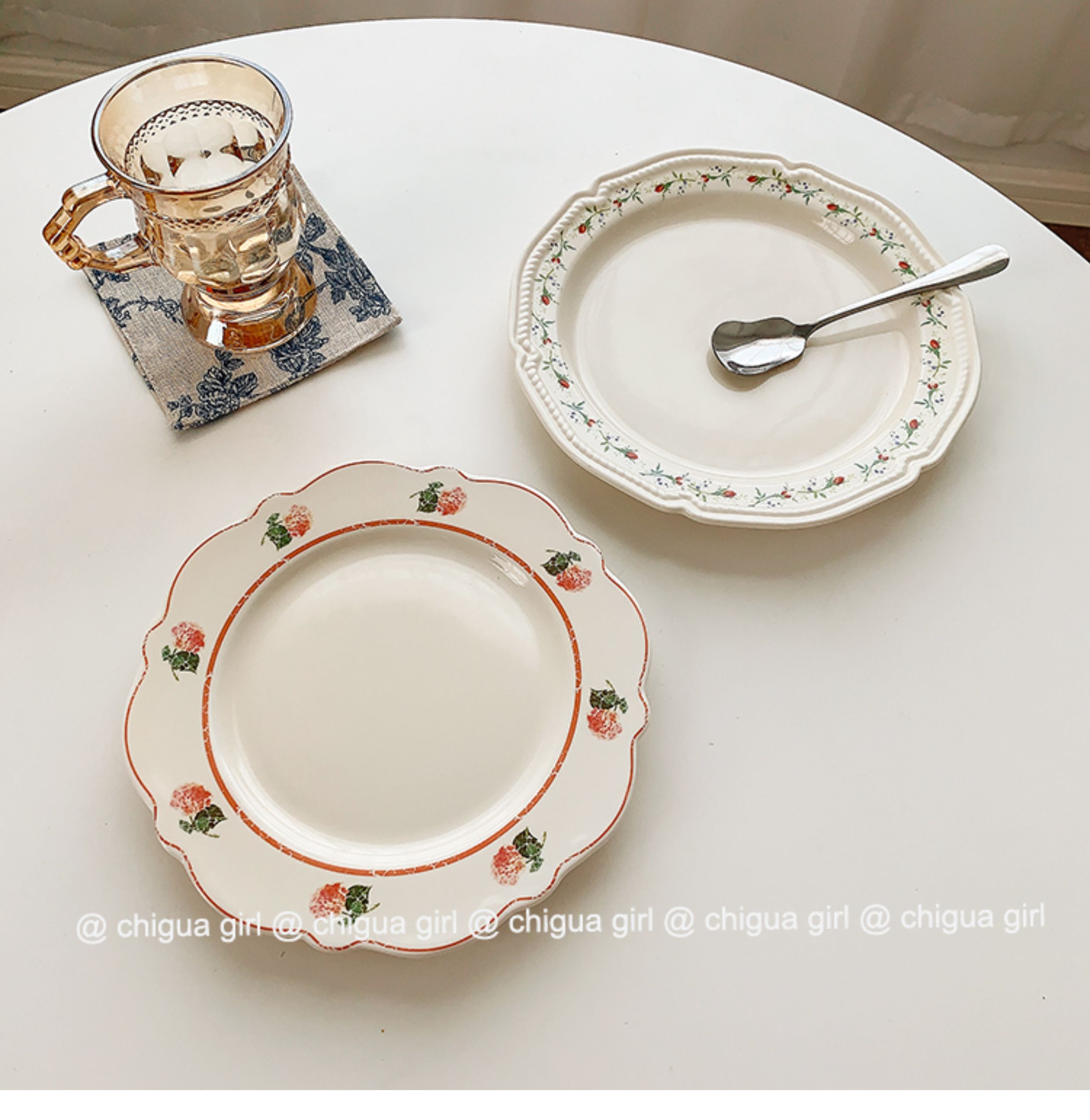 韩国ins藤条花边浮雕餐盘郁金香盘法式少女陶瓷盘甜品盘水果盘子