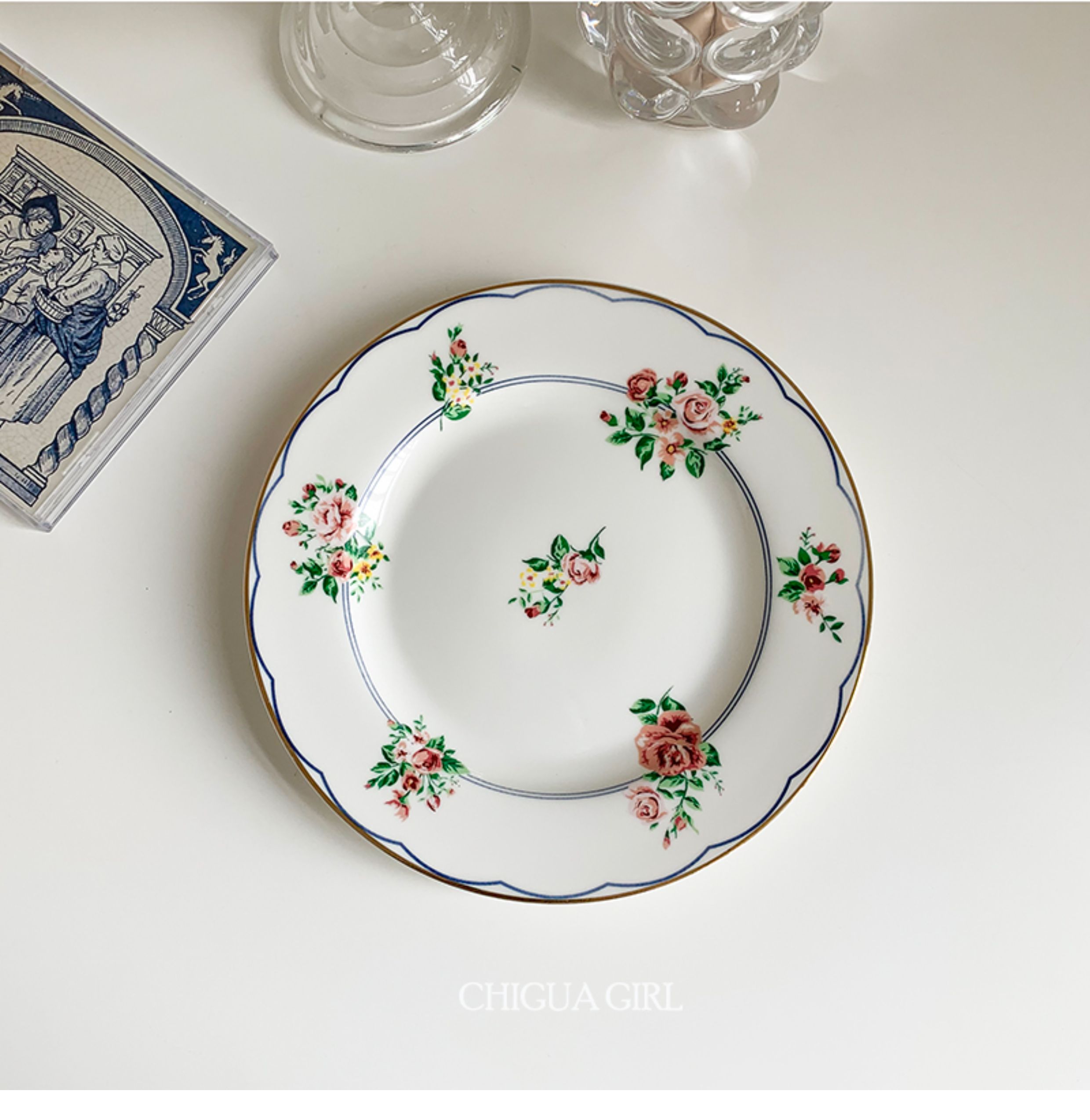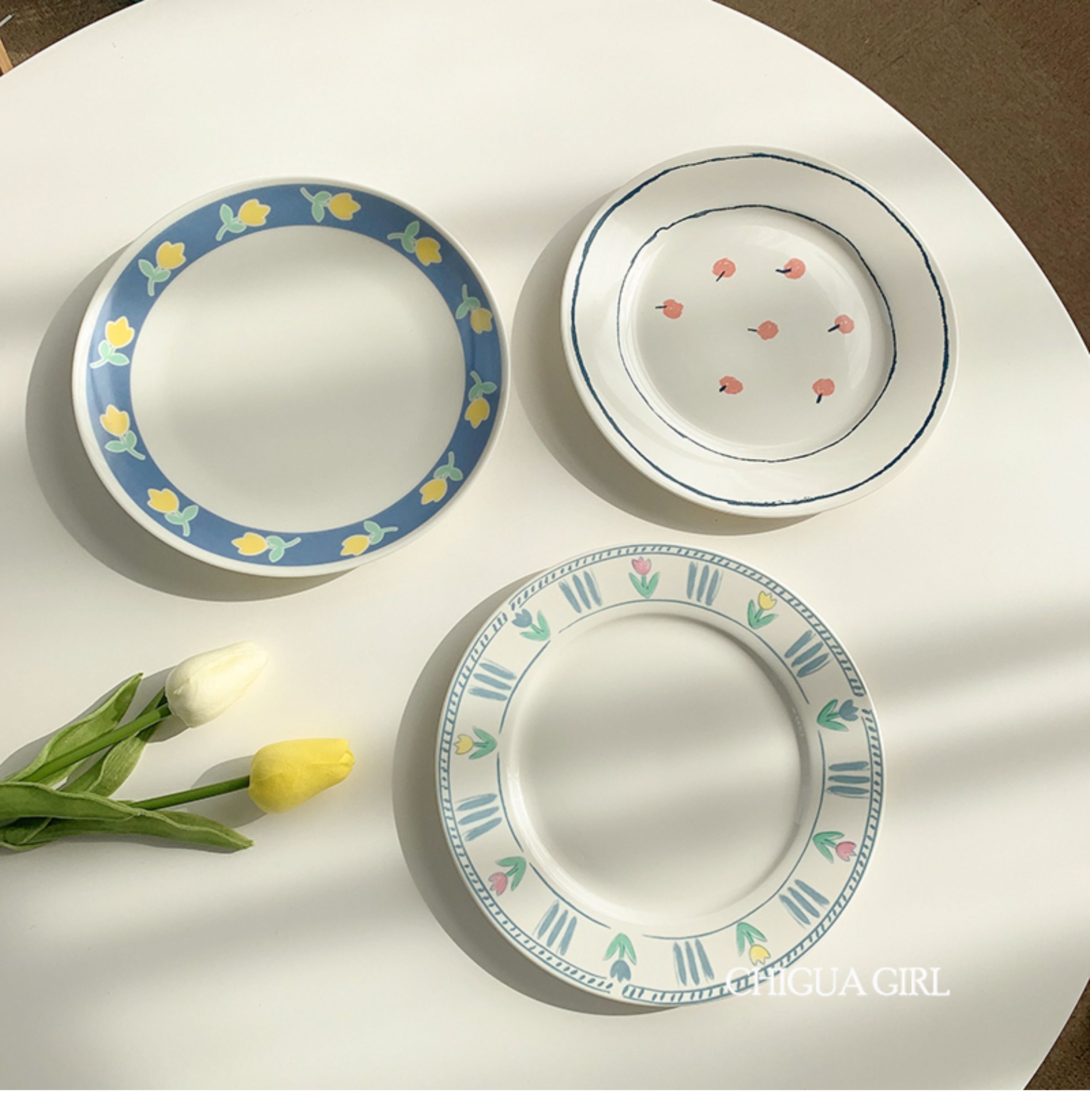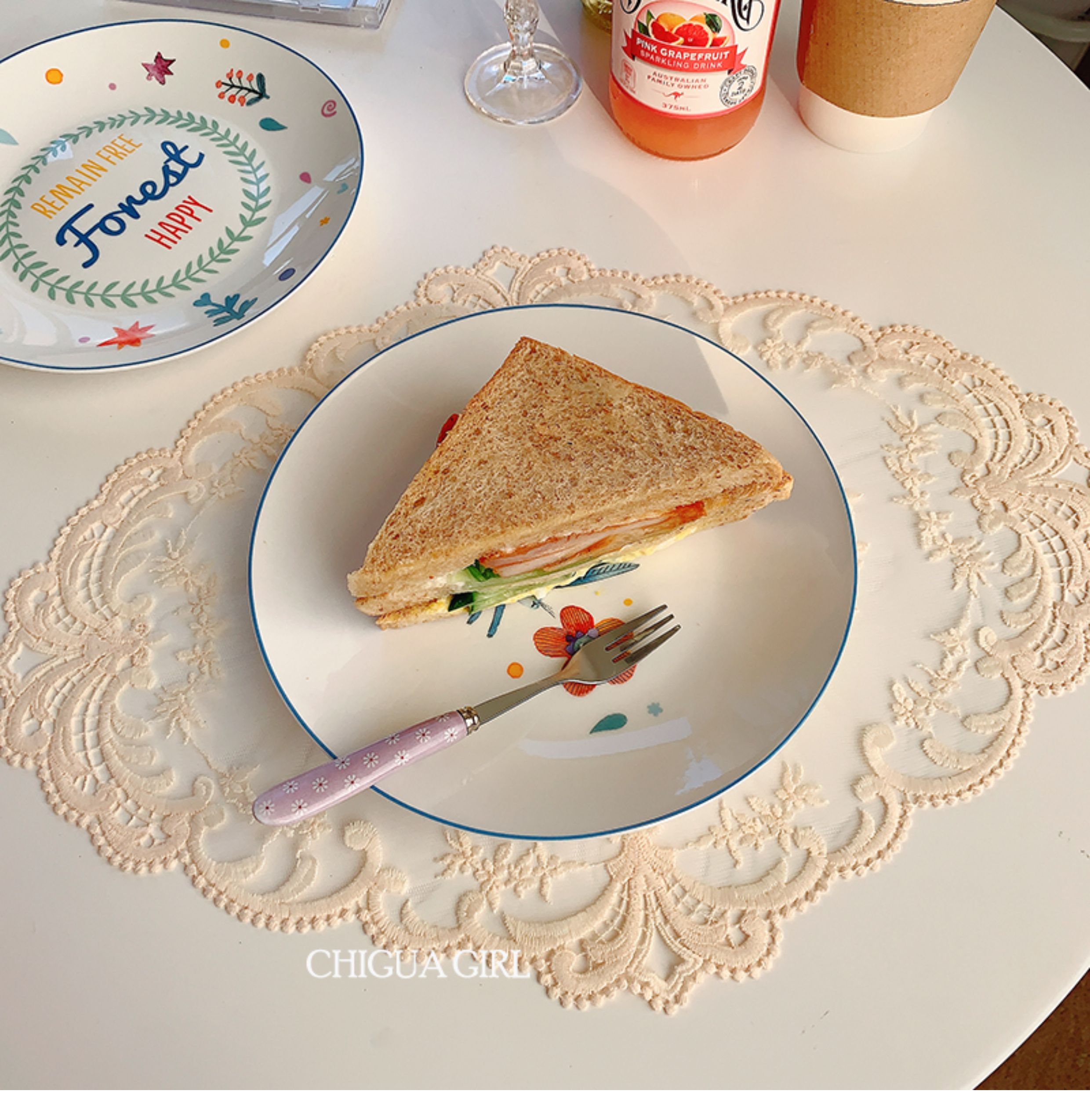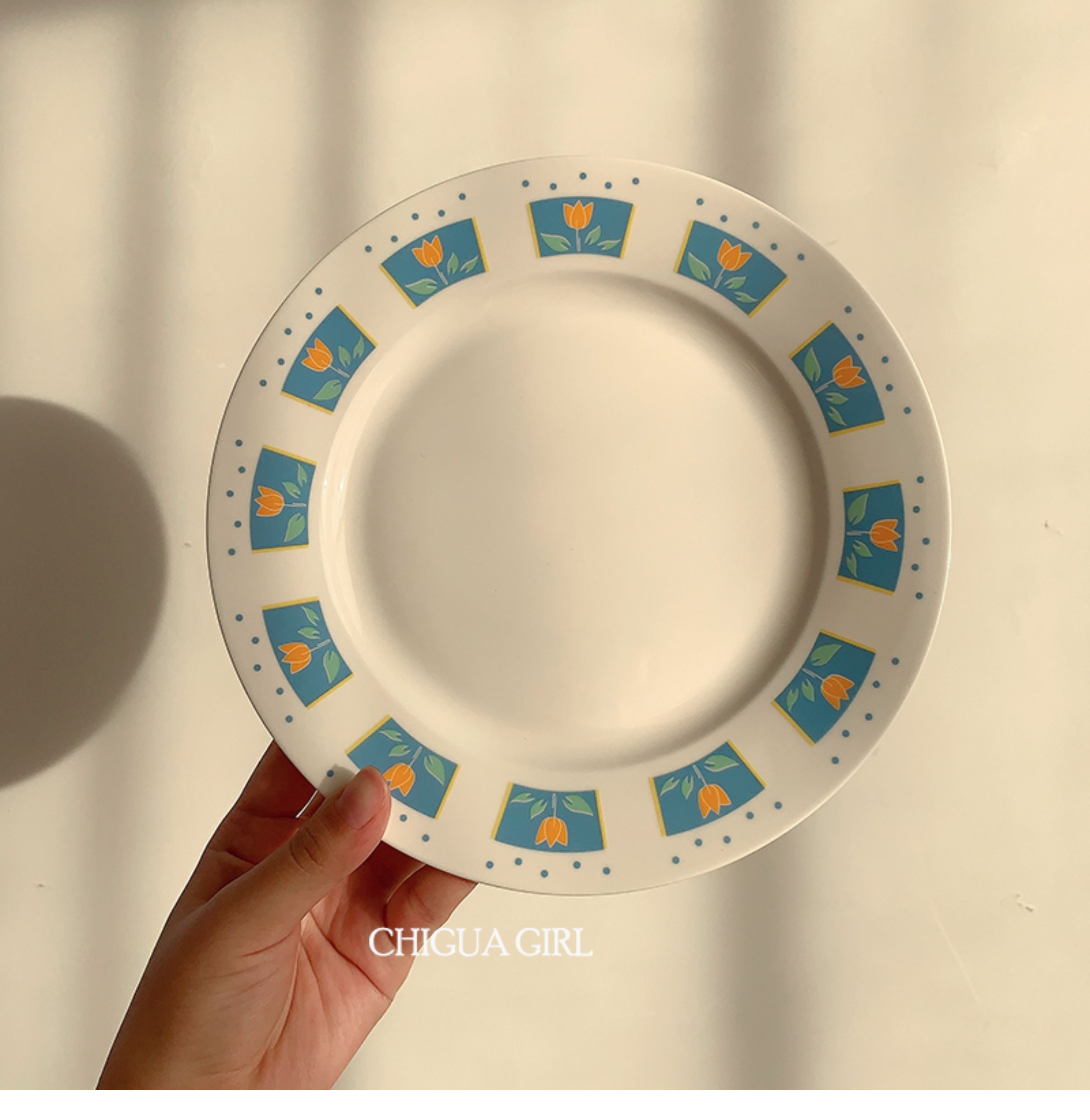 韩国ins藤条花边浮雕餐盘郁金香盘法式少女陶瓷盘甜品盘水果盘子