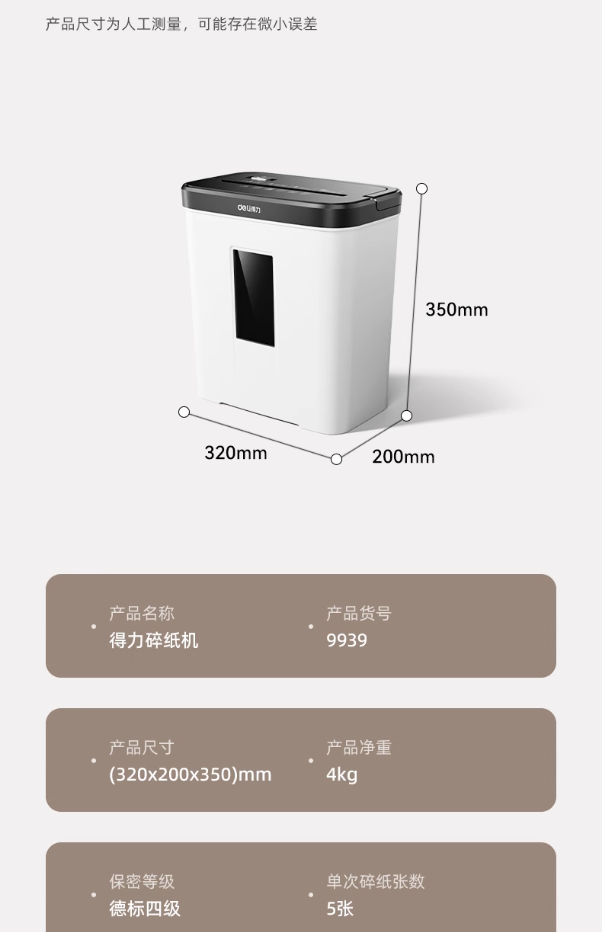 得力电动碎纸机9939N家用文件废纸粉碎机9939C 9929 GA191 GA390 GA590 9926全国联保 含发票