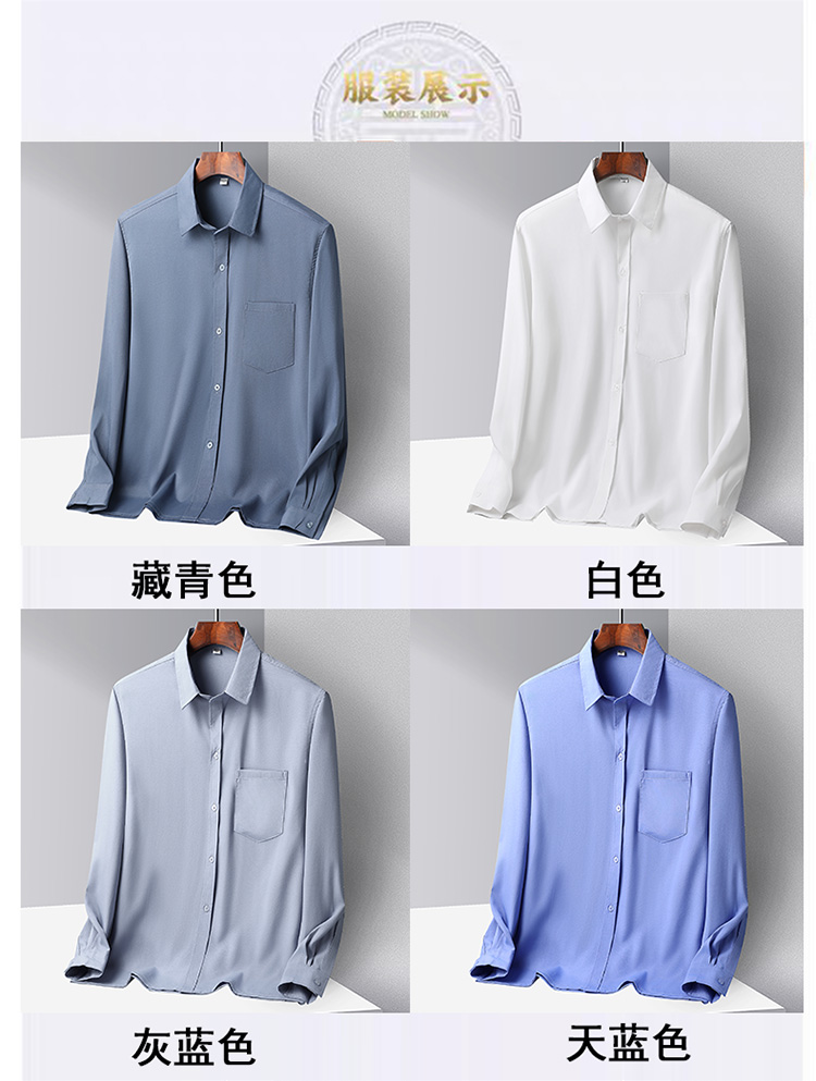 中老年人男士衬衫冰丝休闲长袖衬衣薄款爸爸夏装宽松纯色爷爷衣服