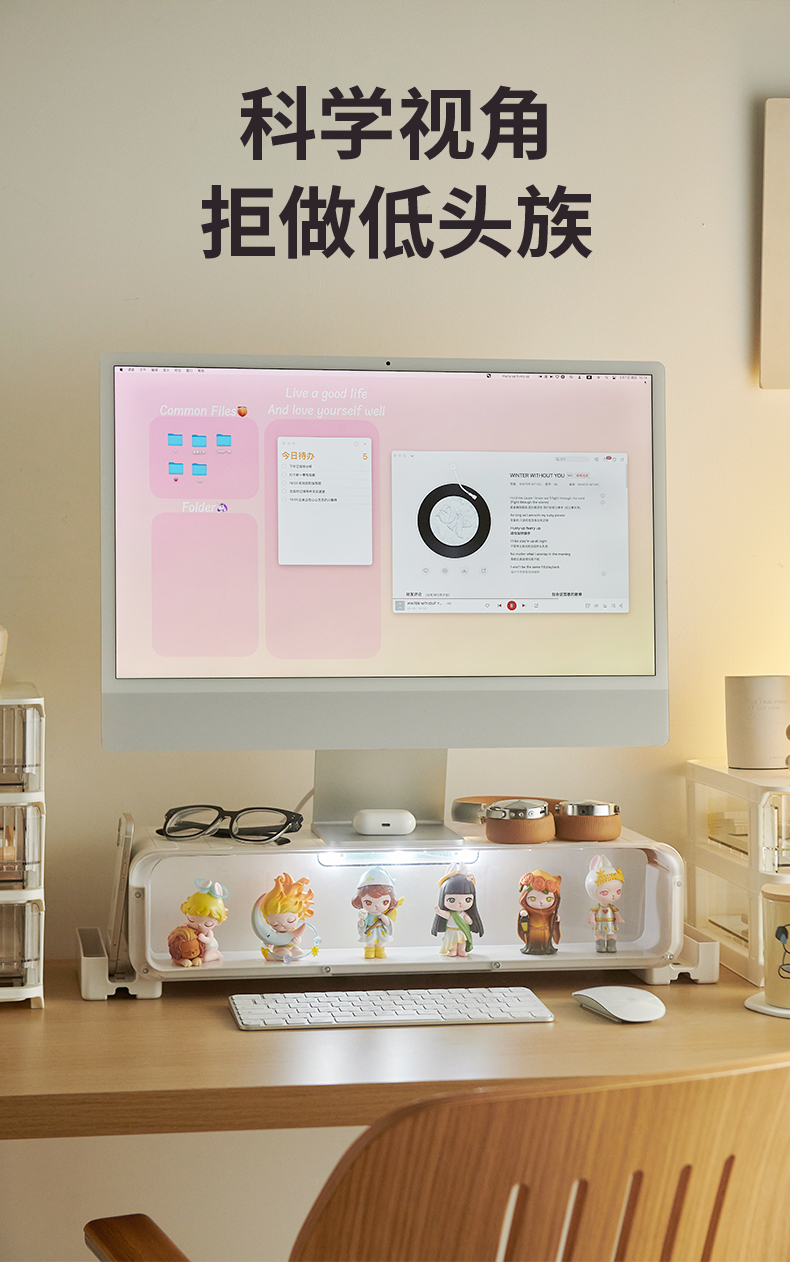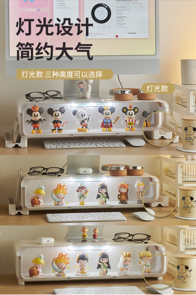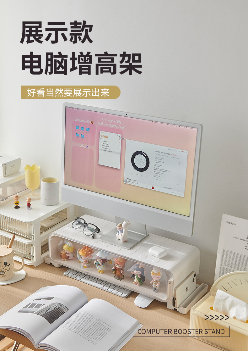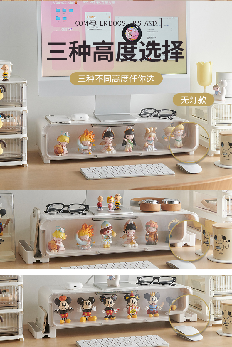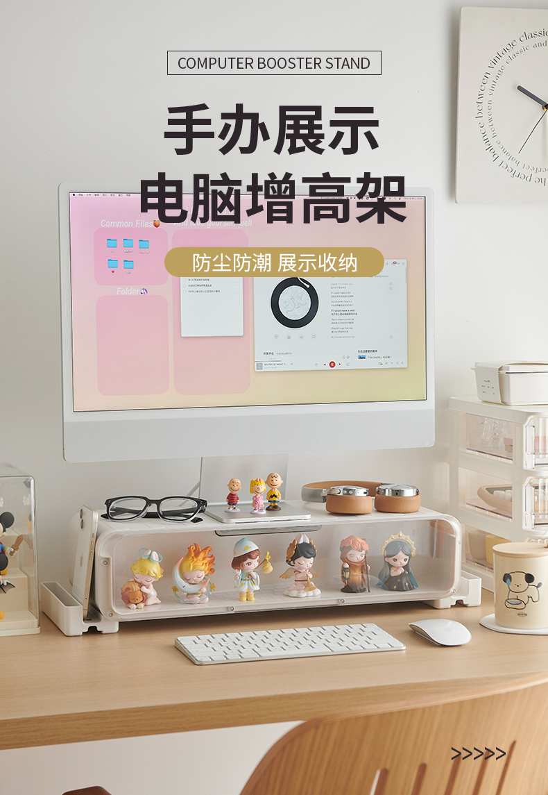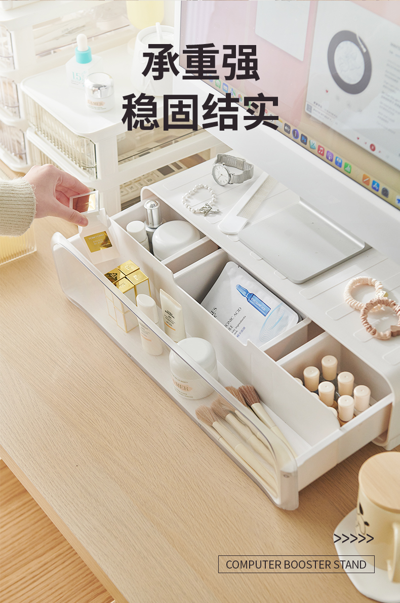 台式电脑增高架带抽屉办公室桌面显示屏置物架白色工位盲盒收纳盒
