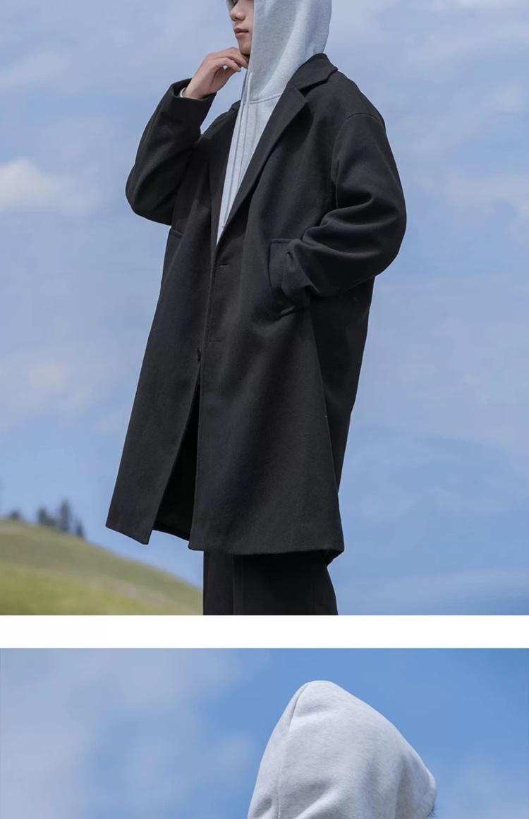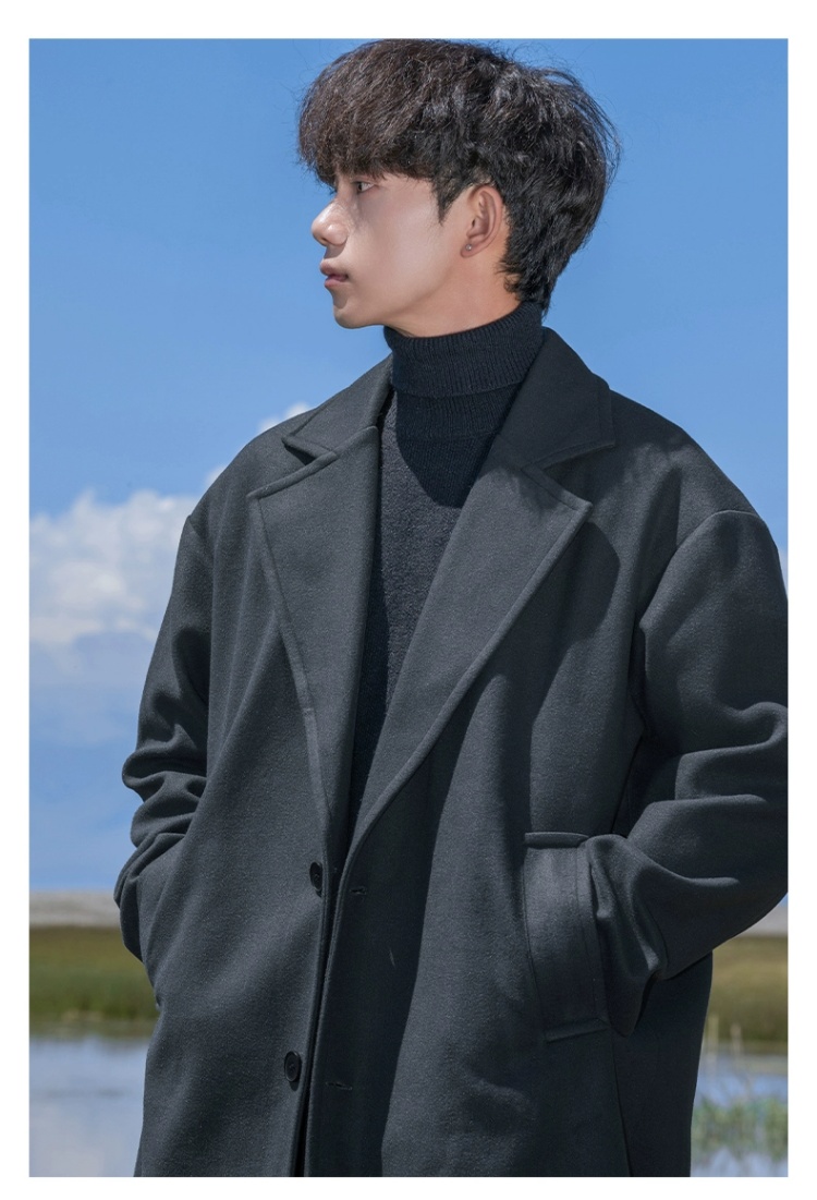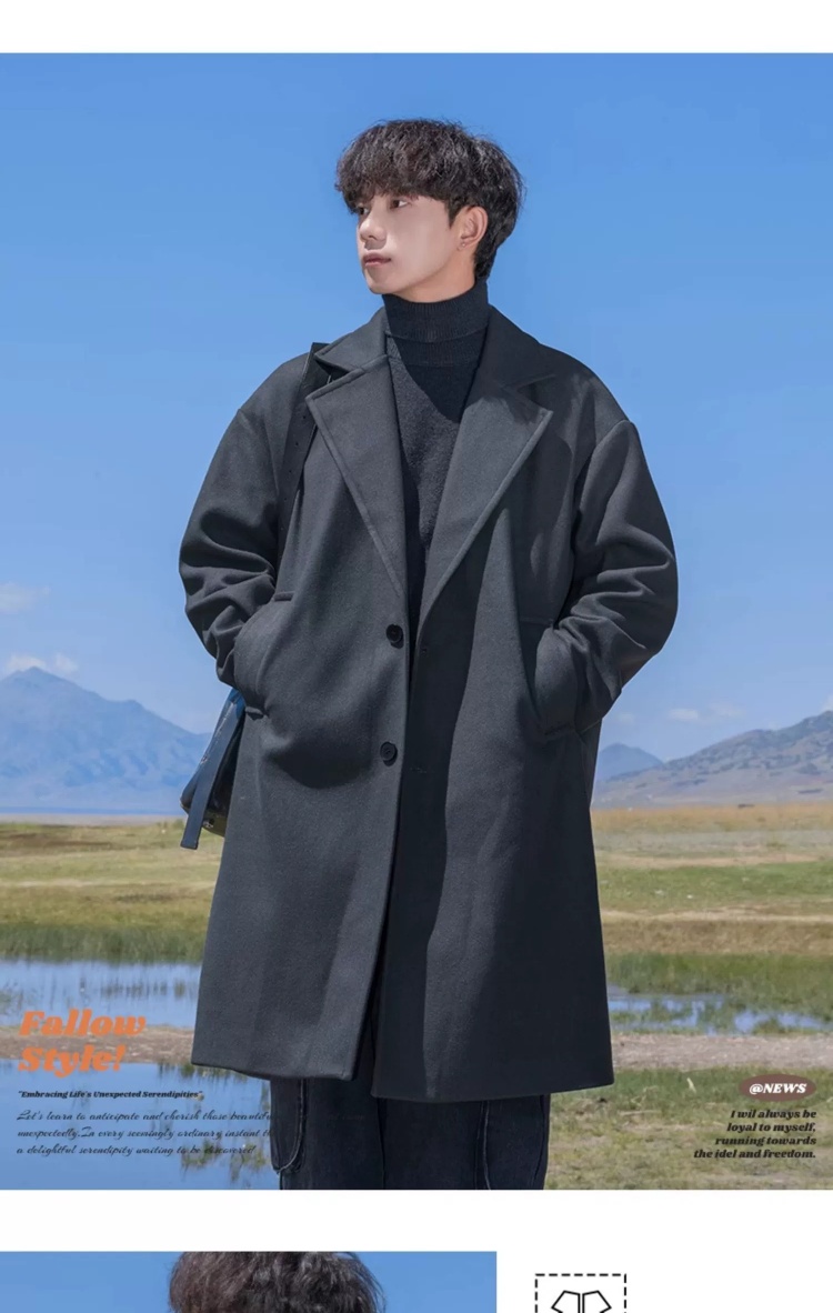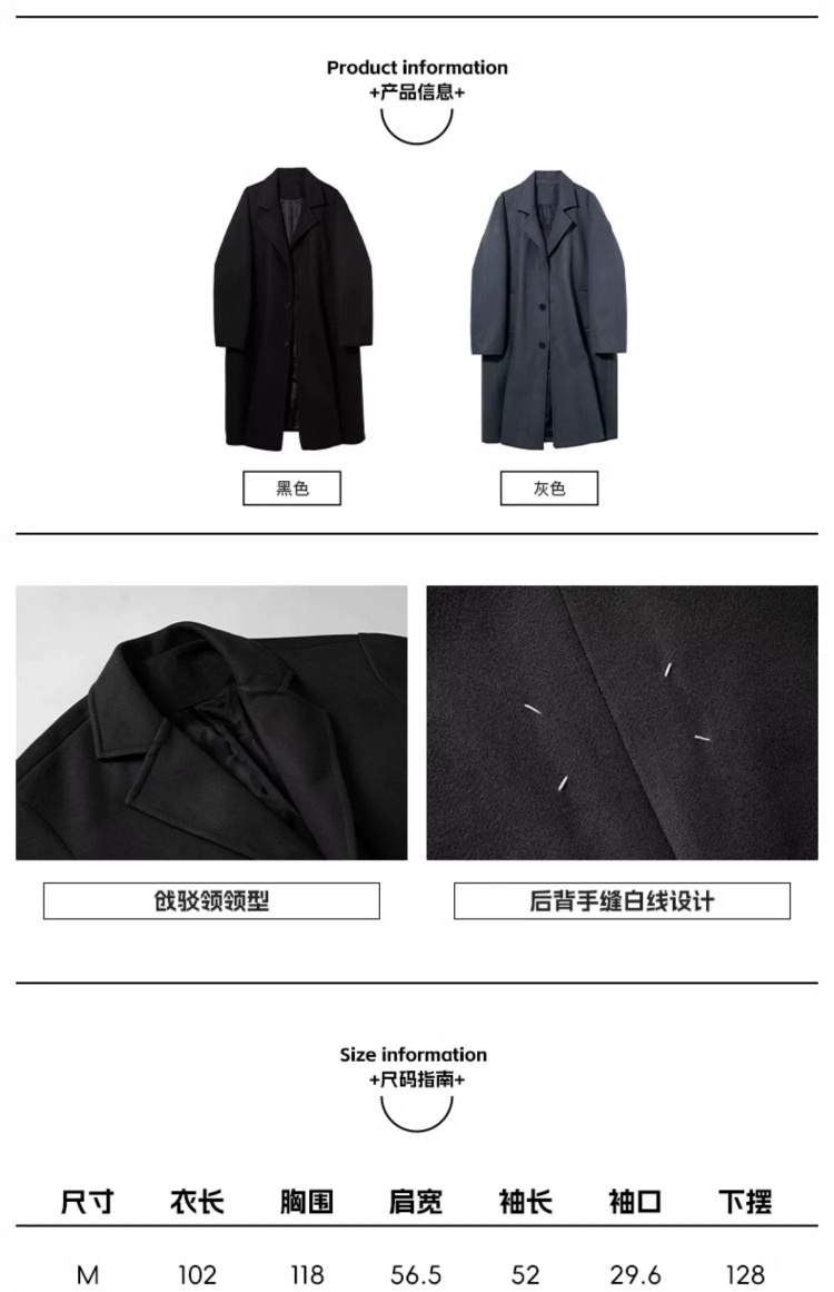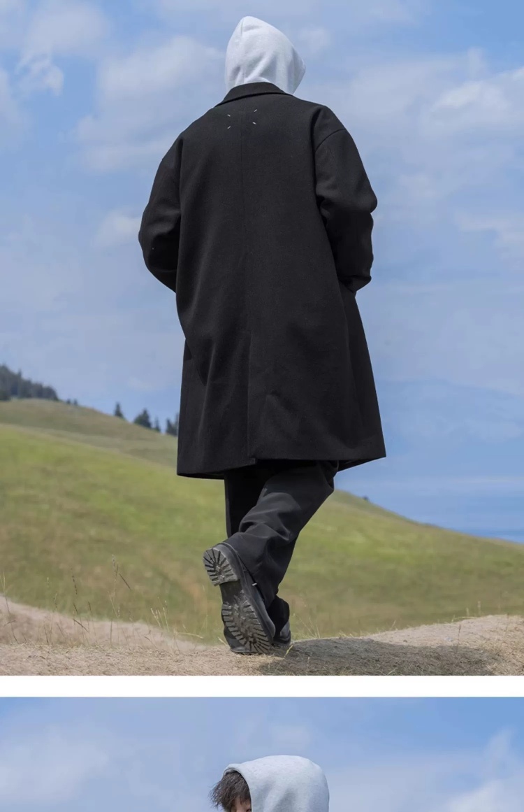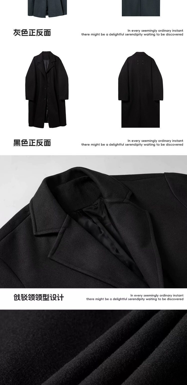 回力黑色中长款呢子风衣男2025新款春秋冬季高级感棉外套毛呢大衣