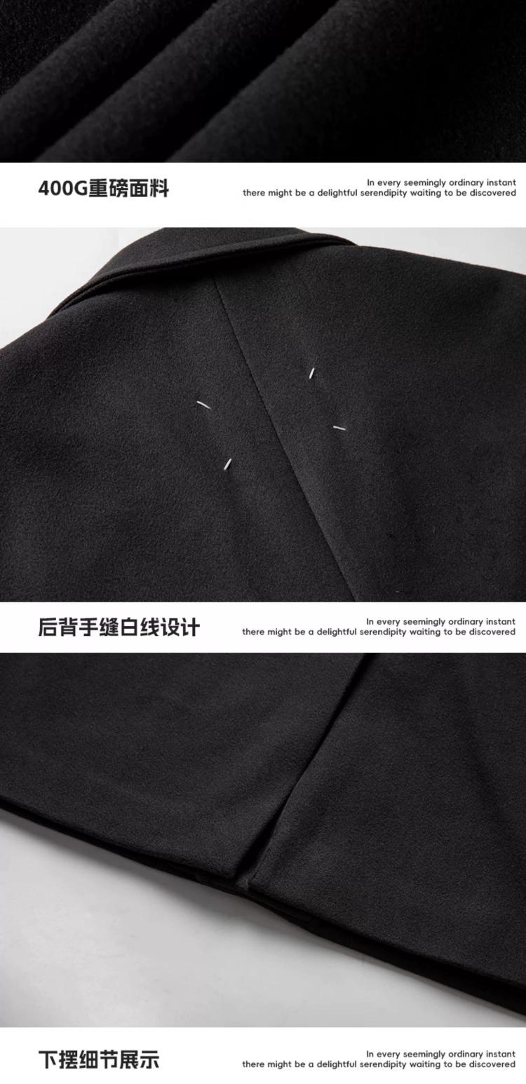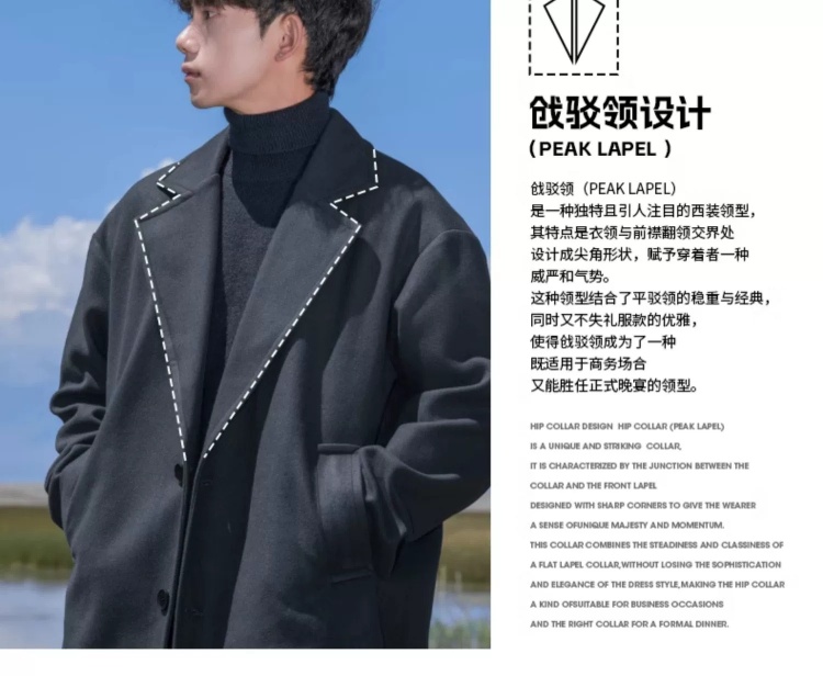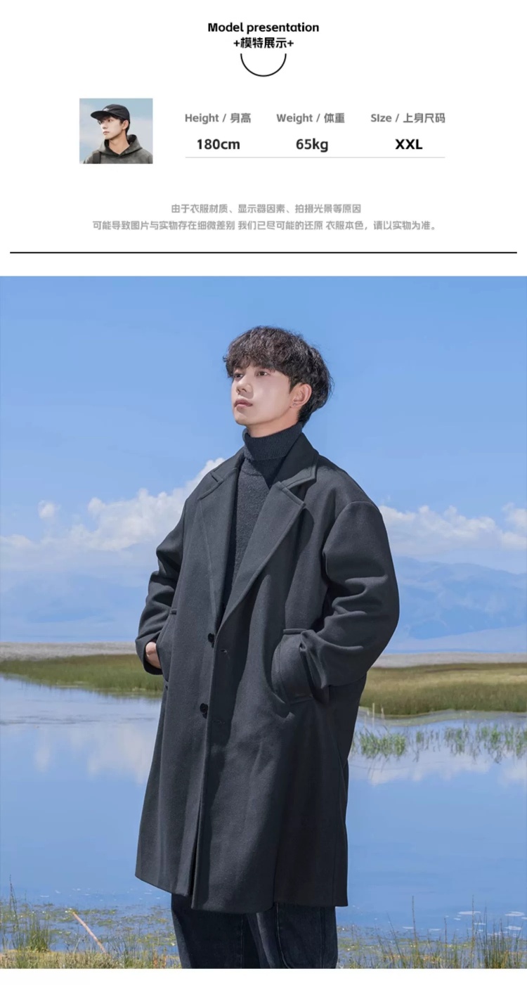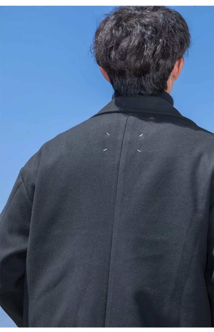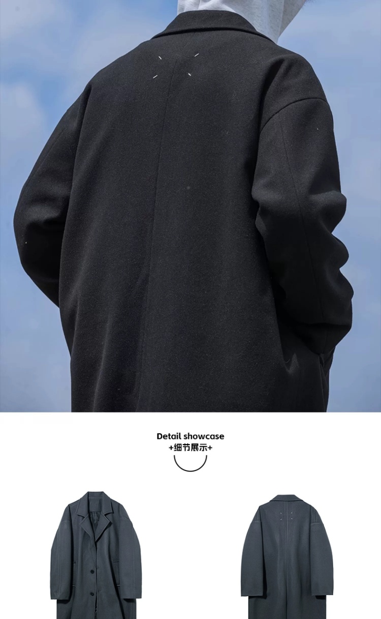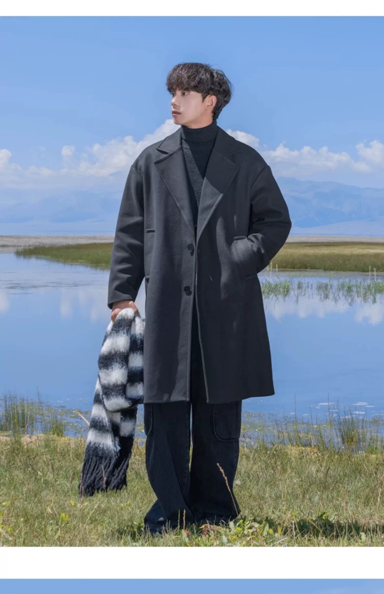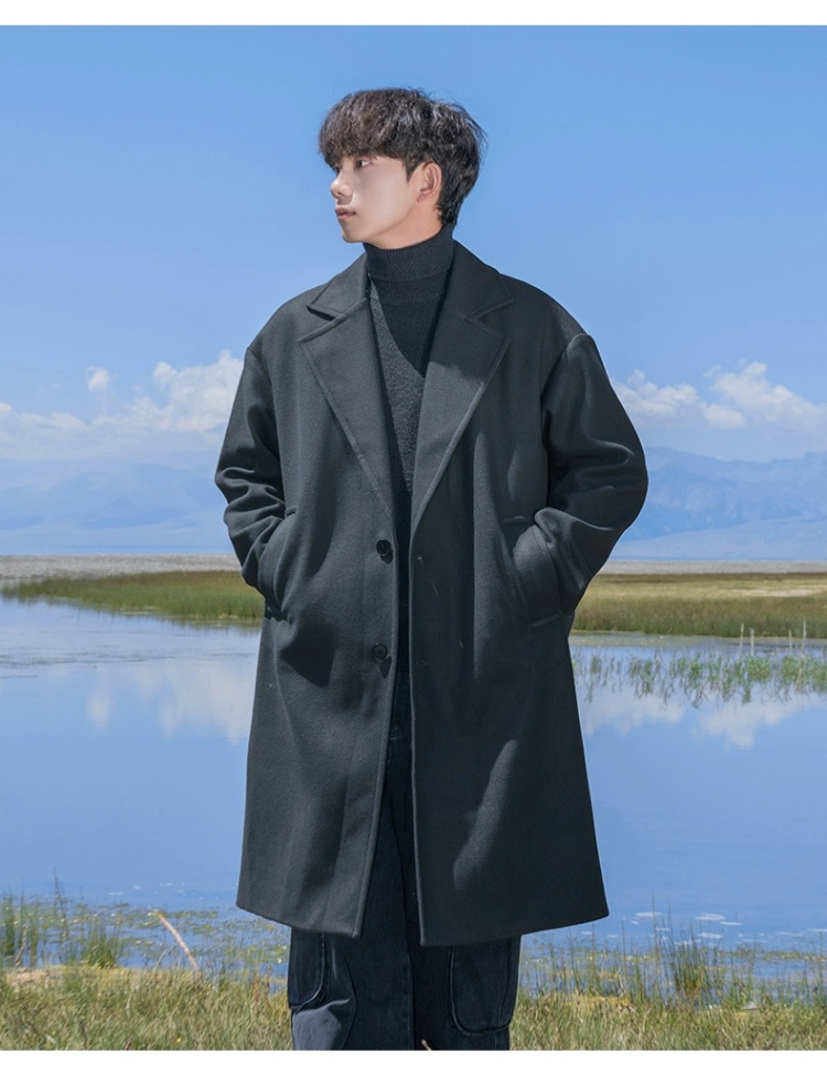回力黑色中长款呢子风衣男2025新款春秋冬季高级感棉外套毛呢大衣
