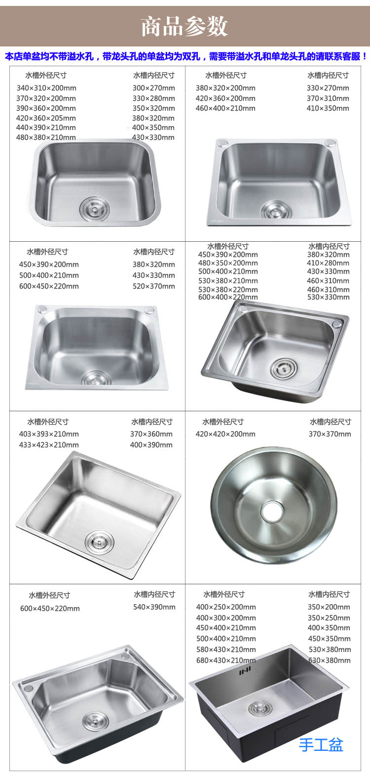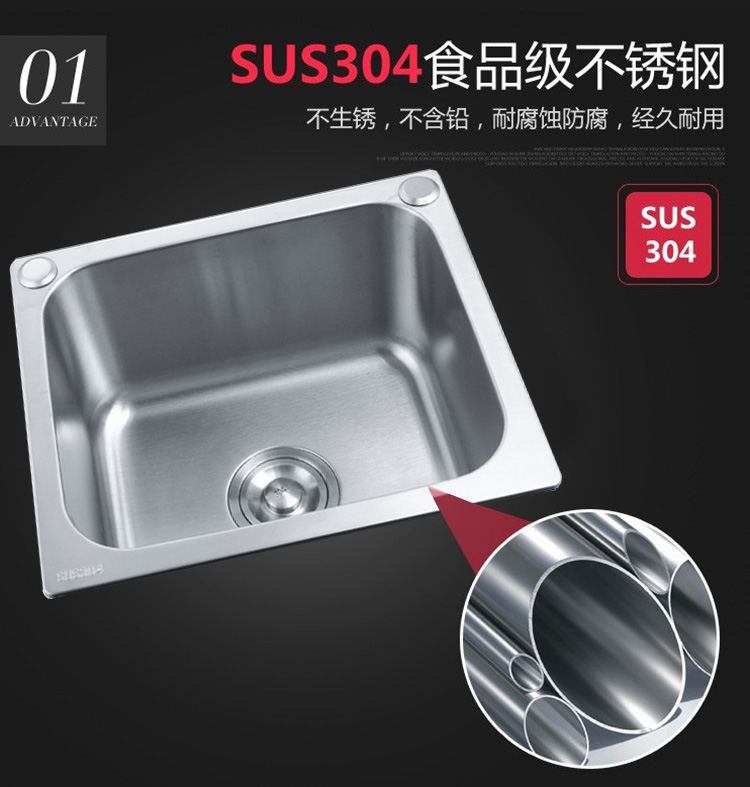 304不锈钢洗手盆厨房阳台洗菜盆单盆小水槽水池水盆单槽台上下盘