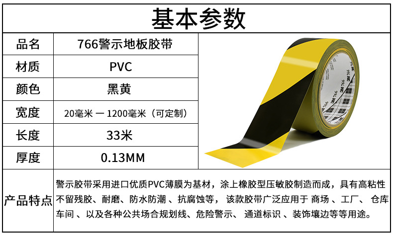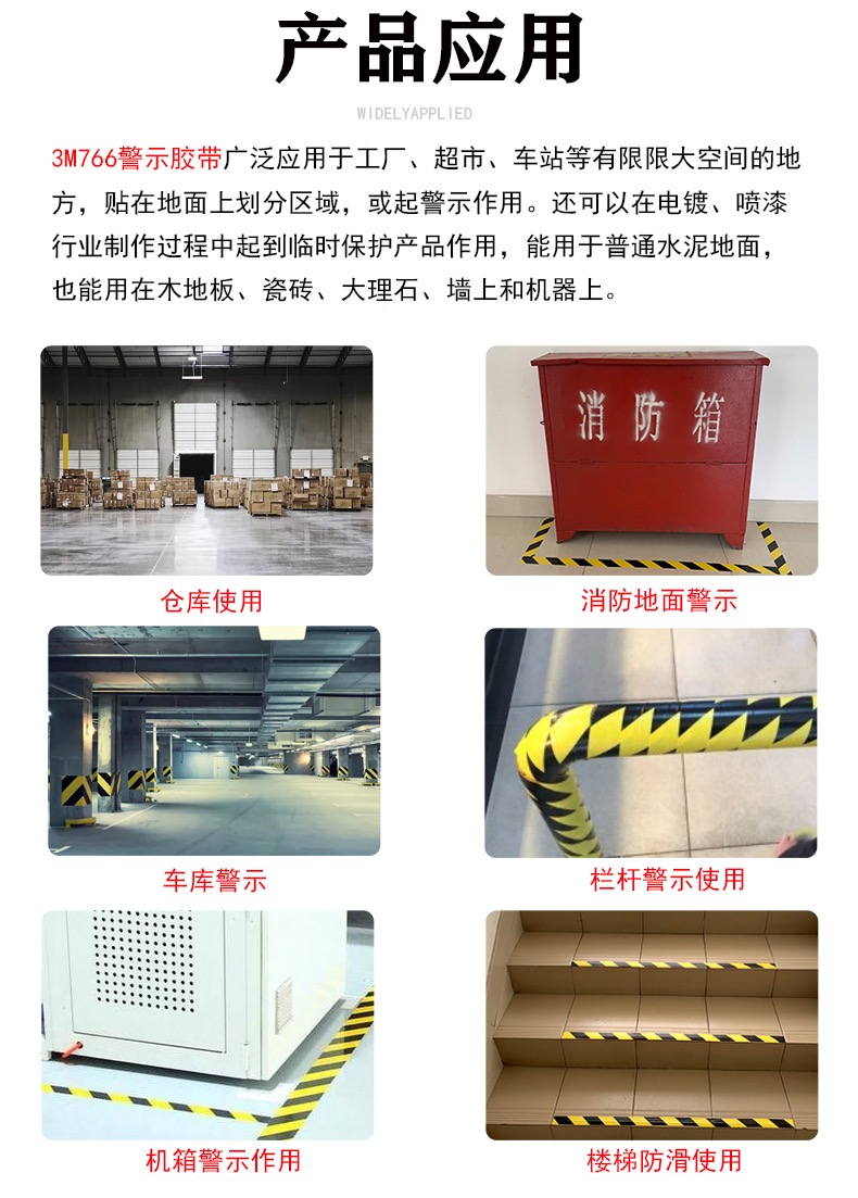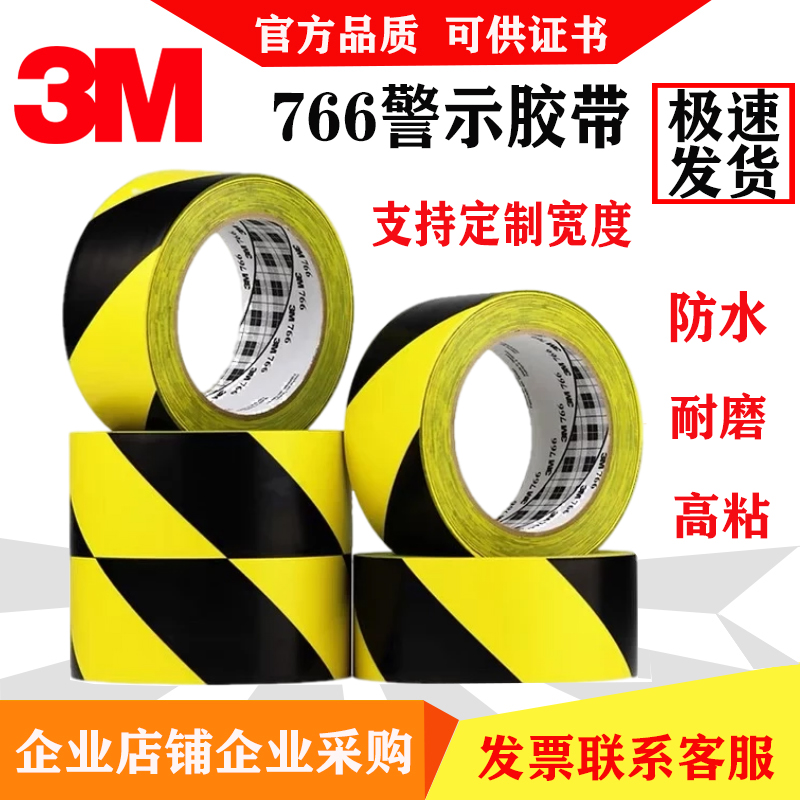 3M766黑黄警示胶带区域划分警戒斑马线5S验收标识耐磨防水无痕