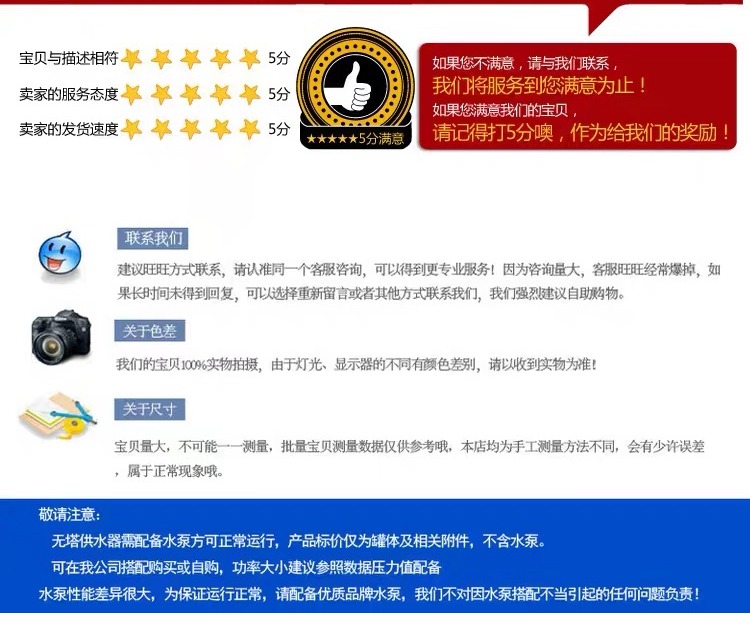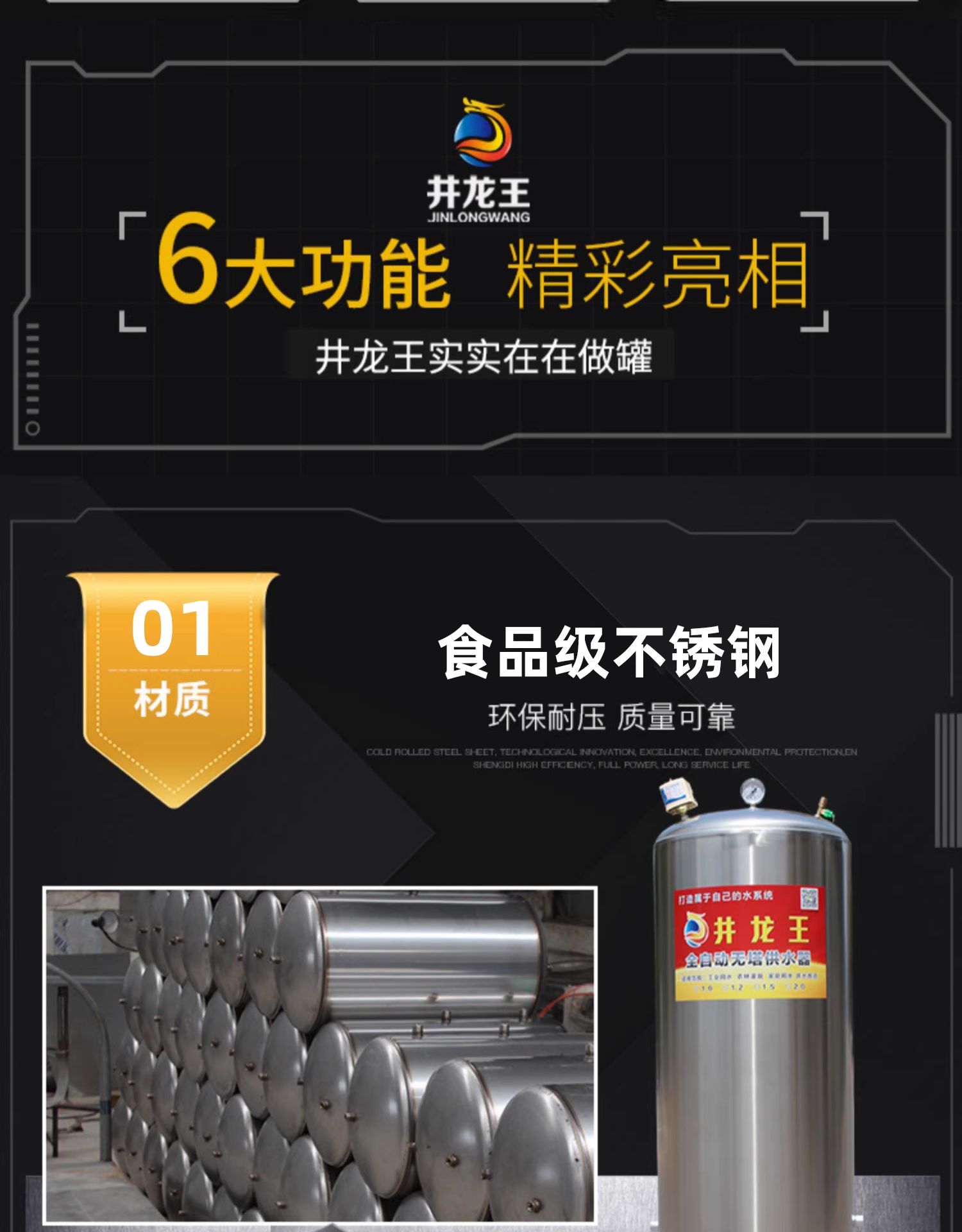 无塔供水器家用不锈钢压力罐全自动自来水井水增压水泵储水箱水塔