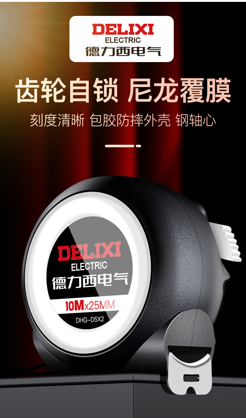 德力西电气卷尺5米加厚加硬家用钢尺子量尺3米正品盒尺拉圈尺10米