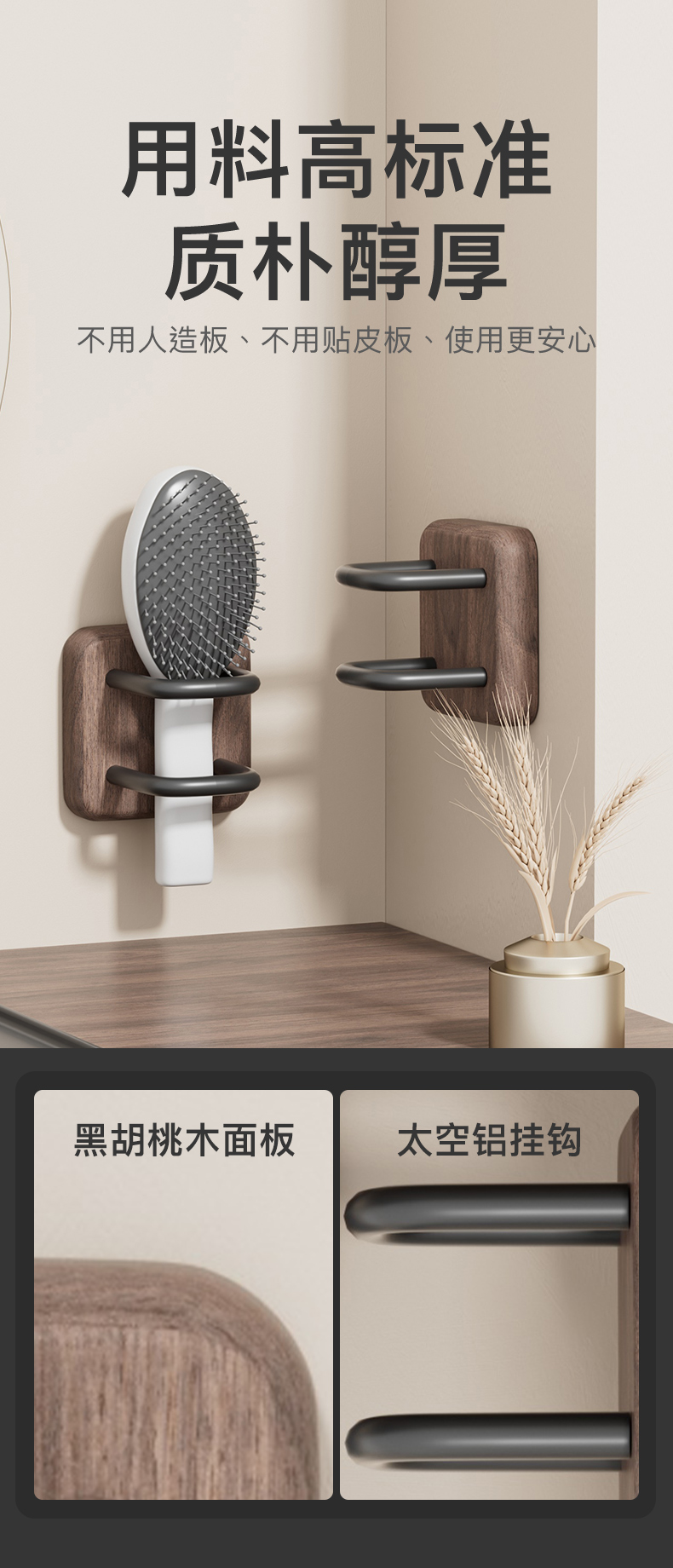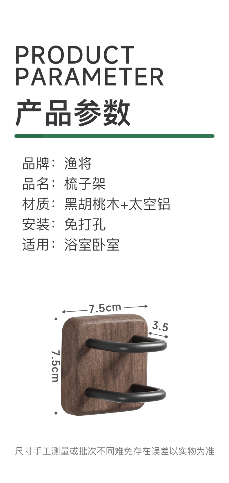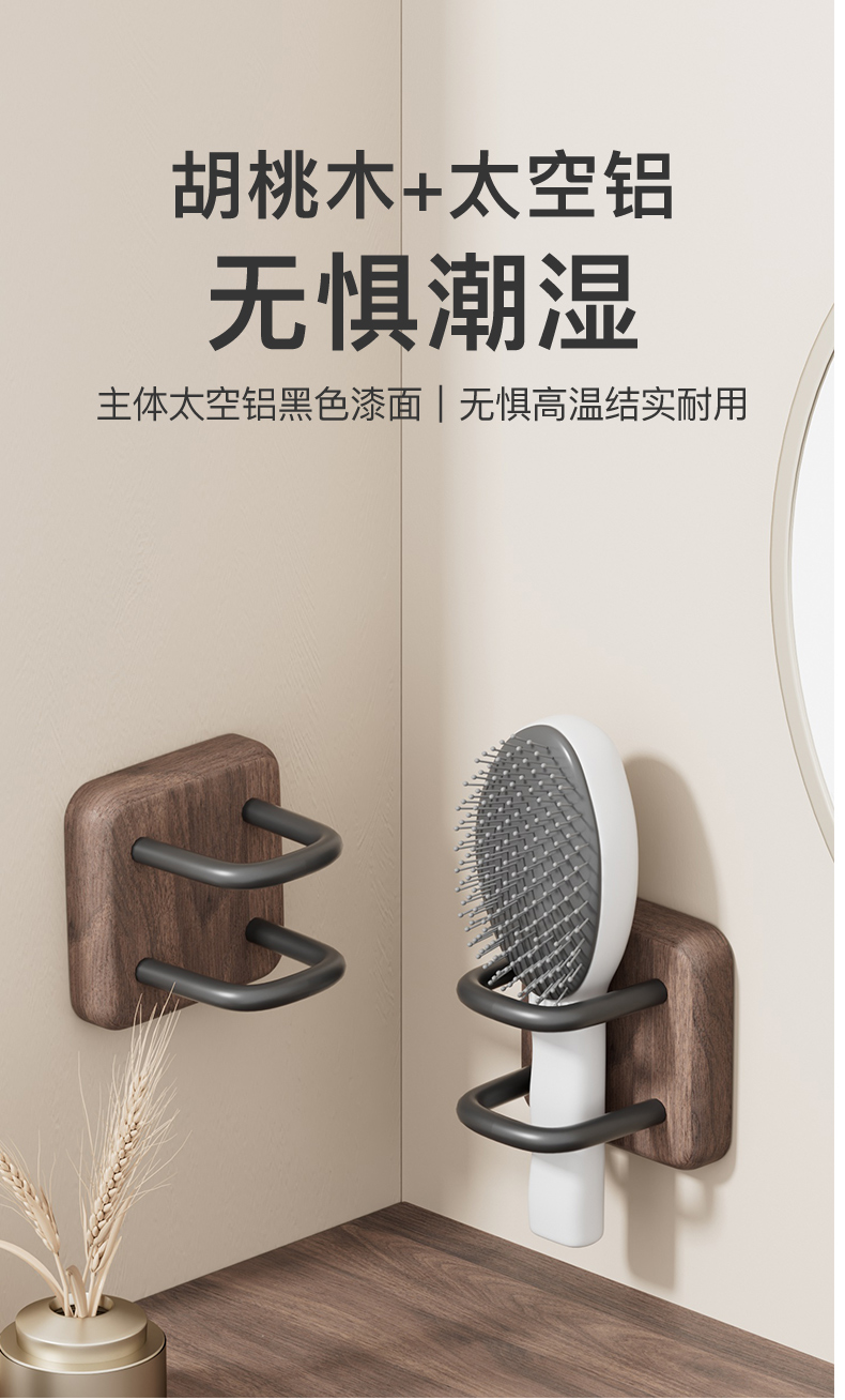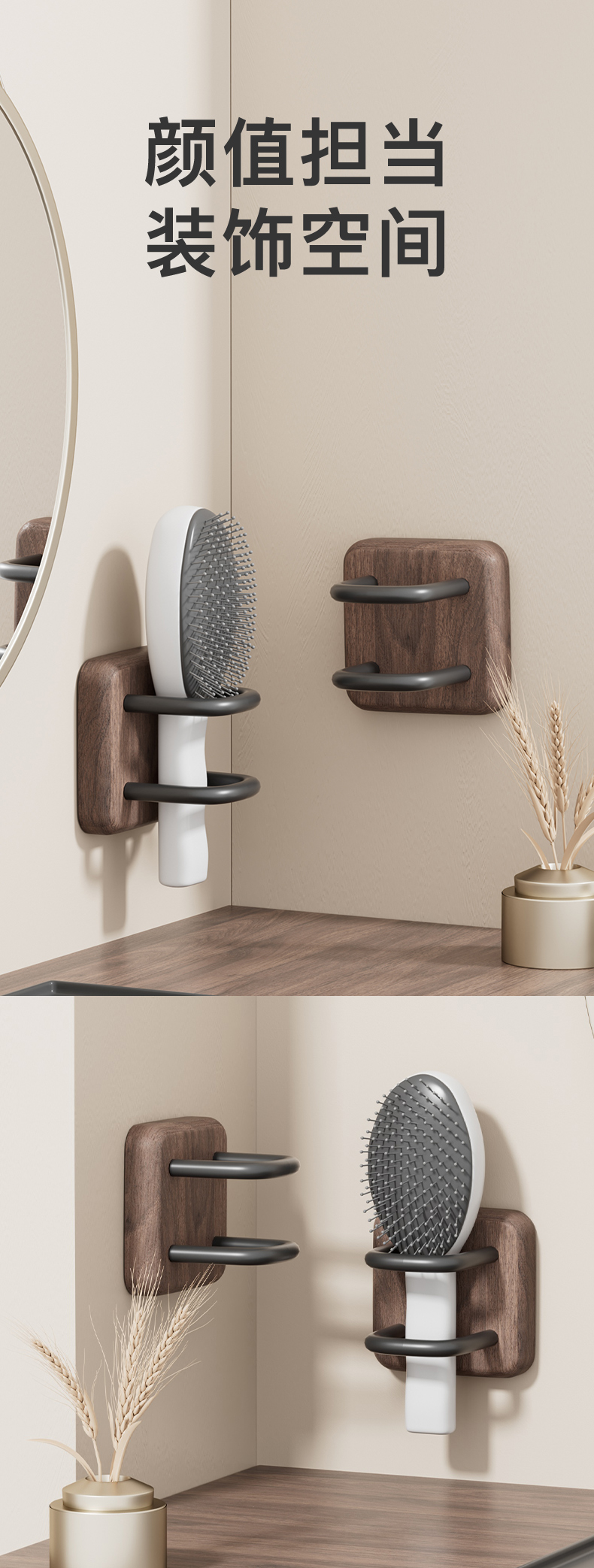 胡桃木梳子放气垫梳架子浴室卫生间洗手台洗漱台壁挂式收纳置物架