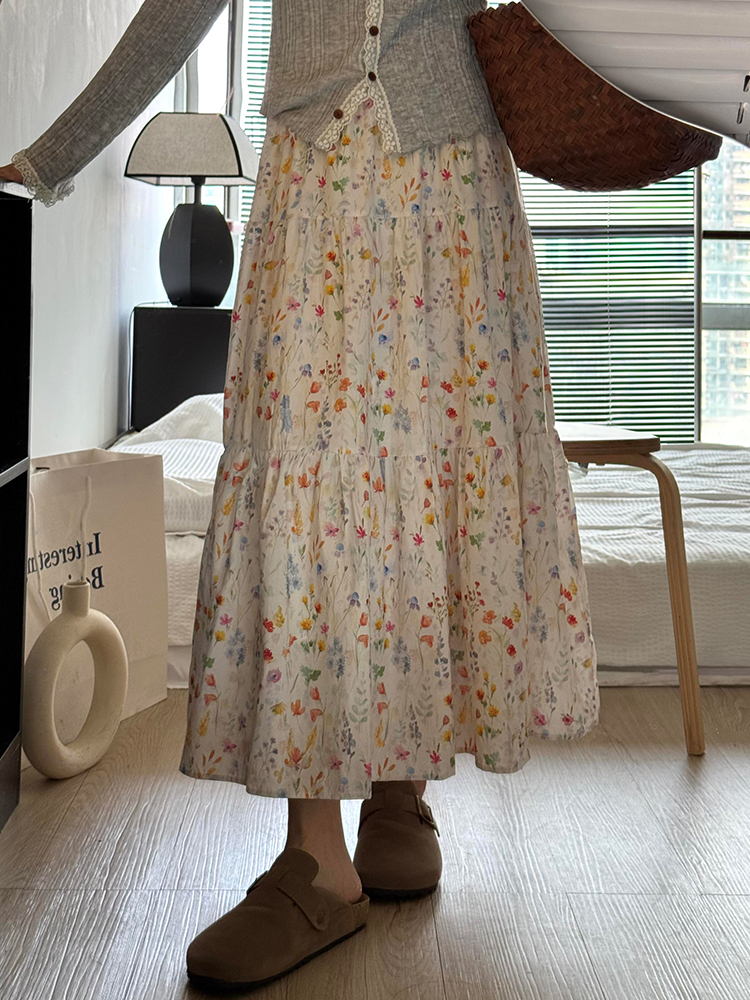 法式碎花半身裙女夏季新款胖妹妹mm梨形身材高腰显瘦中长款a字裙