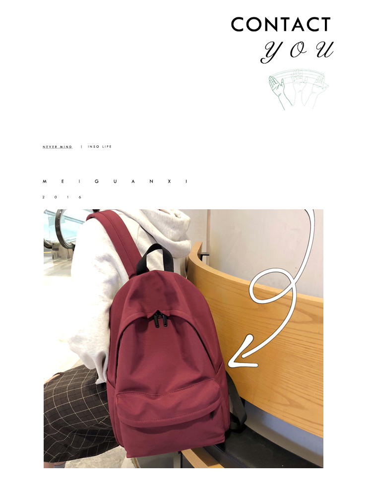 日系书包轻度少女古着感纯色双肩包尼龙防水学生电脑包登山包背包