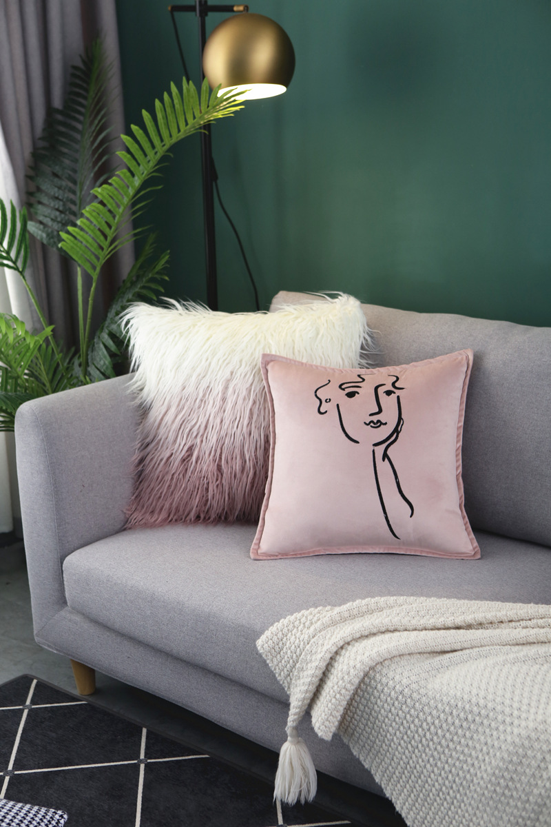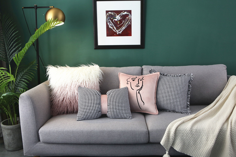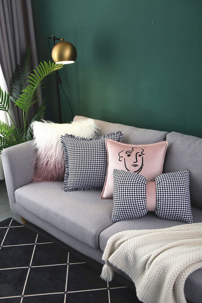 千鸟格抱枕套ins长毛靠垫蝴蝶结抱枕沙发客厅腰枕床头靠枕不含芯