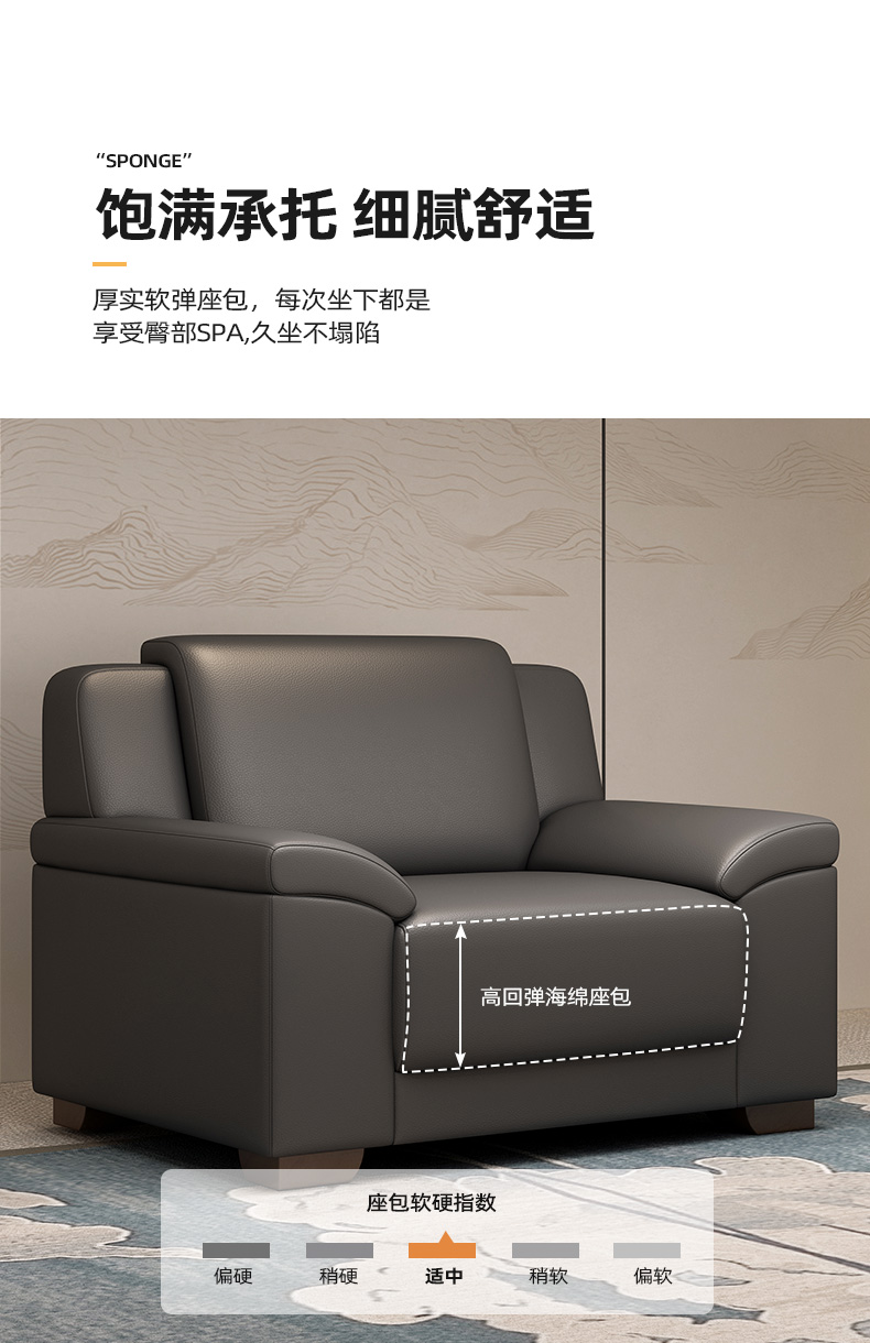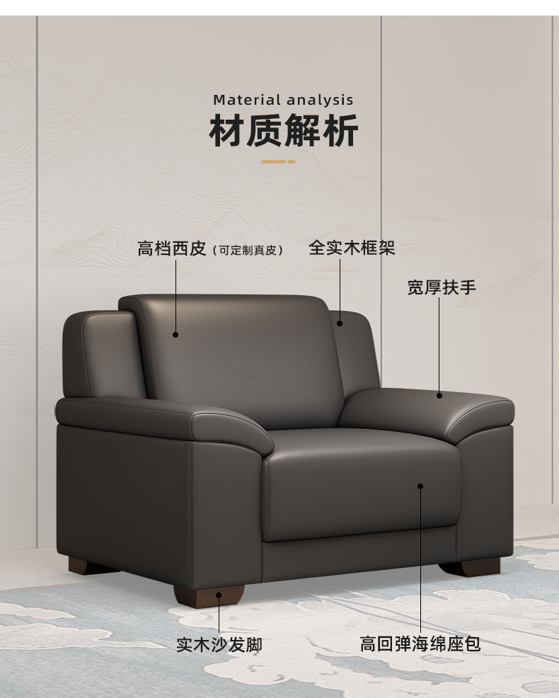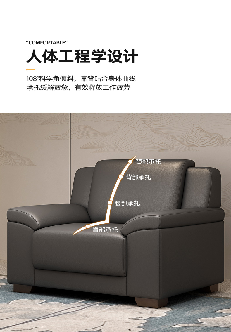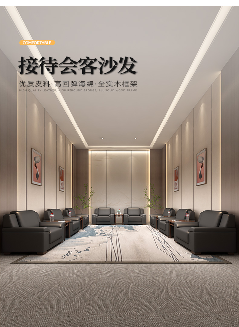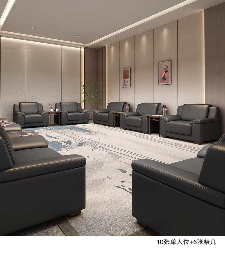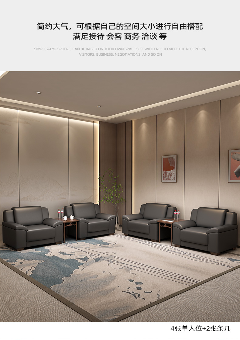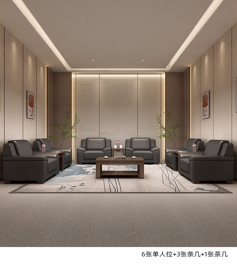 办公室沙发简约贵宾商务会议洽谈接待高档真皮单人位沙发茶几组合