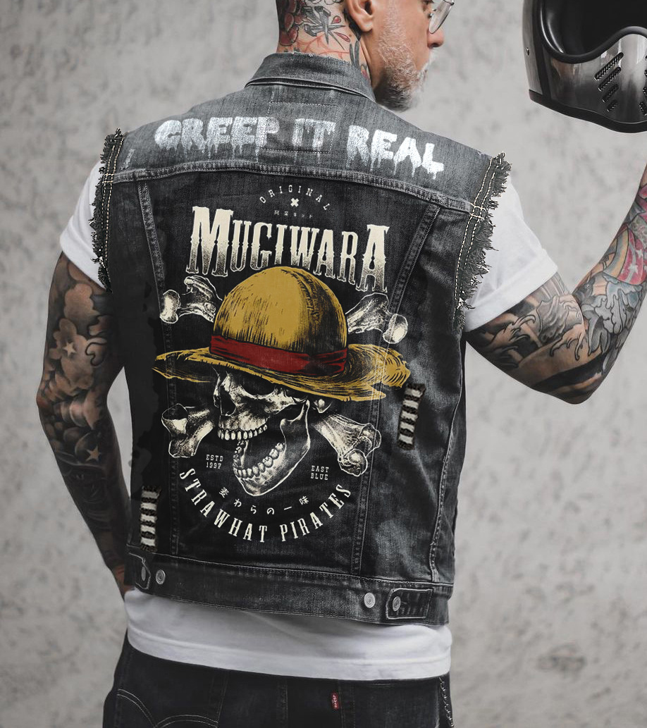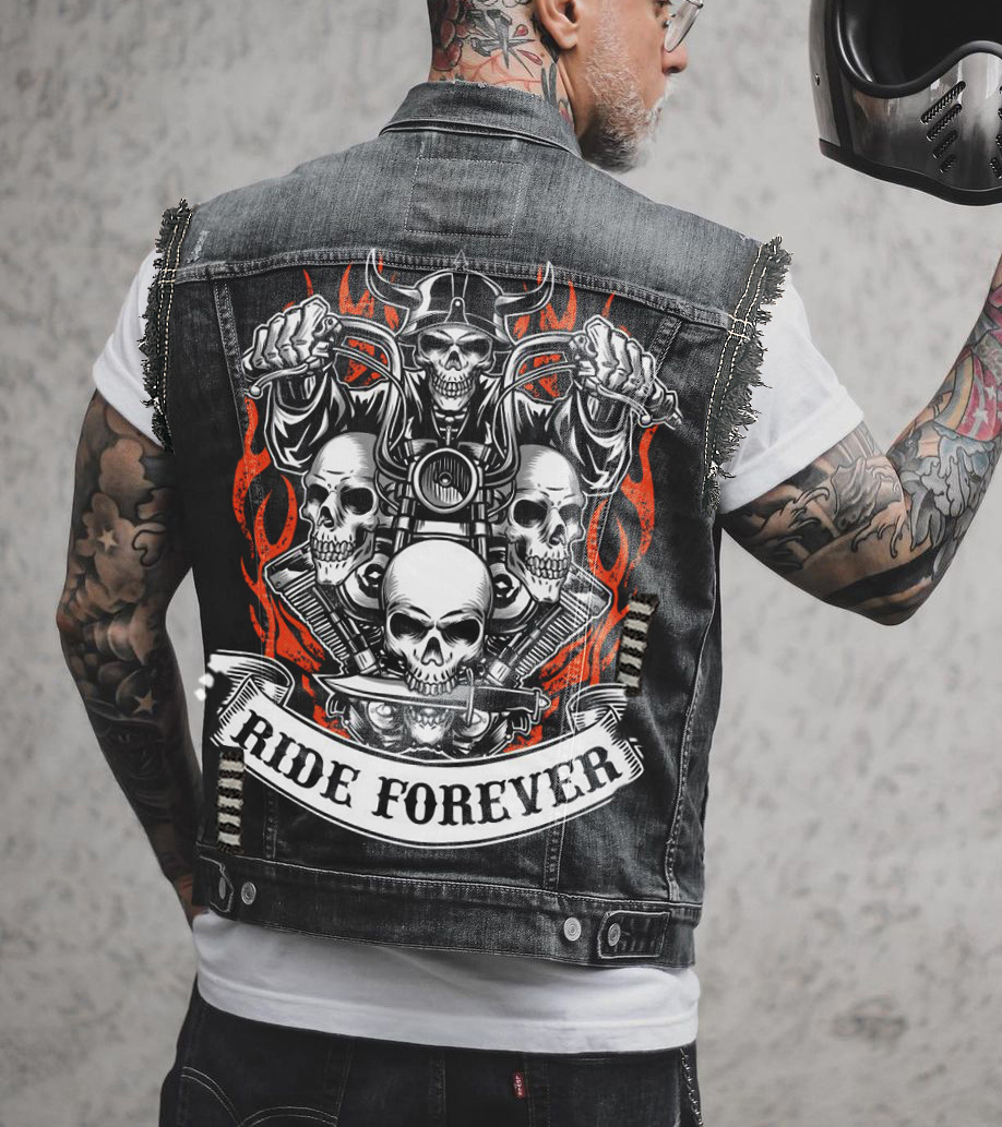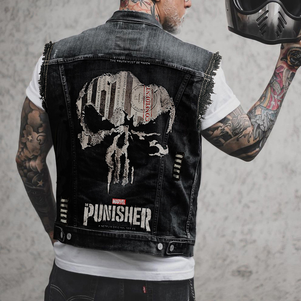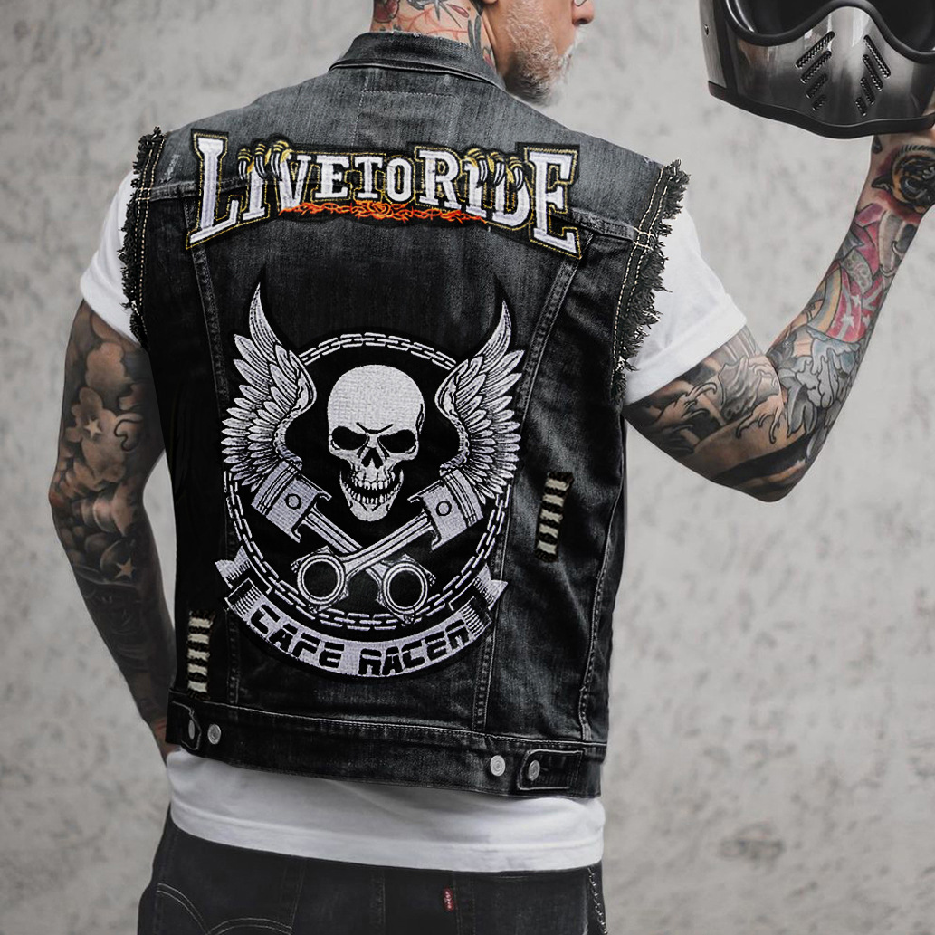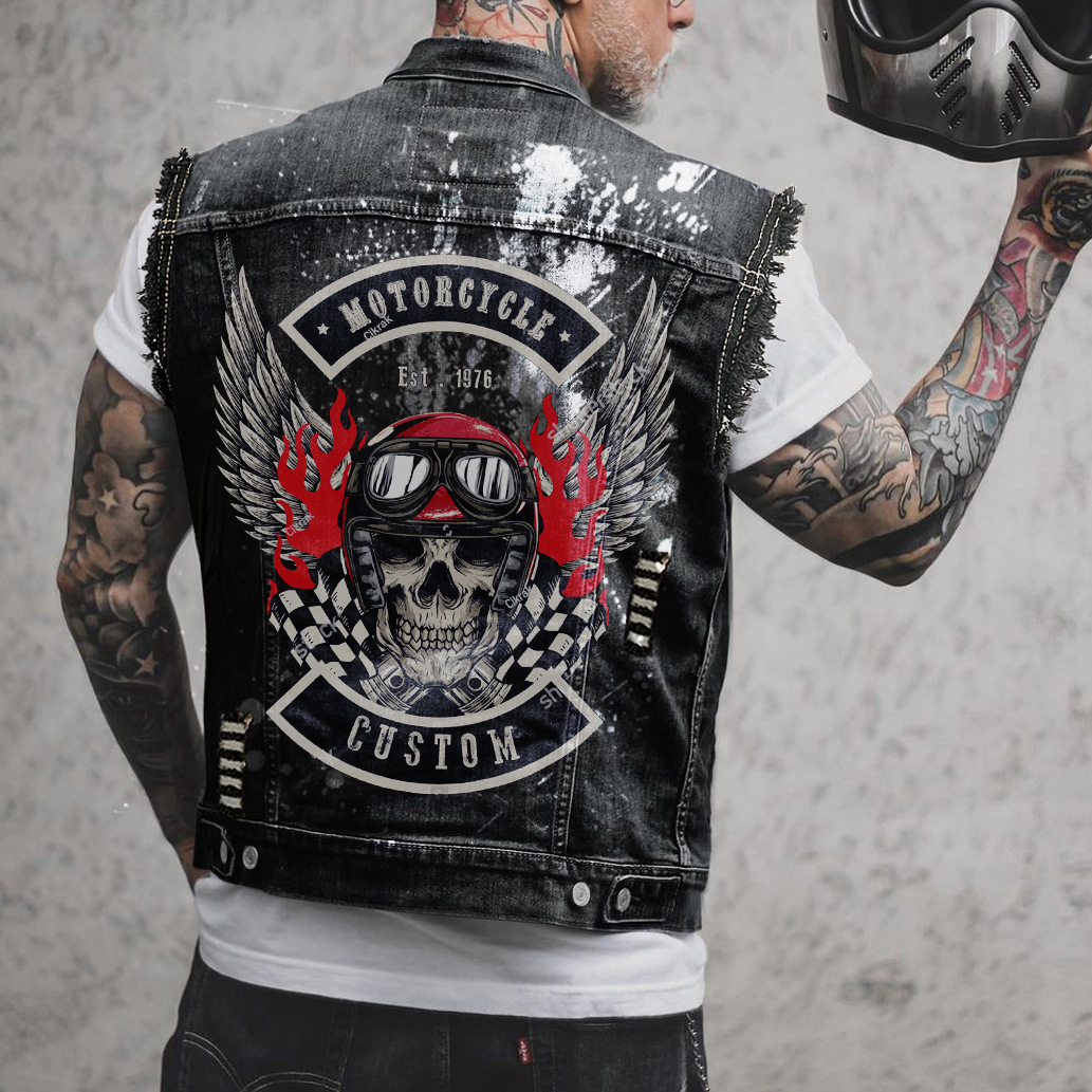 Men's denim vest 潮男牛仔马甲暗黑风骷髅骨头印花无袖百搭背心