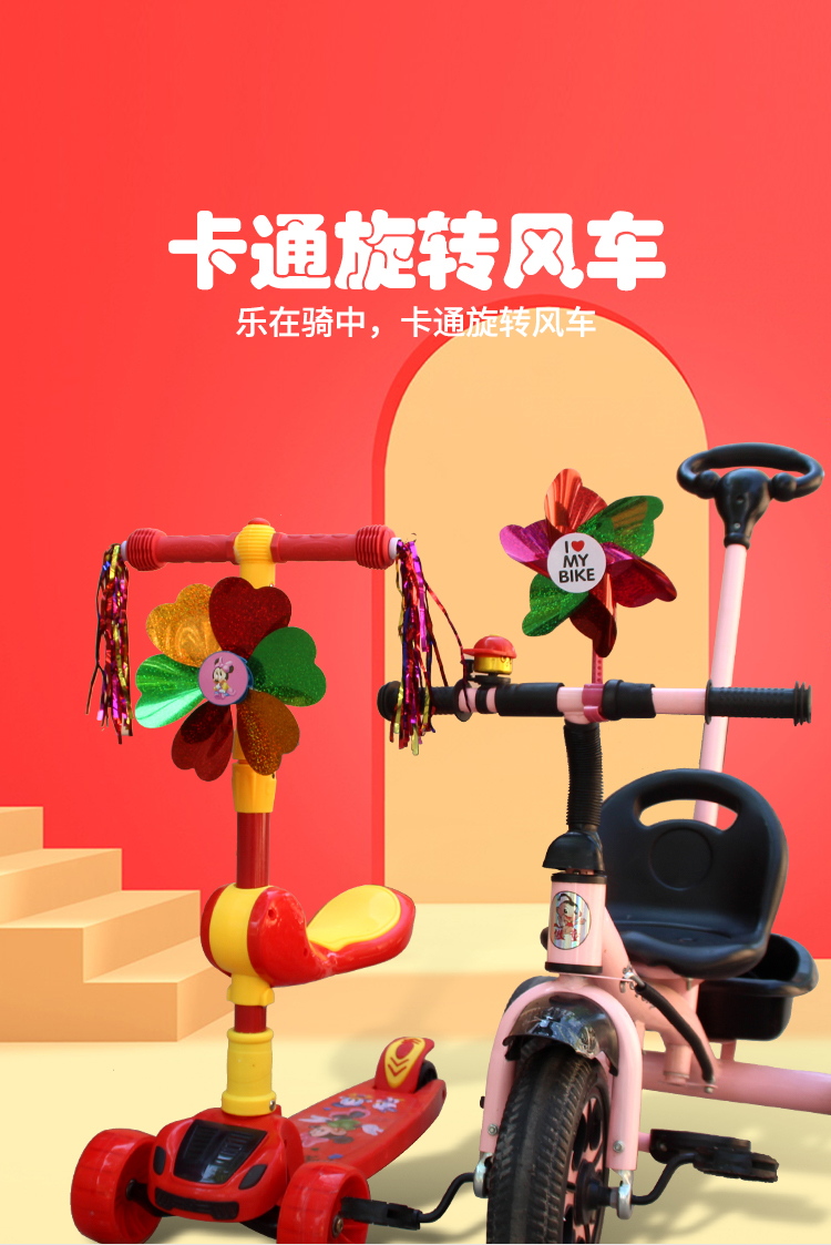 儿童自行车风车宝宝滑板车风车童车旋转风车单车彩带装饰玩具配件