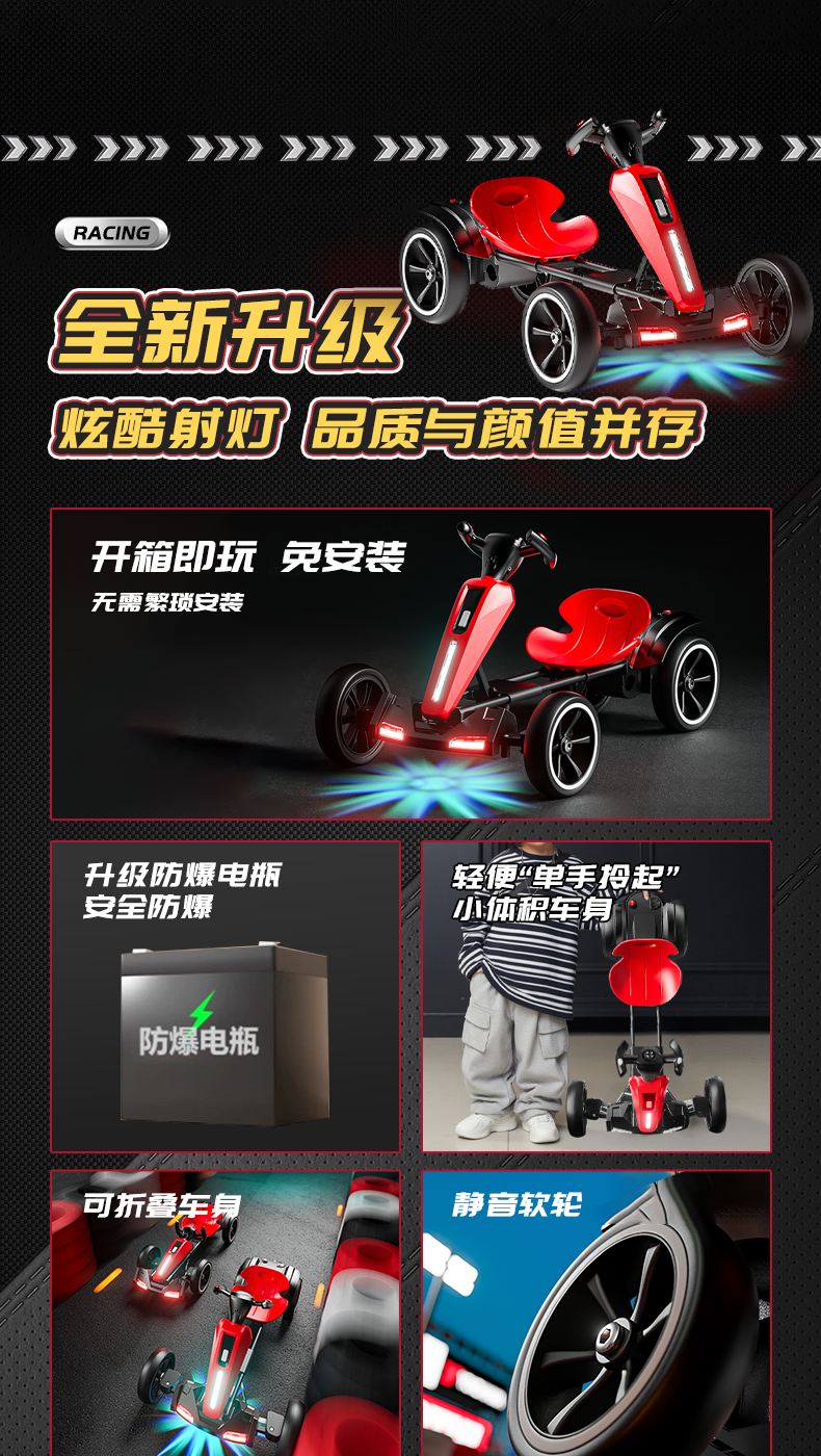 卡丁车儿童电动车6到12岁可坐人遥控玩具车四轮汽车可折叠免安装