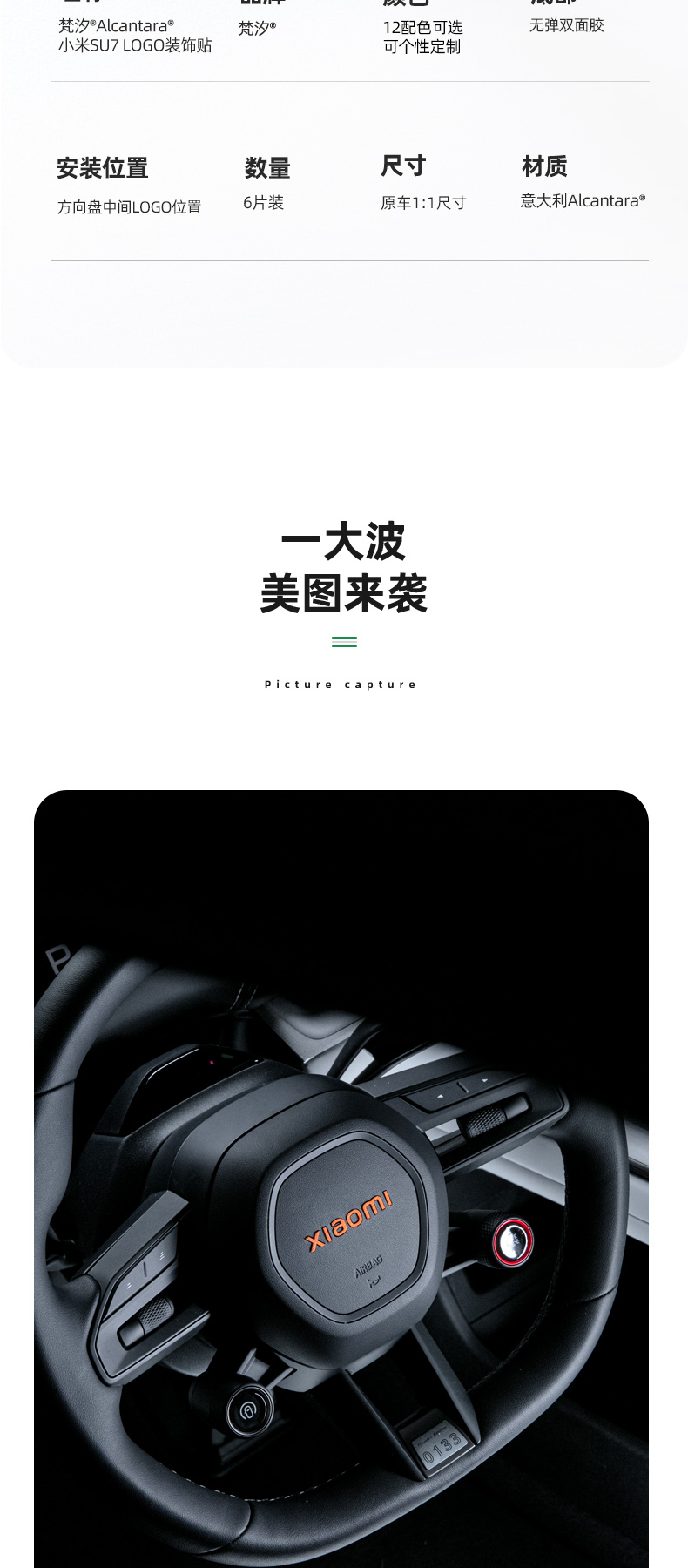 梵汐适用小米汽车su7配件方向盘LOGO装饰贴改装件专用内饰用品