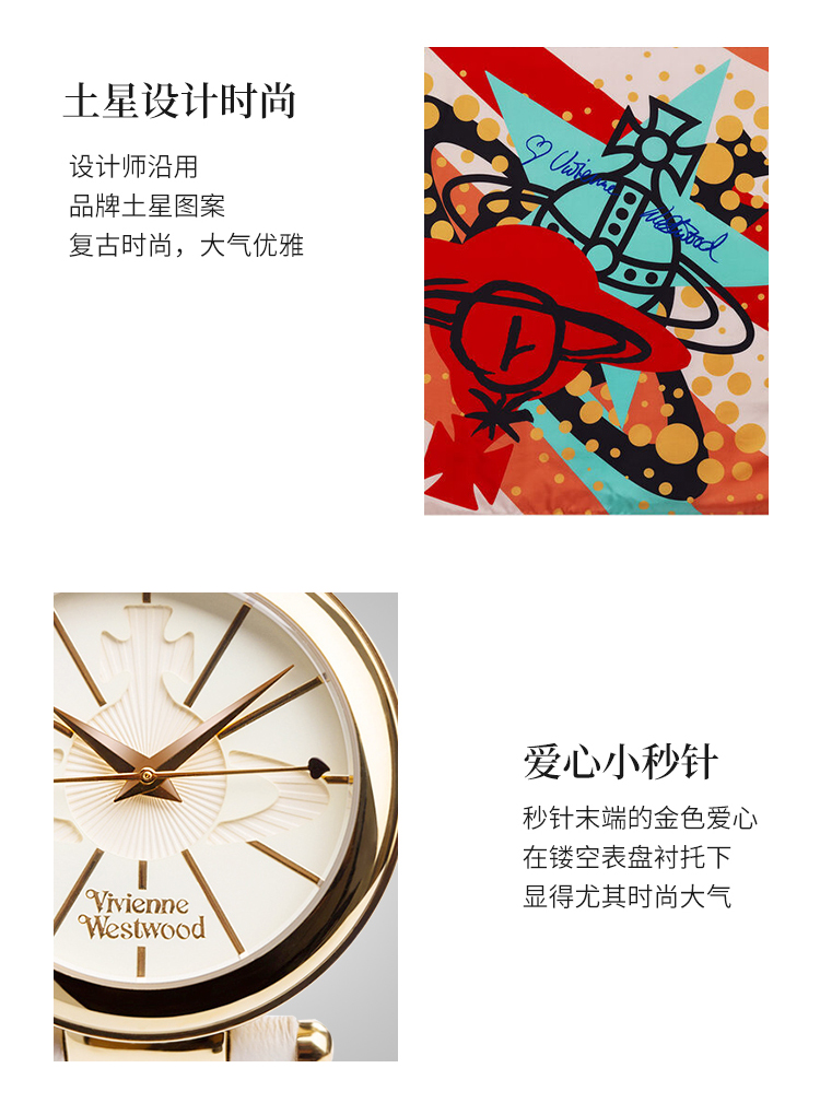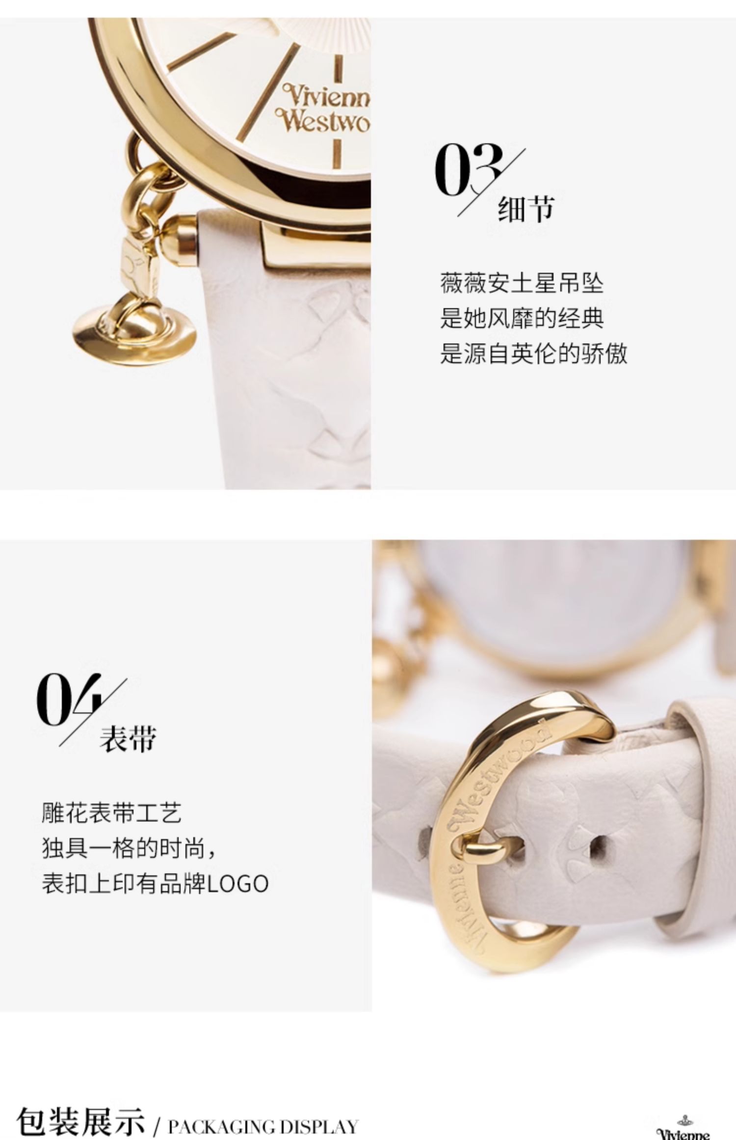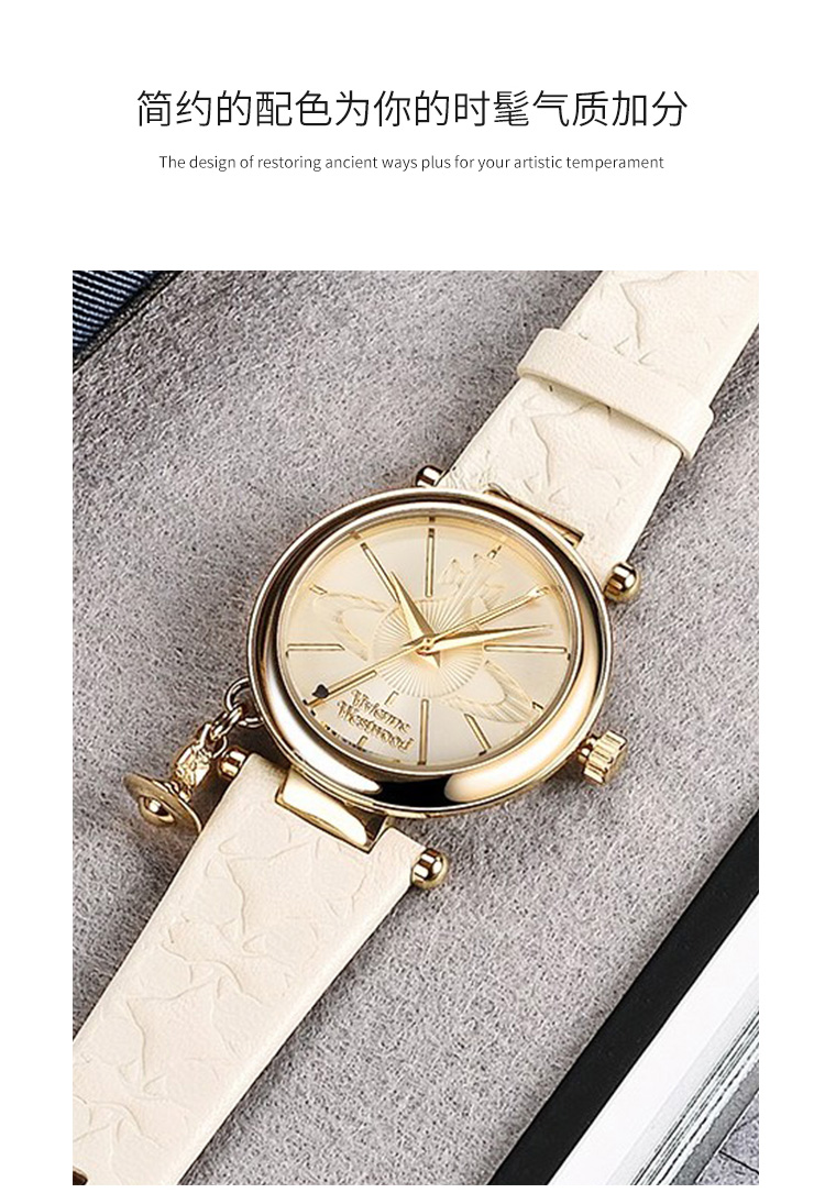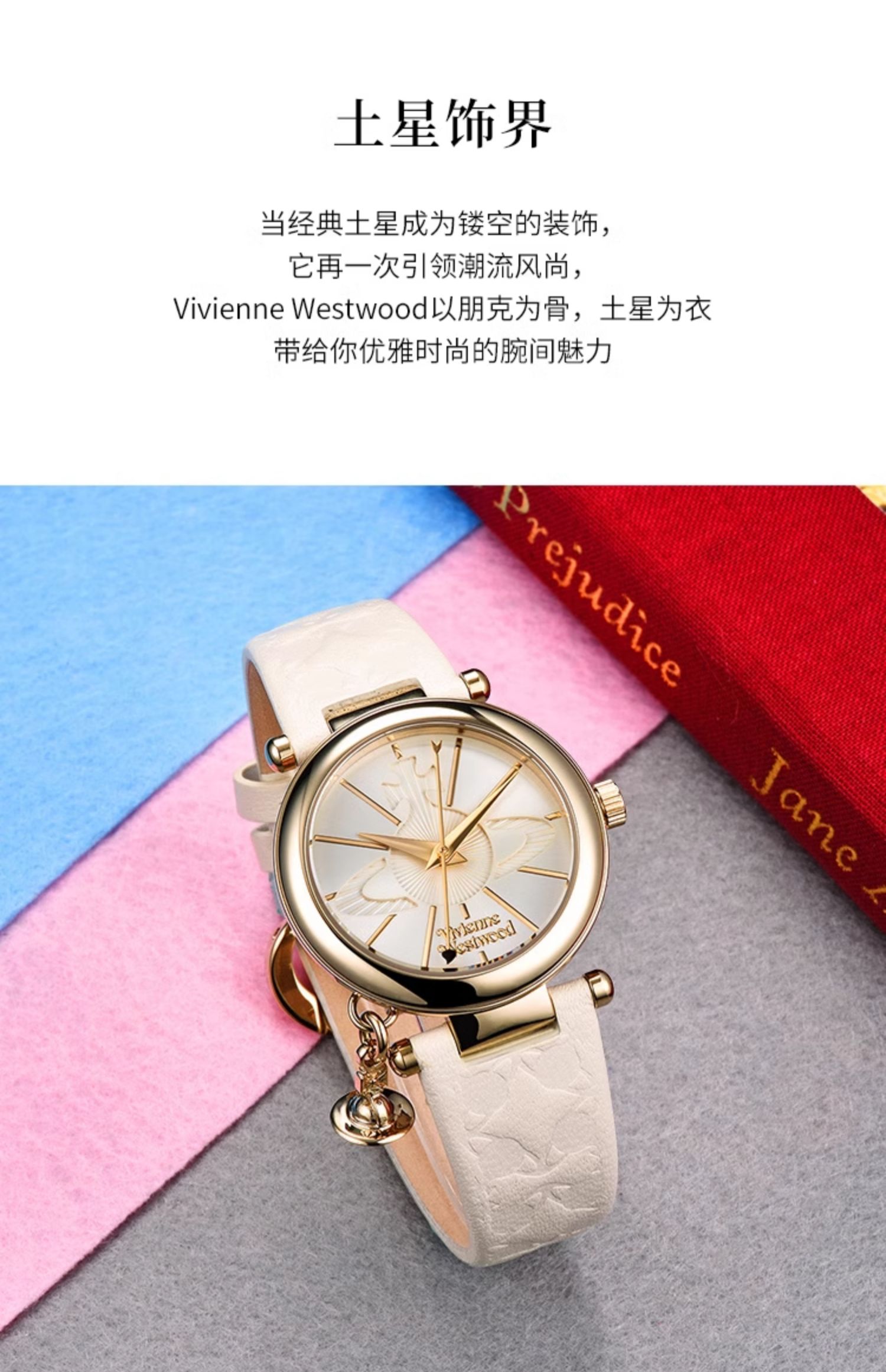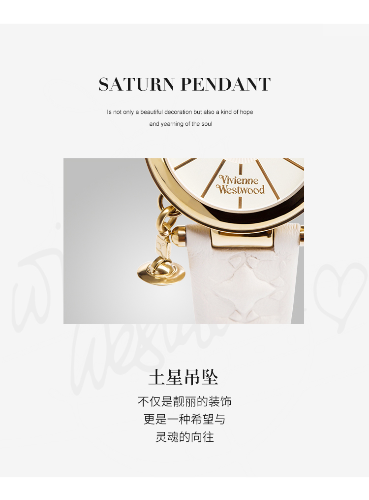 Vivienne西太后女表土星表盘吊坠压花表带休闲品牌白色女士手表