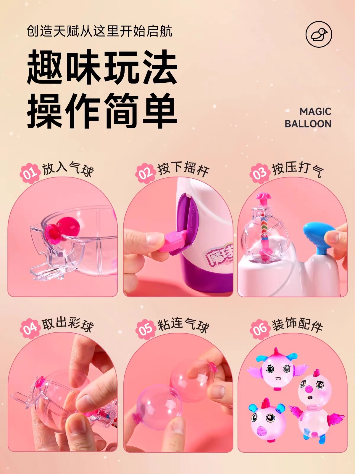 魔法波波球女孩子手工diy波波乐充气机粘粘乐气球6岁儿童玩具礼物