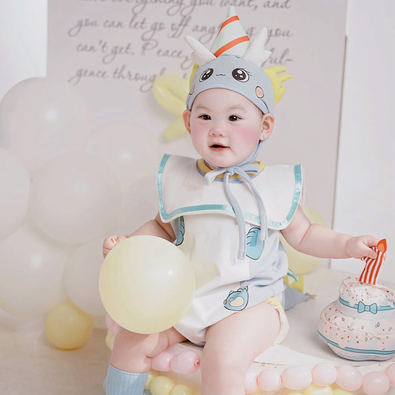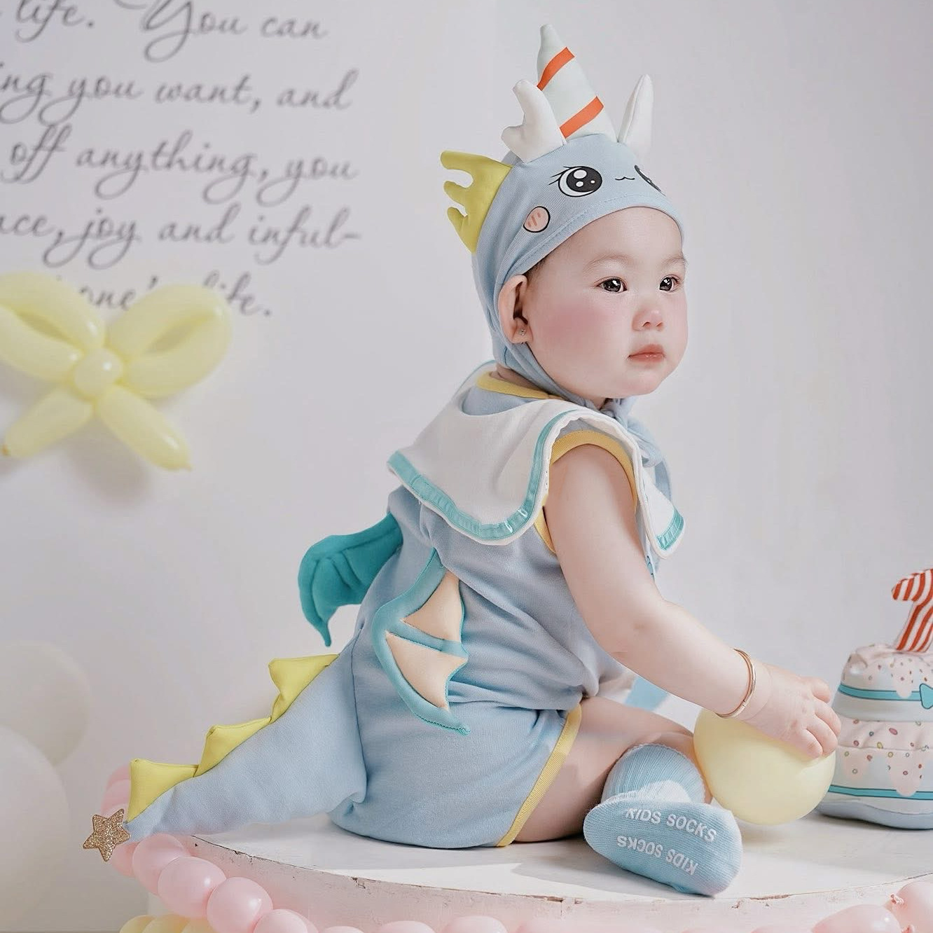 25年夏季新款婴儿短袖哈衣韩版ins风宝宝小龙造型衣拍摄生日服装