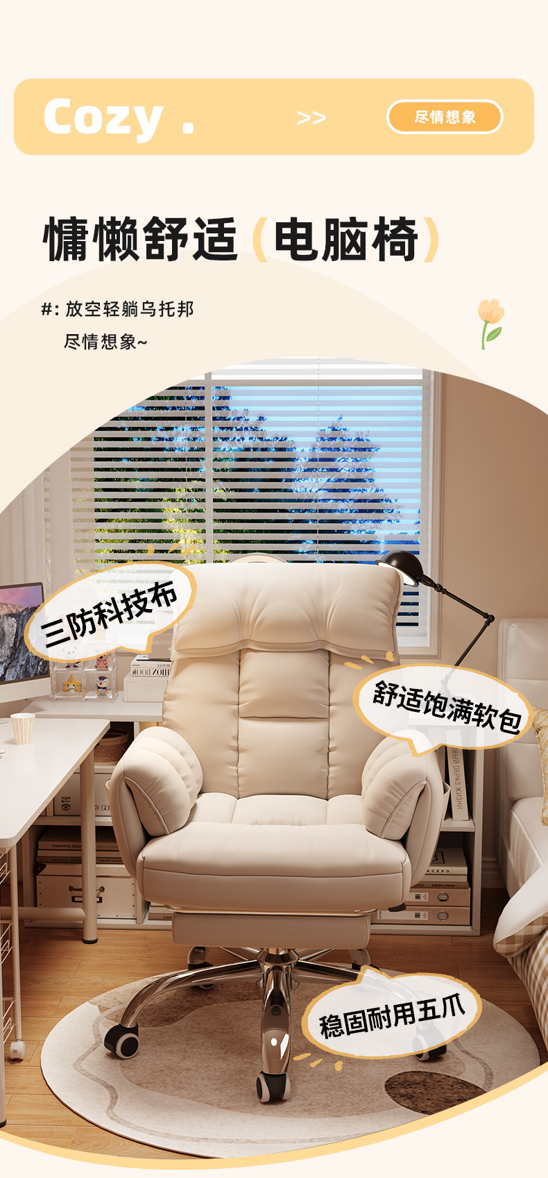 电脑椅子舒服久坐办公椅靠背可躺舒适家用宿舍懒人沙发电竞直播椅