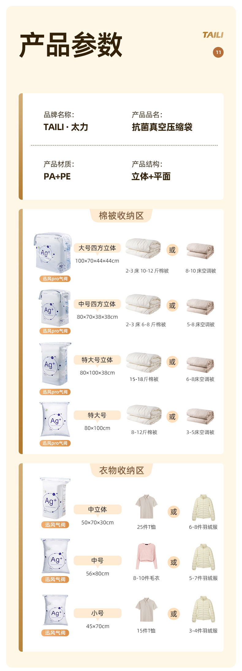 太力真空收纳压缩袋装被子衣服衣物羽绒服棉被专用袋子抗菌免抽气
