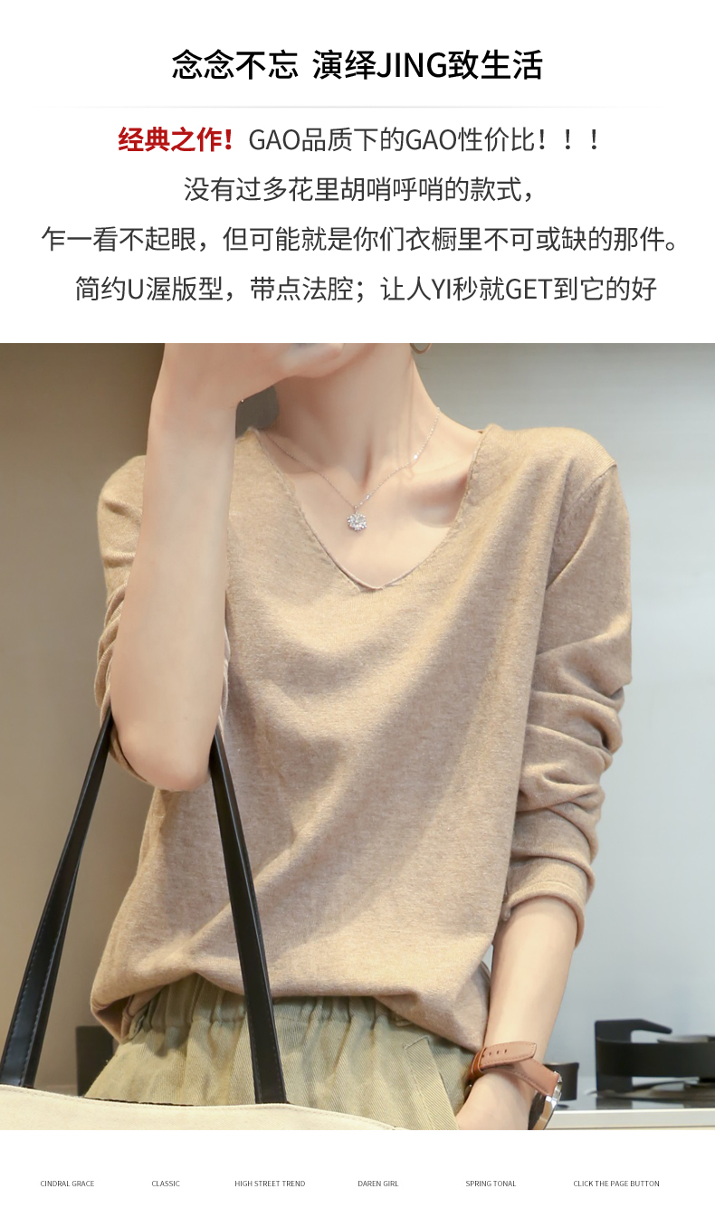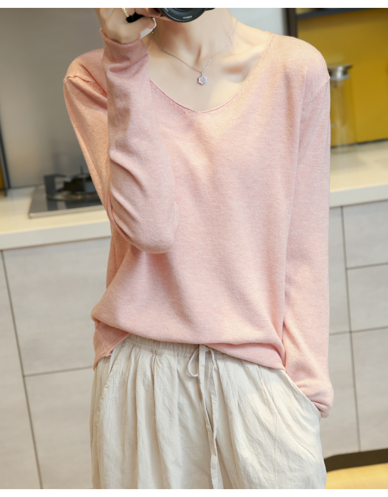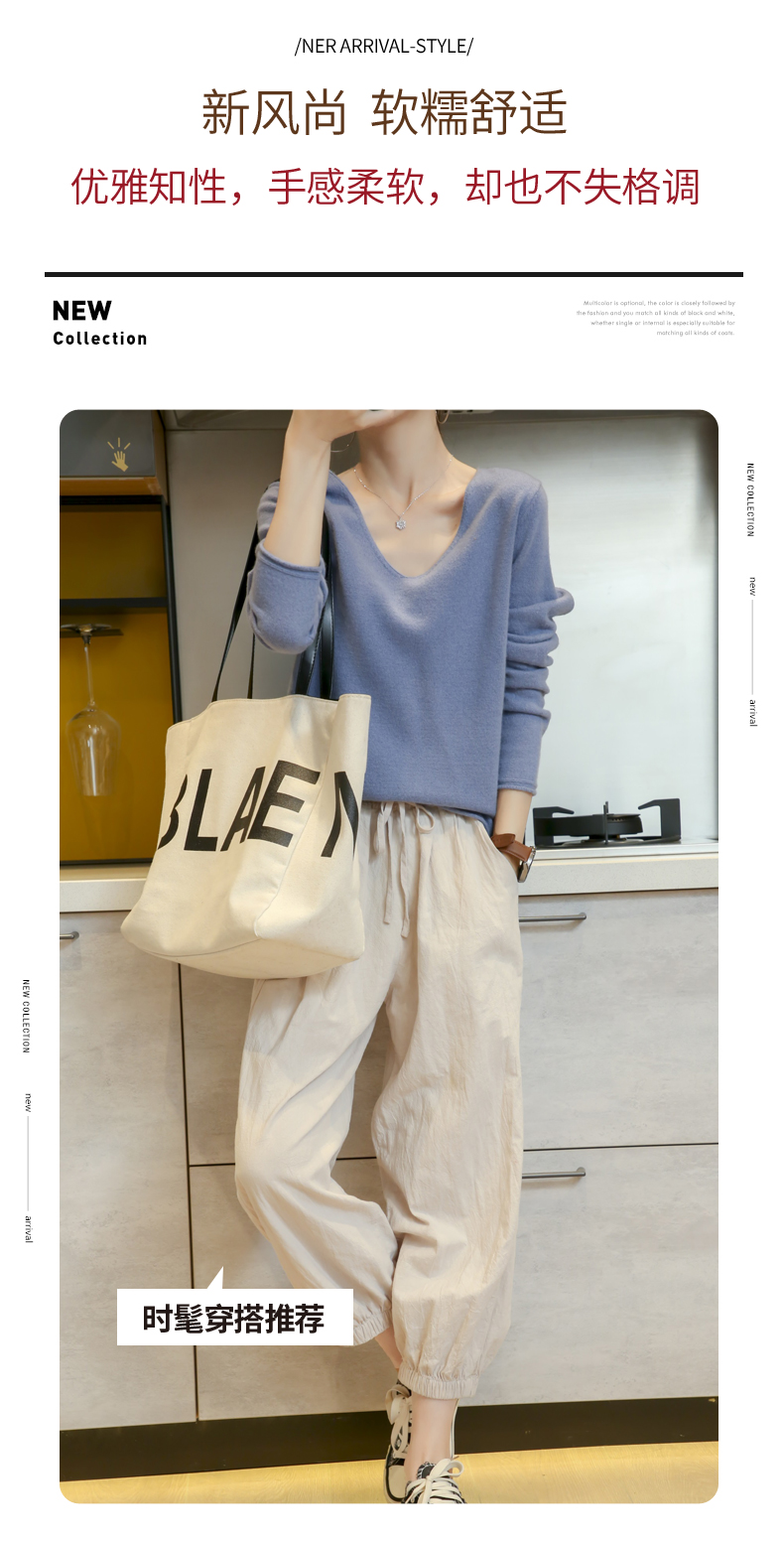 v领2023春秋新款薄款毛衣女宽松韩版针织低领内搭打底衫长袖毛衫