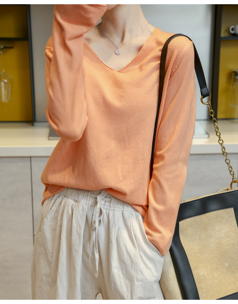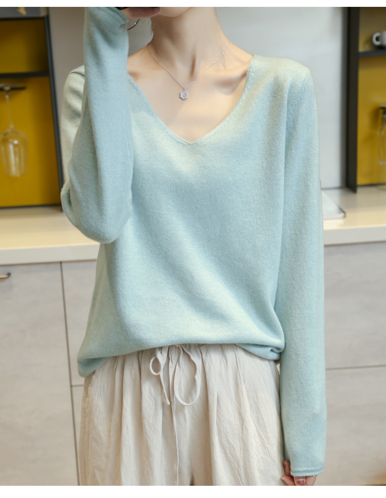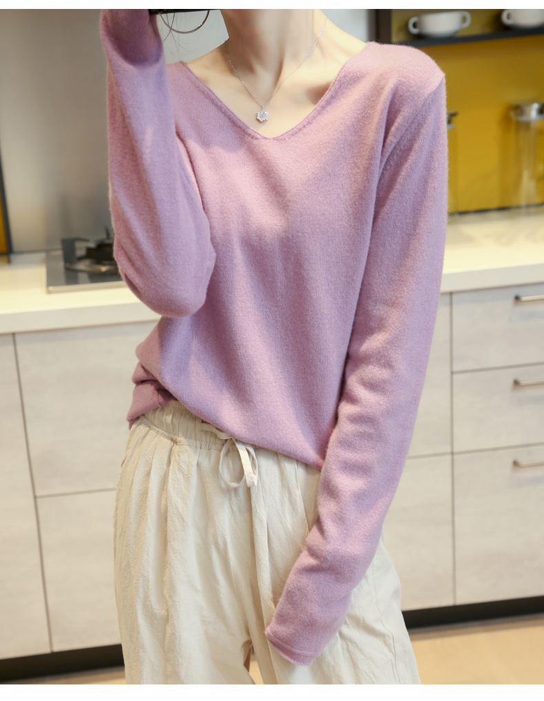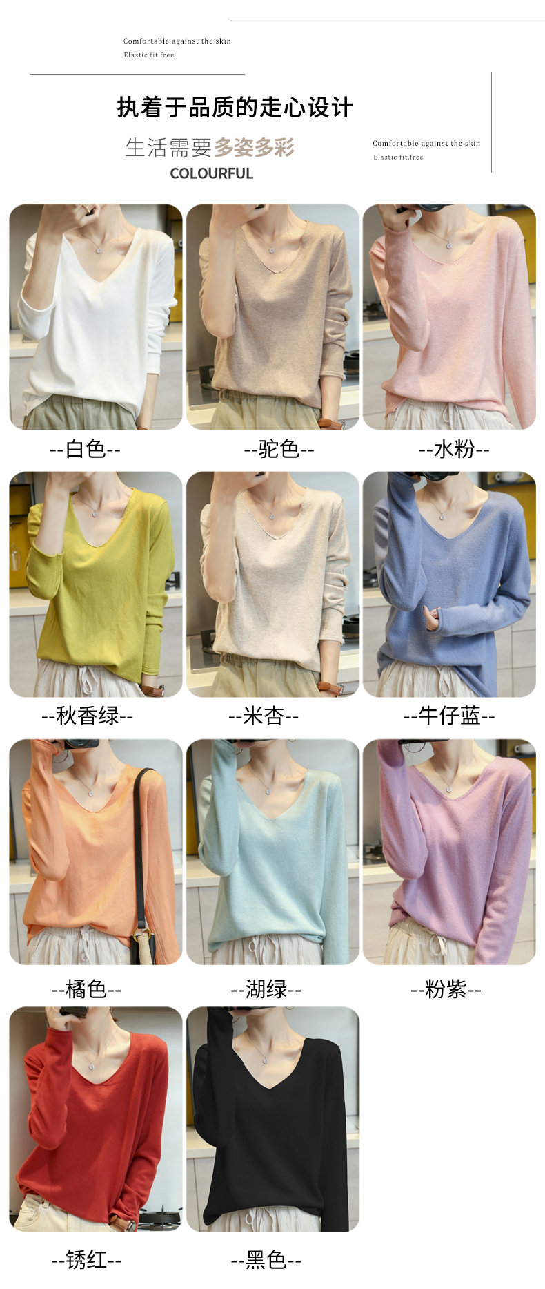 v领2023春秋新款薄款毛衣女宽松韩版针织低领内搭打底衫长袖毛衫