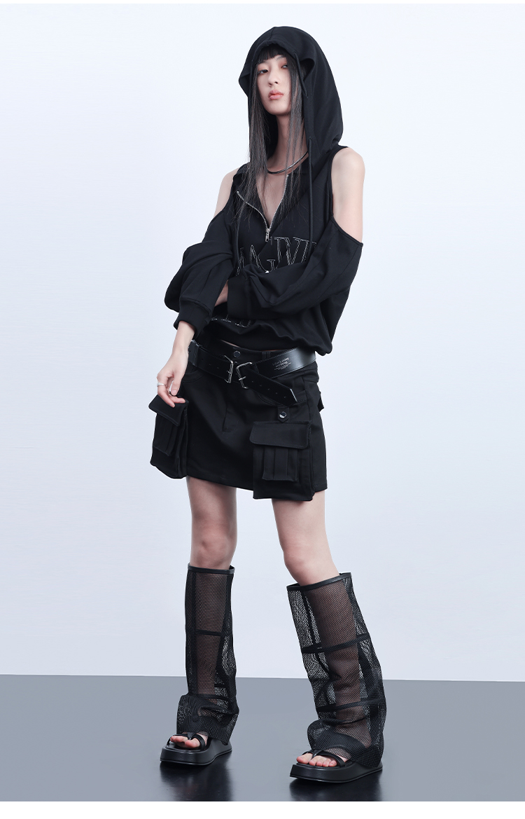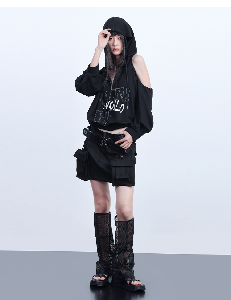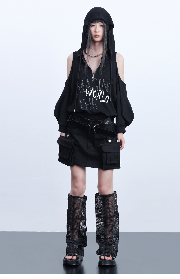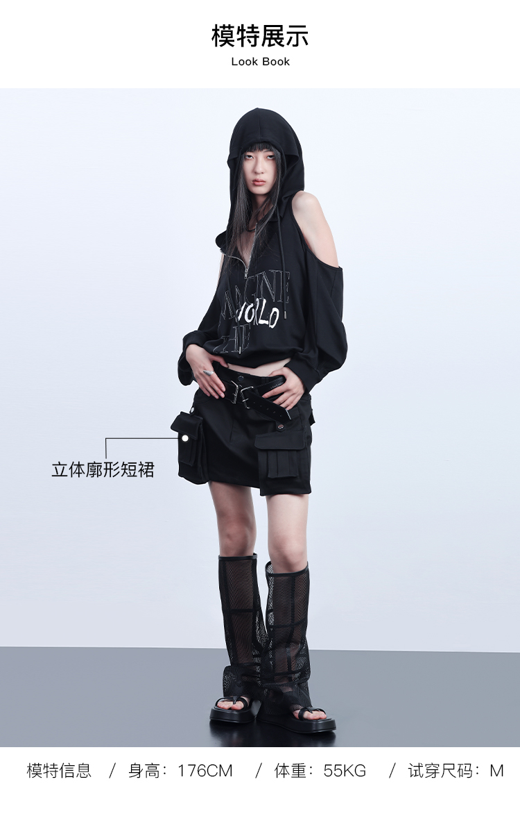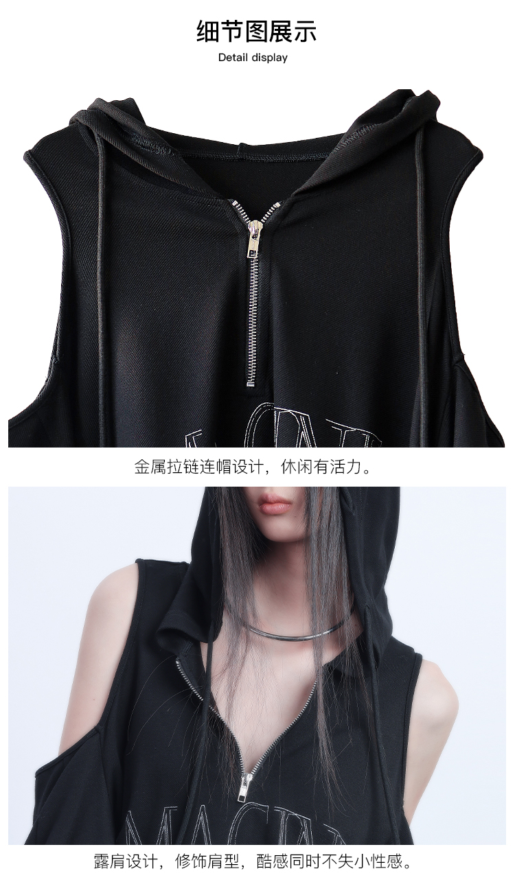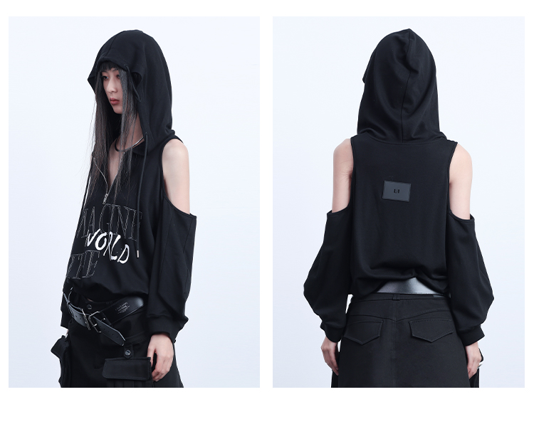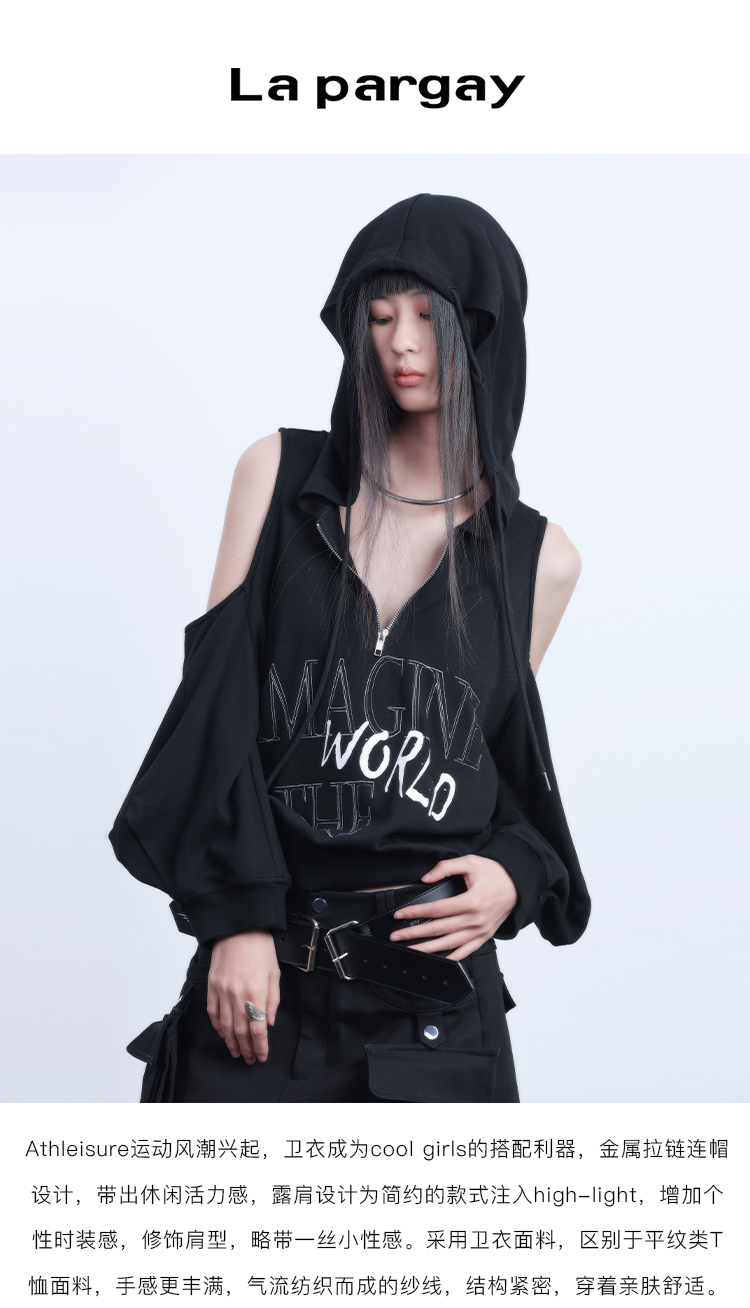 纳帕佳酷感套头长袖连帽卫衣2025春季新款女式黑色休闲设计感上衣