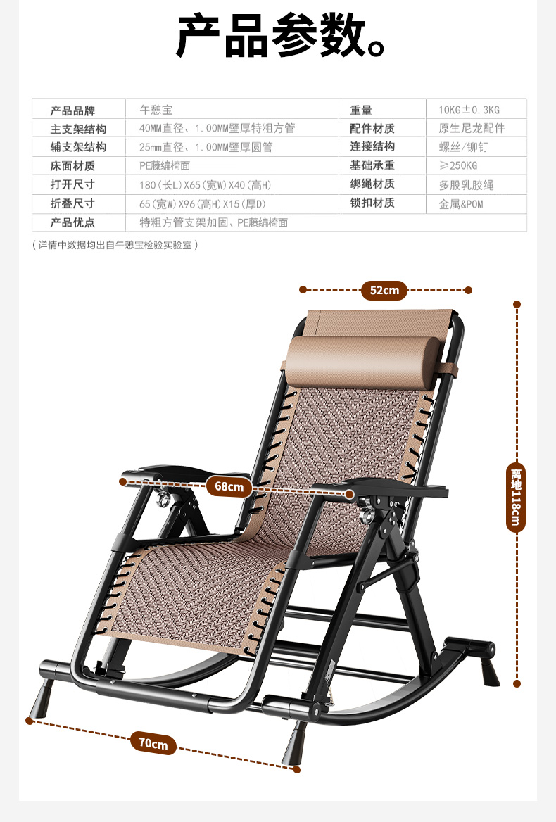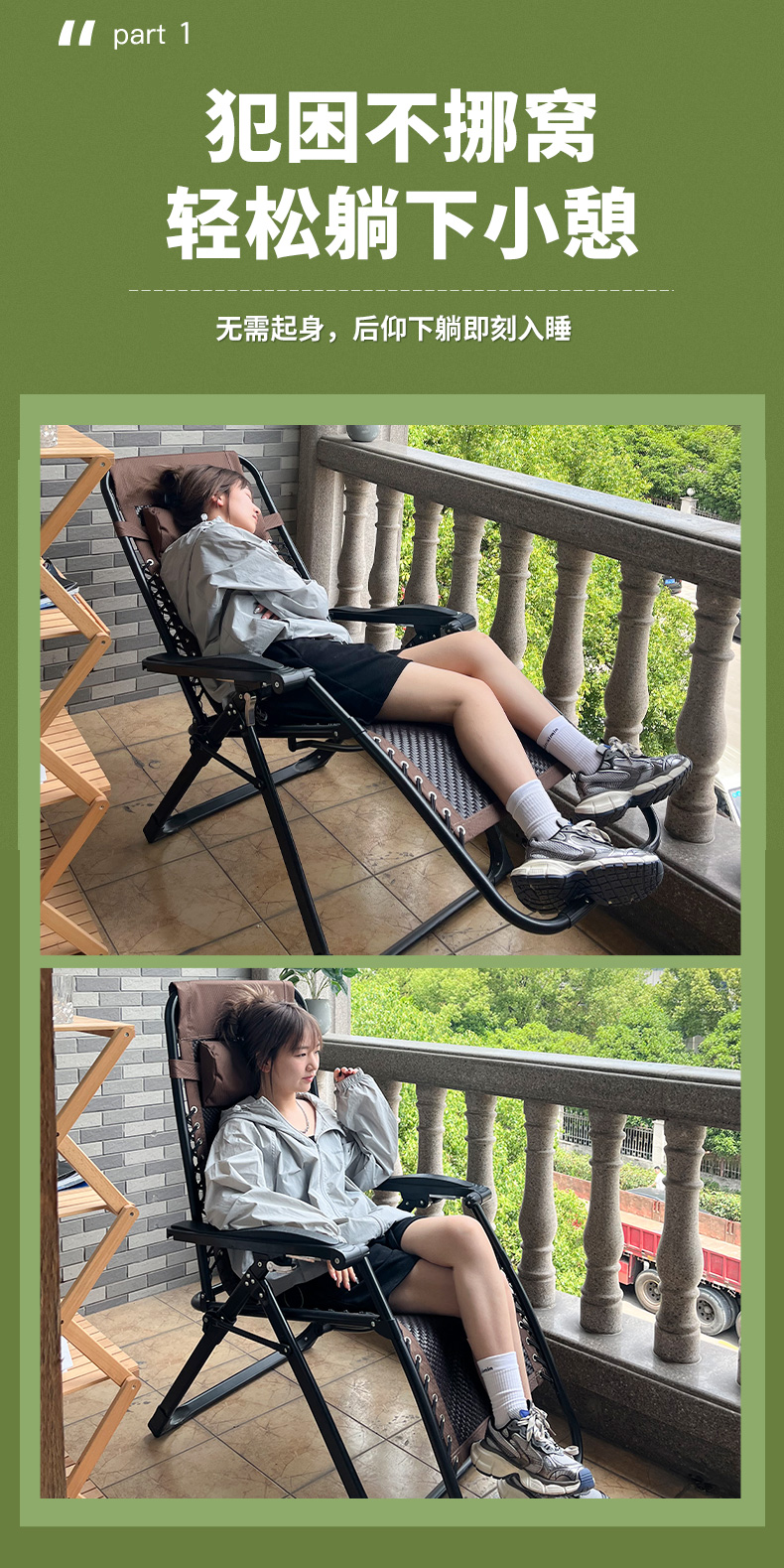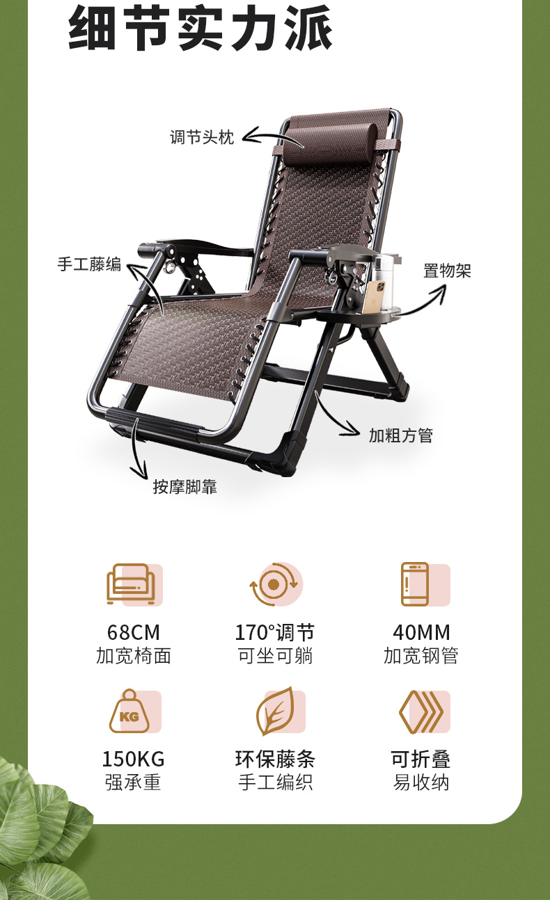 午憩宝折叠躺椅老人阳台休闲午休睡椅子可躺2025新款藤编靠背凉椅