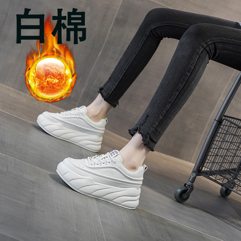 2025秋冬新款内增高女鞋批发厚底休闲小白鞋坡跟松糕底单鞋潮加绒