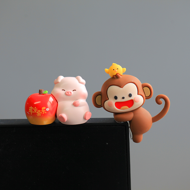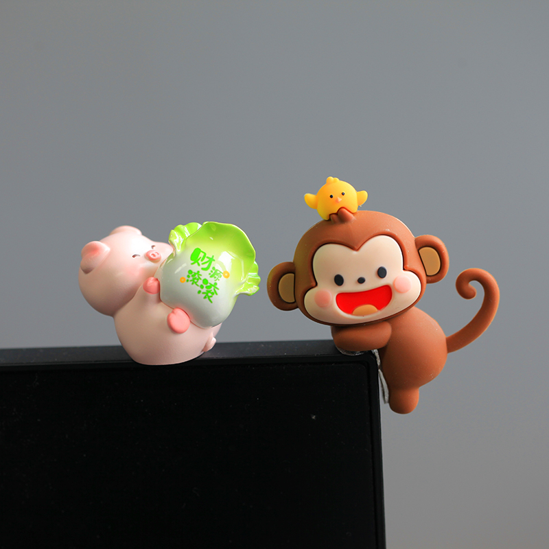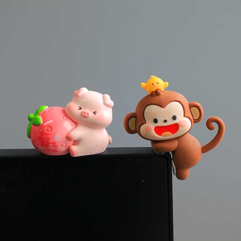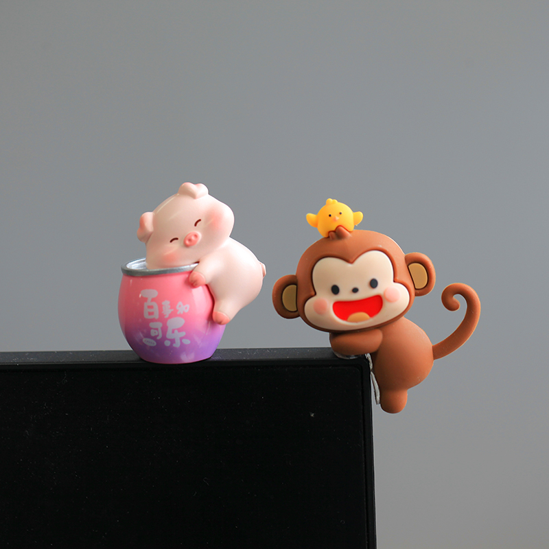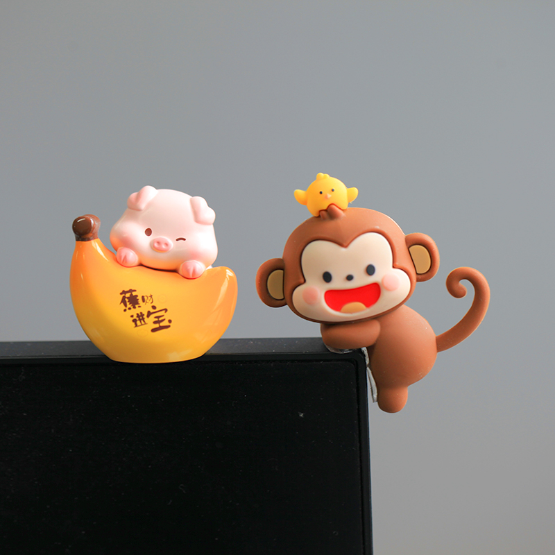 可爱猴子办公室工位桌面摆件电脑电视机显示器屏幕趴趴车载装饰品