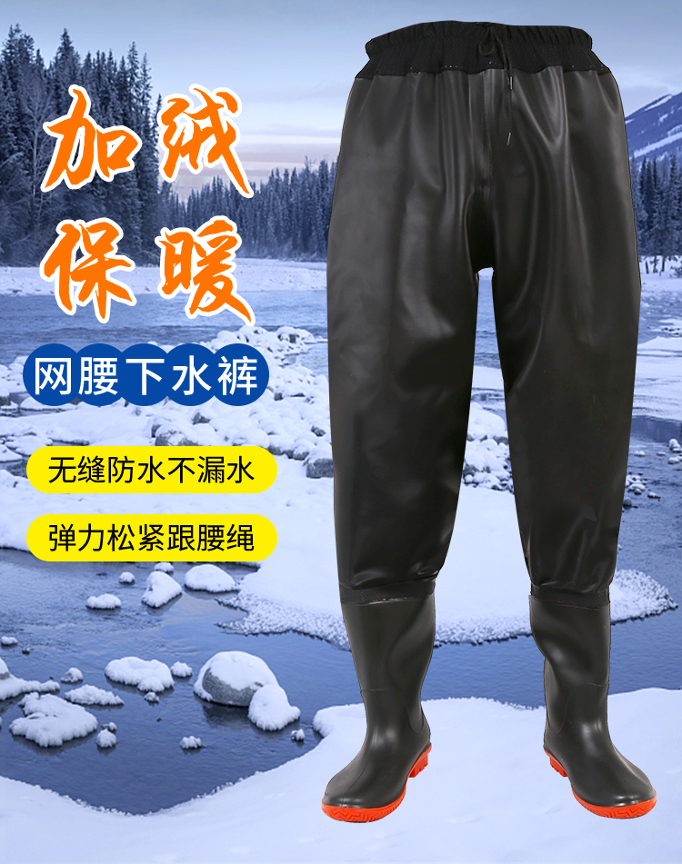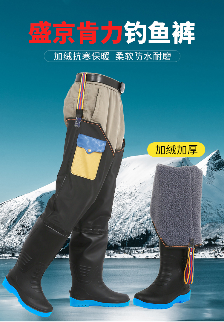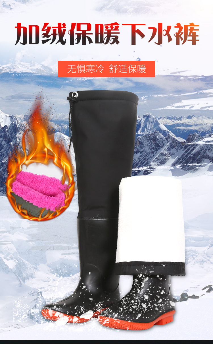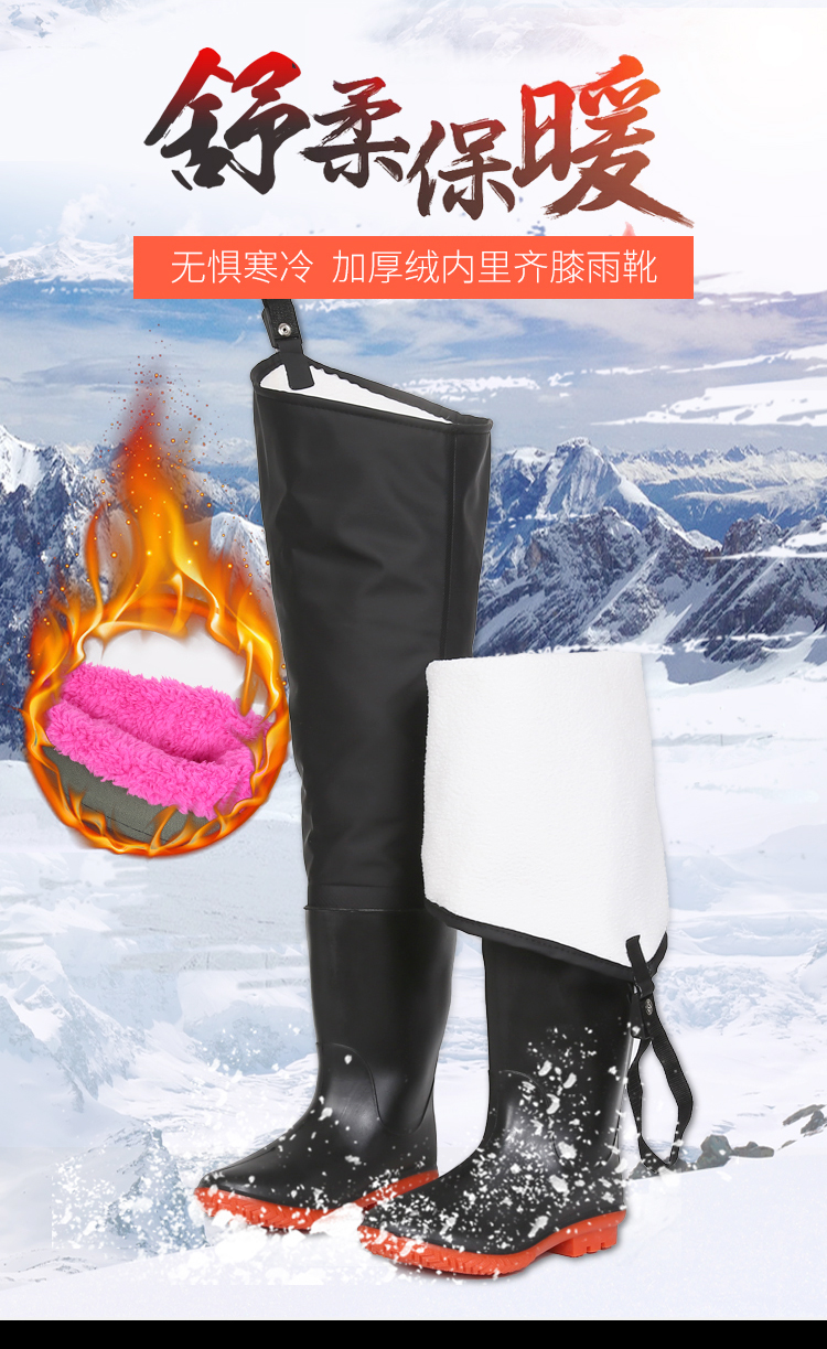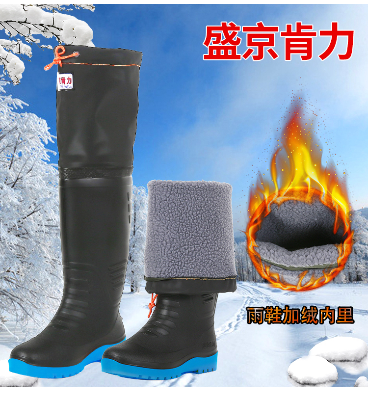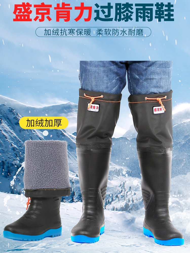 高筒加绒雨鞋男冬季过膝钓鱼靴子防水防滑加棉雨靴保暖水鞋长胶鞋