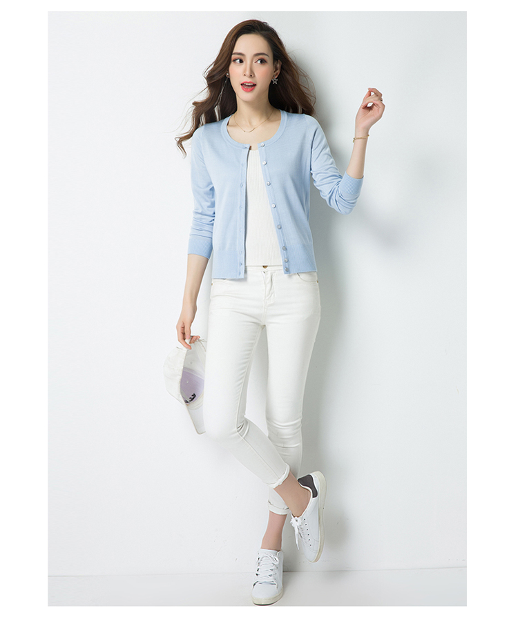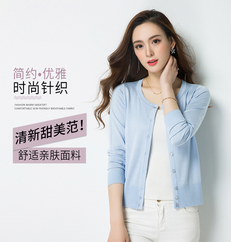 鄂尔多斯市产针织衫女开衫短款桑蚕丝薄款毛衣宽松长袖小披肩外搭
