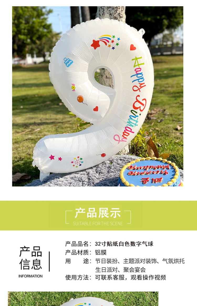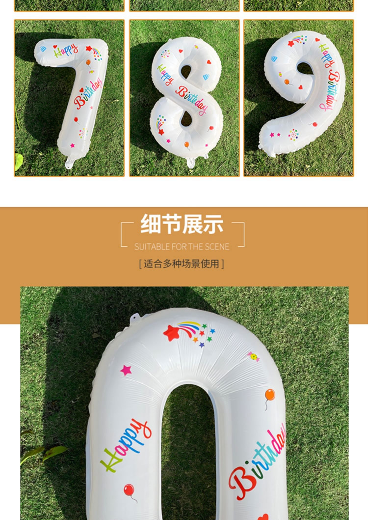 ins白色32寸超大数字铝膜气球户外拍照道具儿童宝宝1周岁场景布置