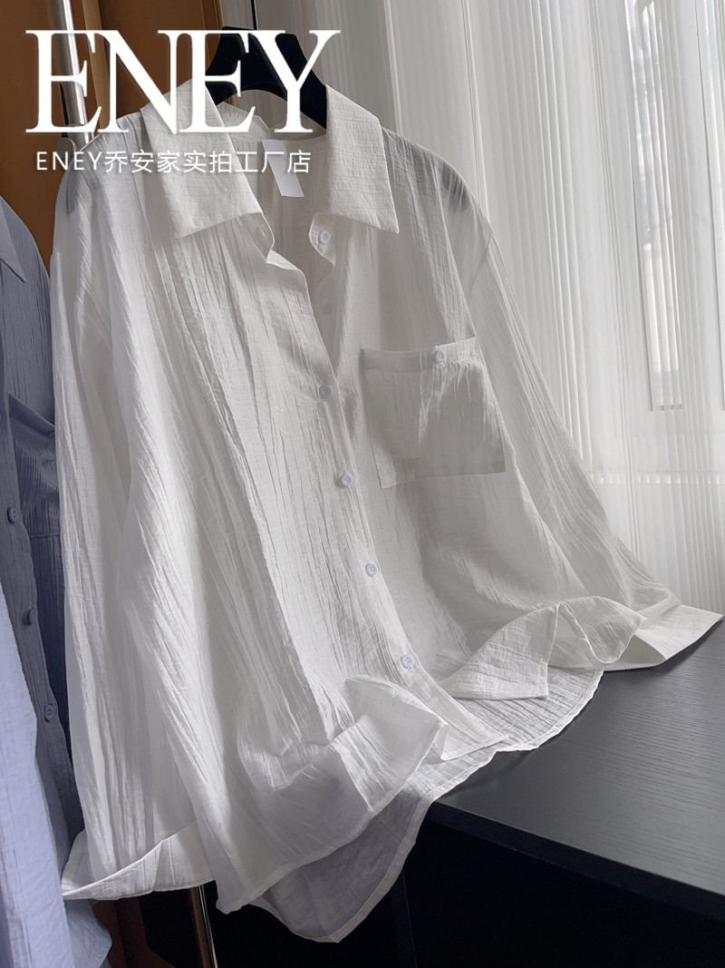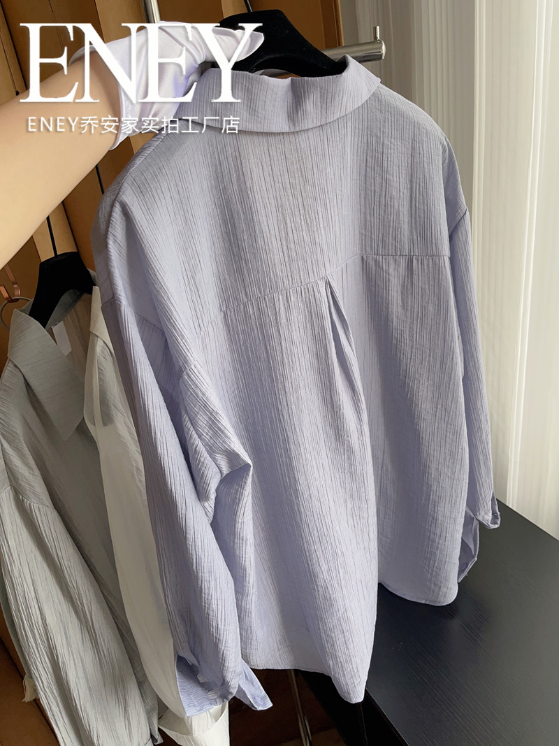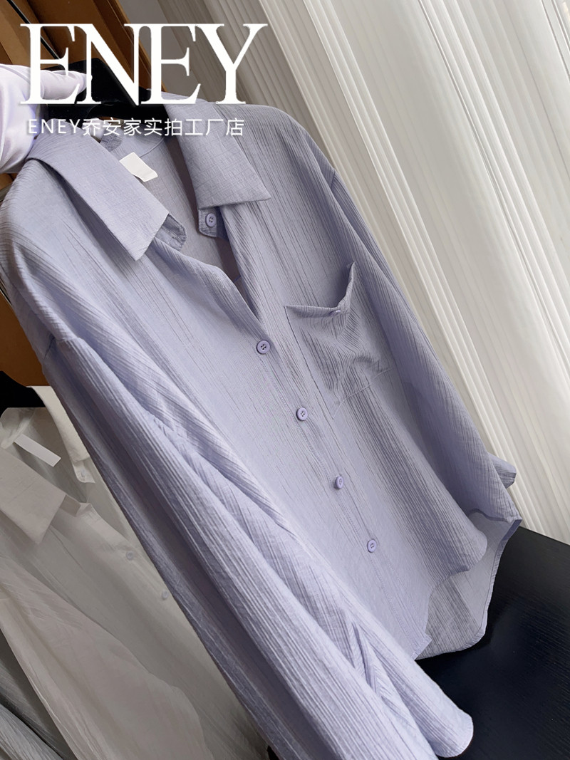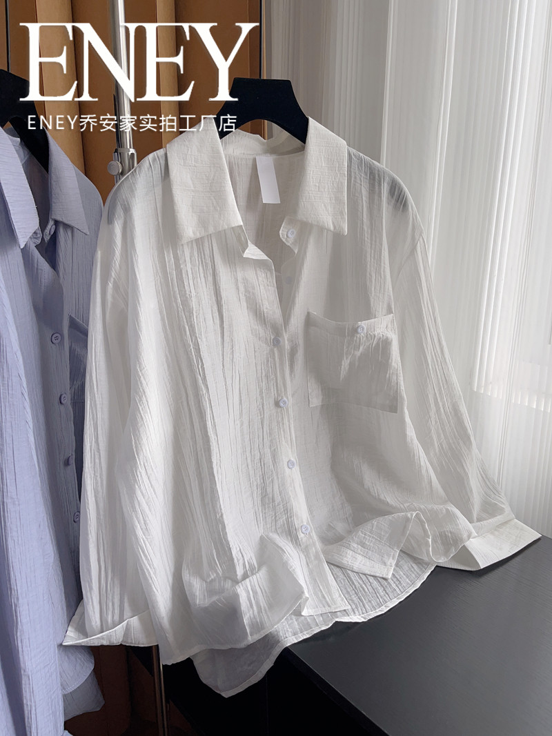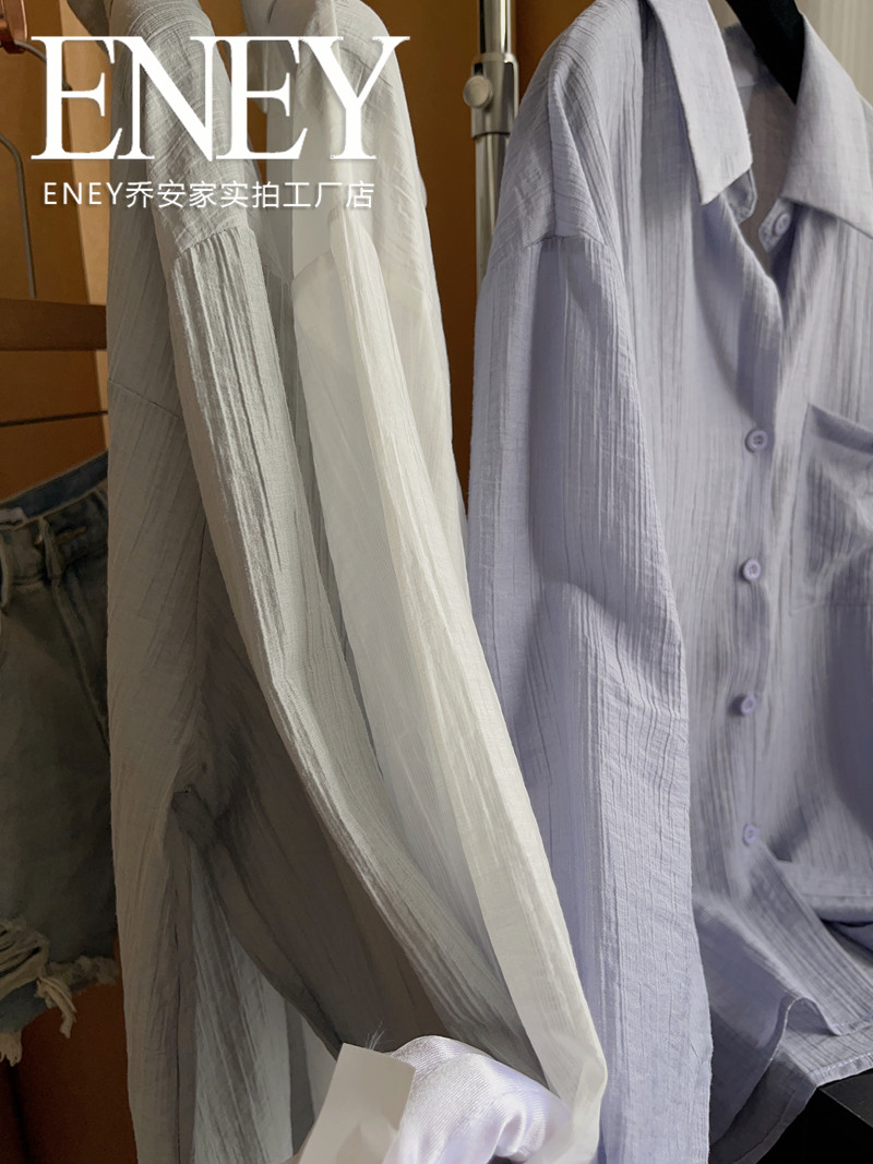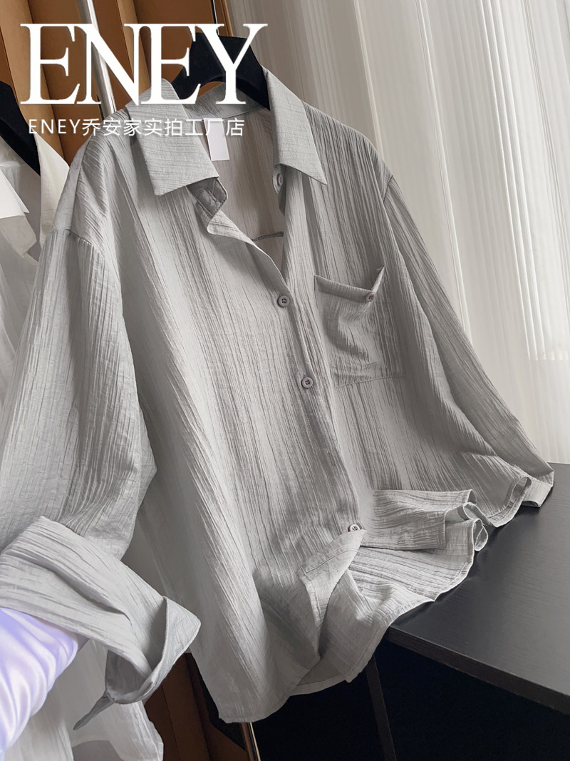 大码遮肉~哑光肌理感雪纺衫韩版大版遮肚子薄防晒衬衫宽松衬衣夏