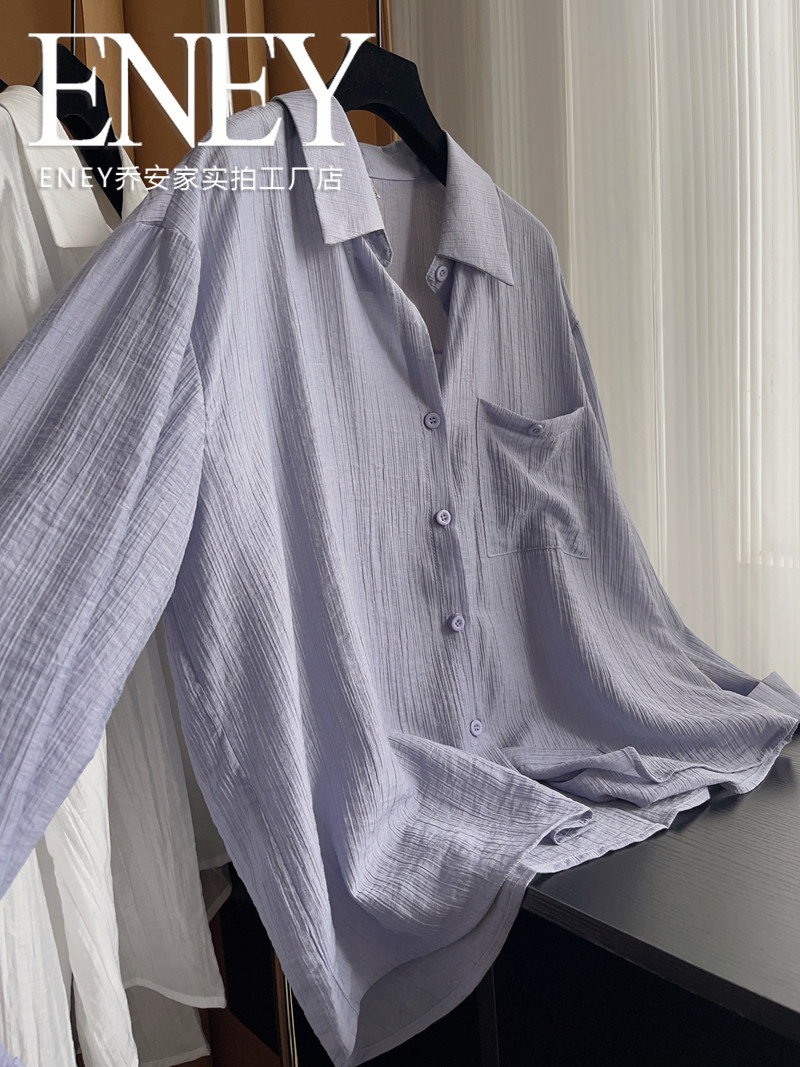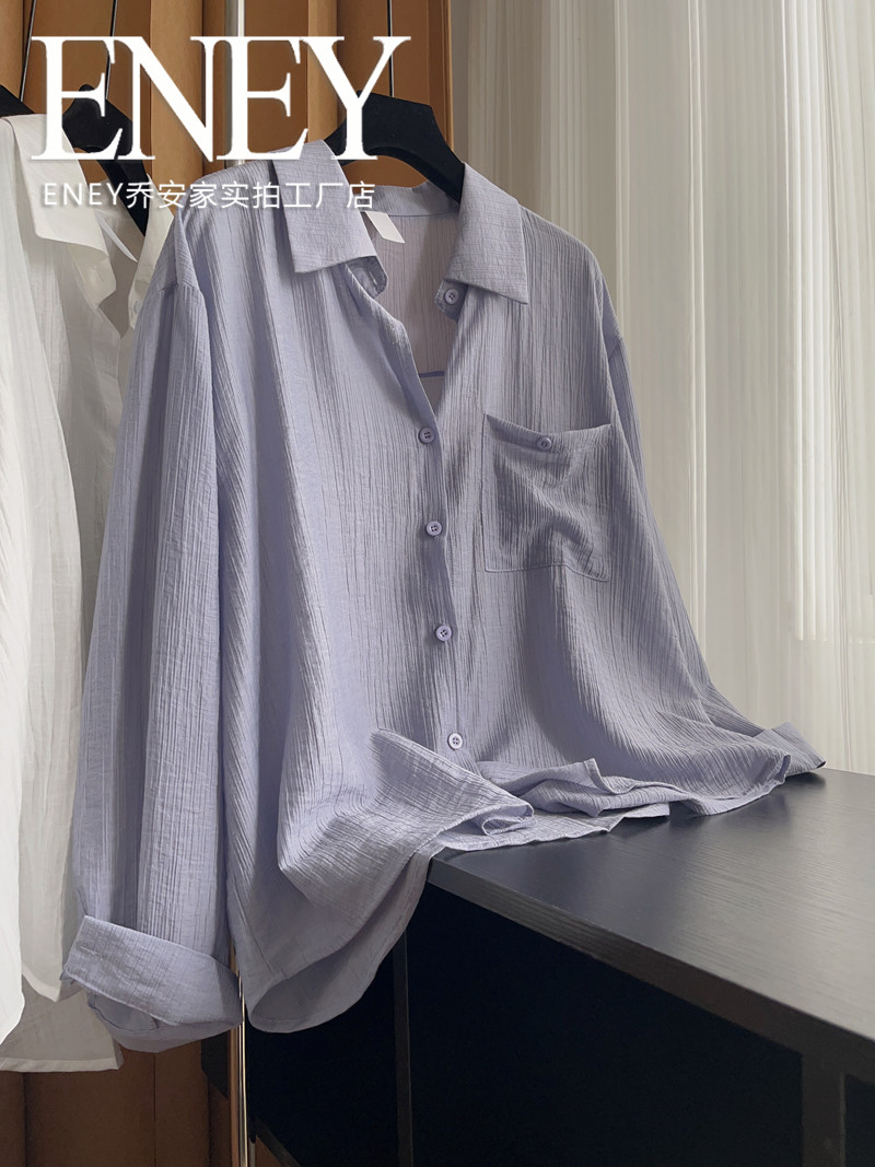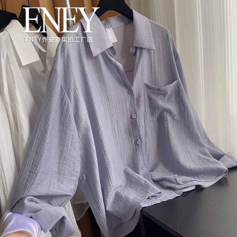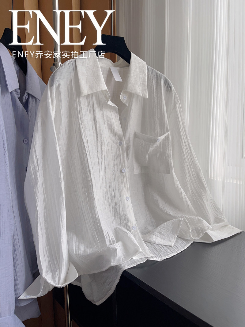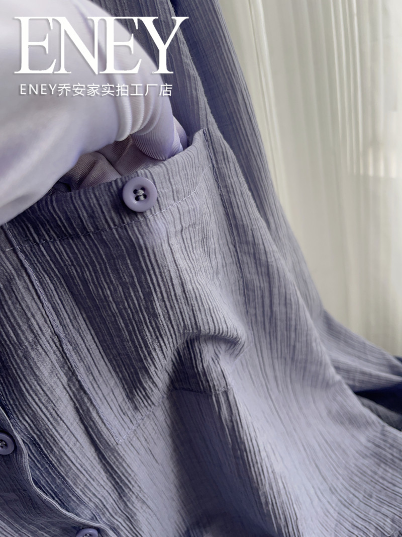 大码遮肉~哑光肌理感雪纺衫韩版大版遮肚子薄防晒衬衫宽松衬衣夏