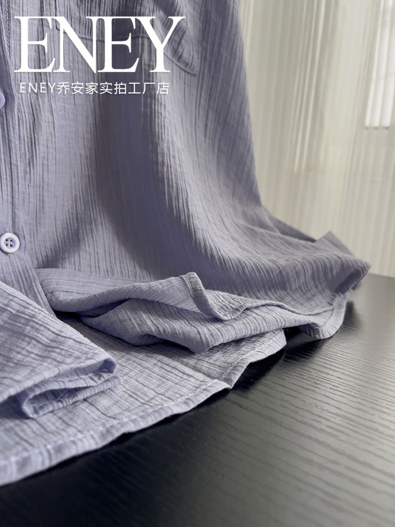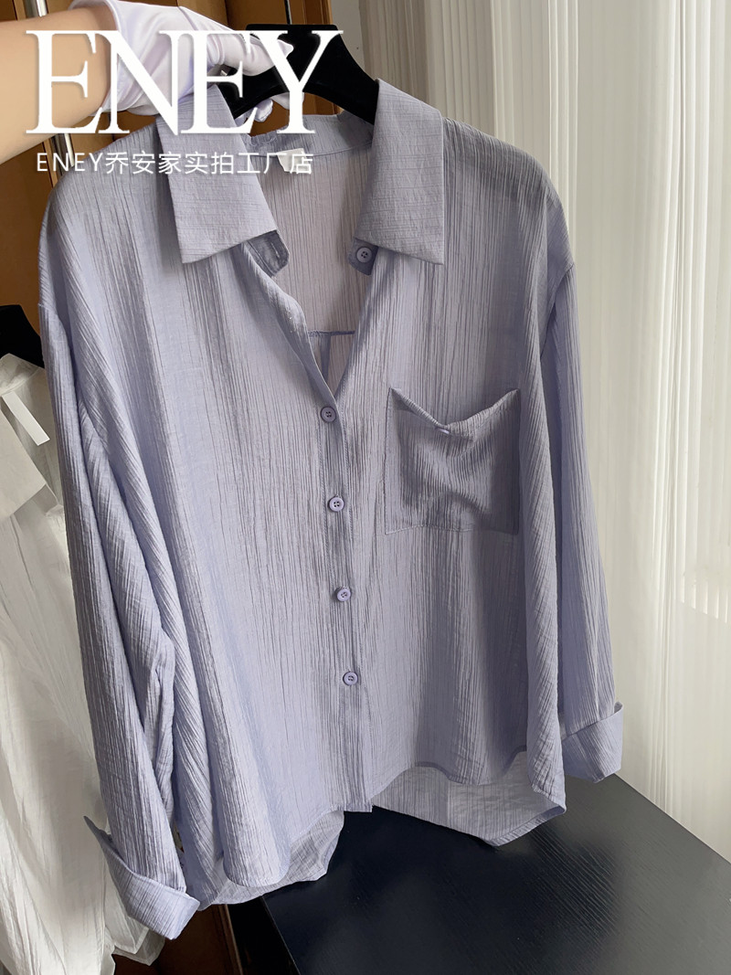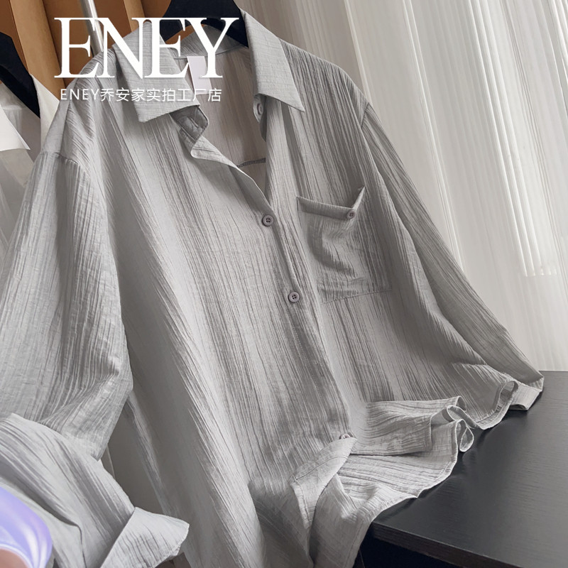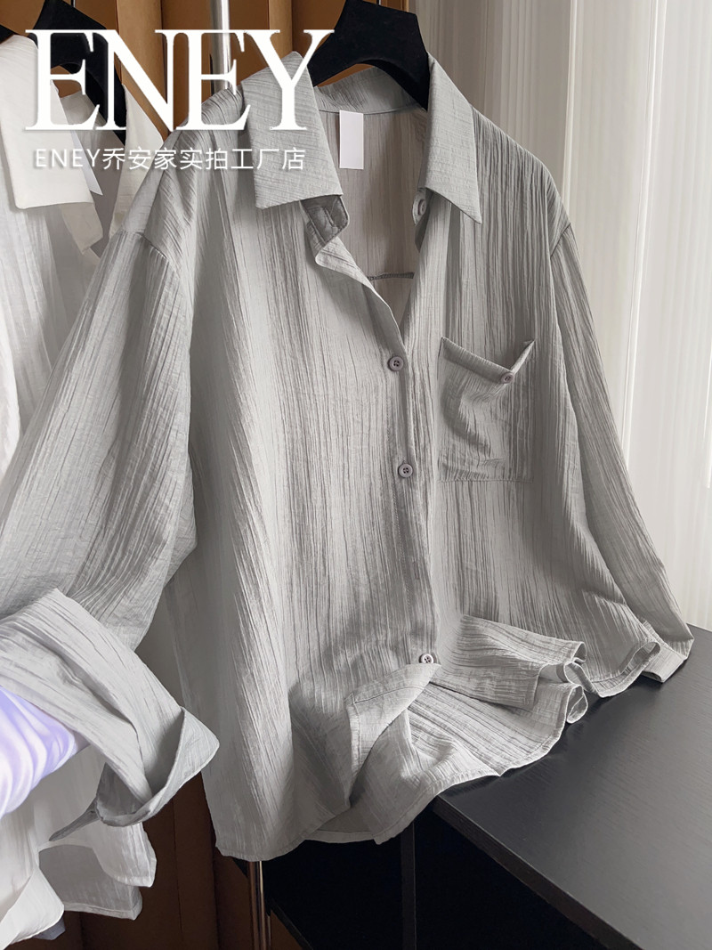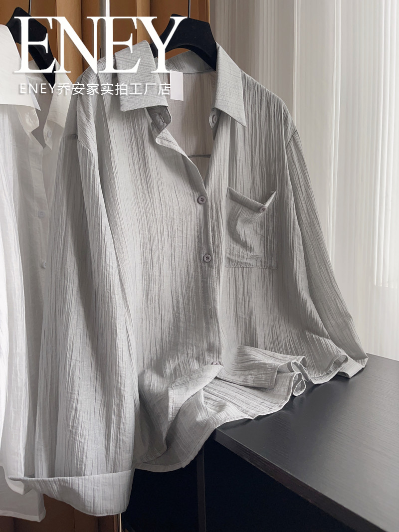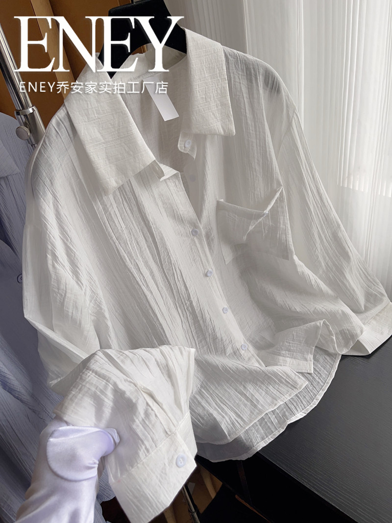 大码遮肉~哑光肌理感雪纺衫韩版大版遮肚子薄防晒衬衫宽松衬衣夏