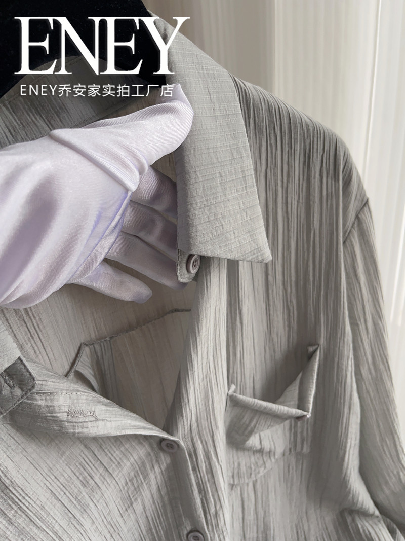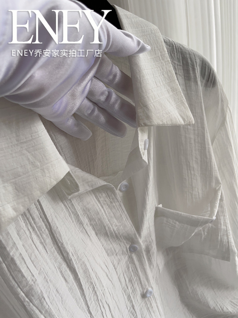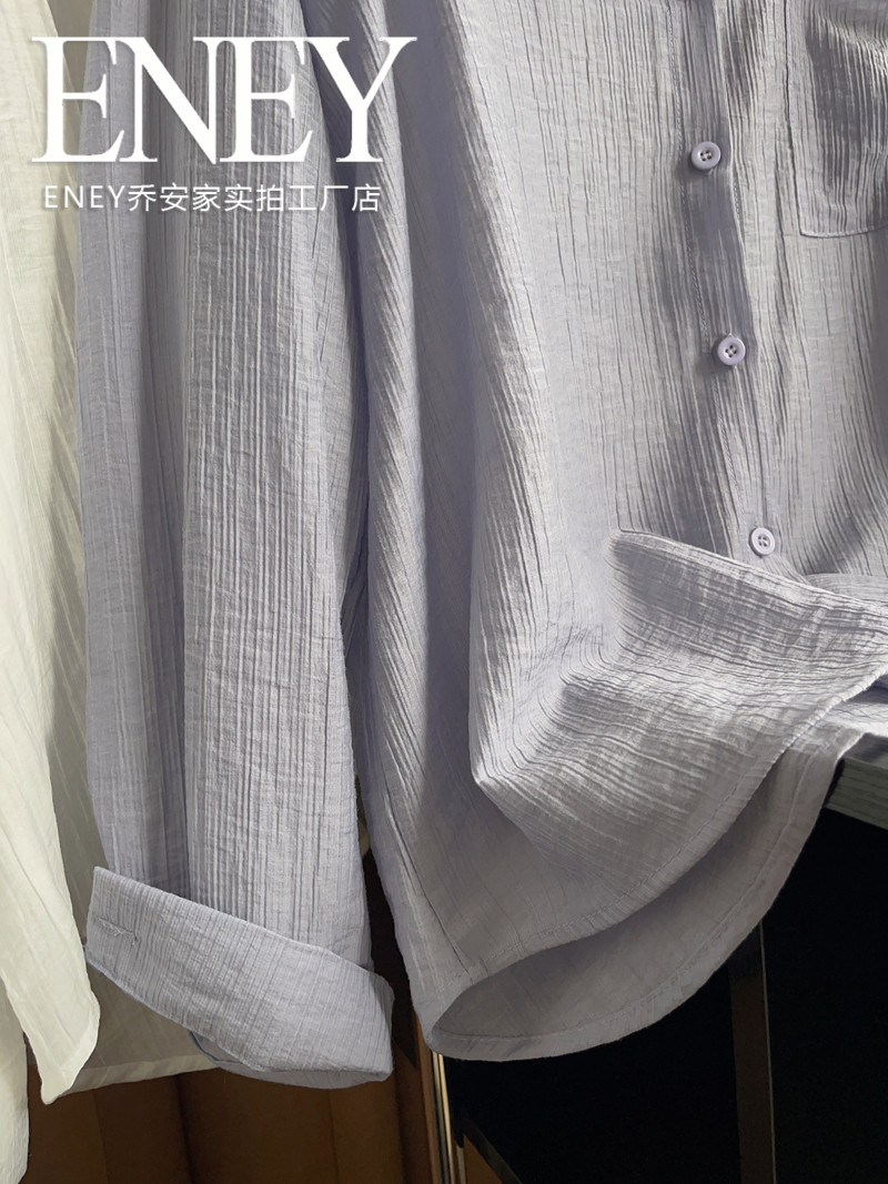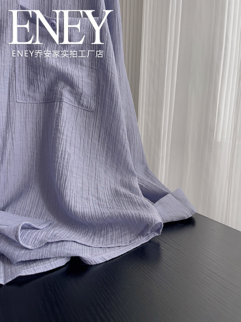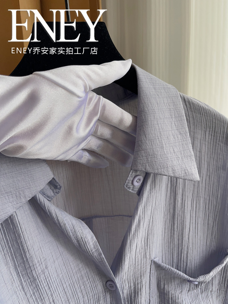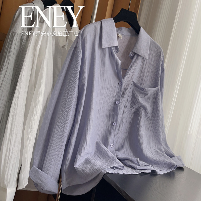 大码遮肉~哑光肌理感雪纺衫韩版大版遮肚子薄防晒衬衫宽松衬衣夏
