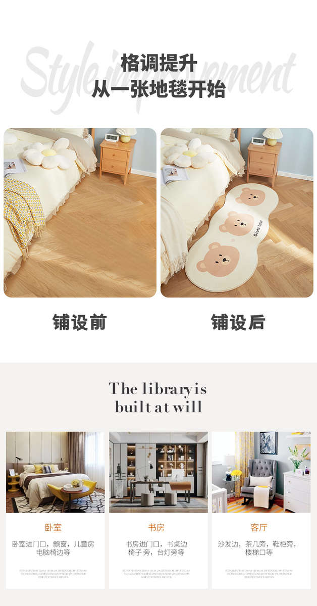 床边地毯可爱女生卧室少女ins加厚仿羊绒床边毯卡通柔软宠物地垫
