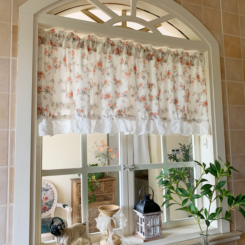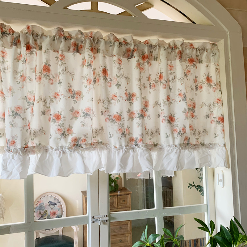 韩式田园碎花窗帘橱柜帘遮挡帘透光不透人免打孔窗幔帘头半帘短帘