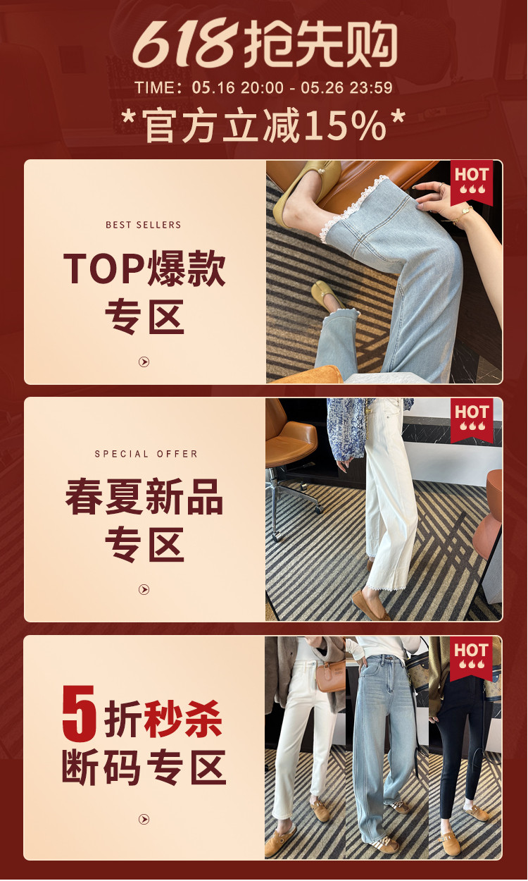 镇店王牌!直直腿~复古阔腿牛仔裤女2025春季宽松高腰拼接直筒裤