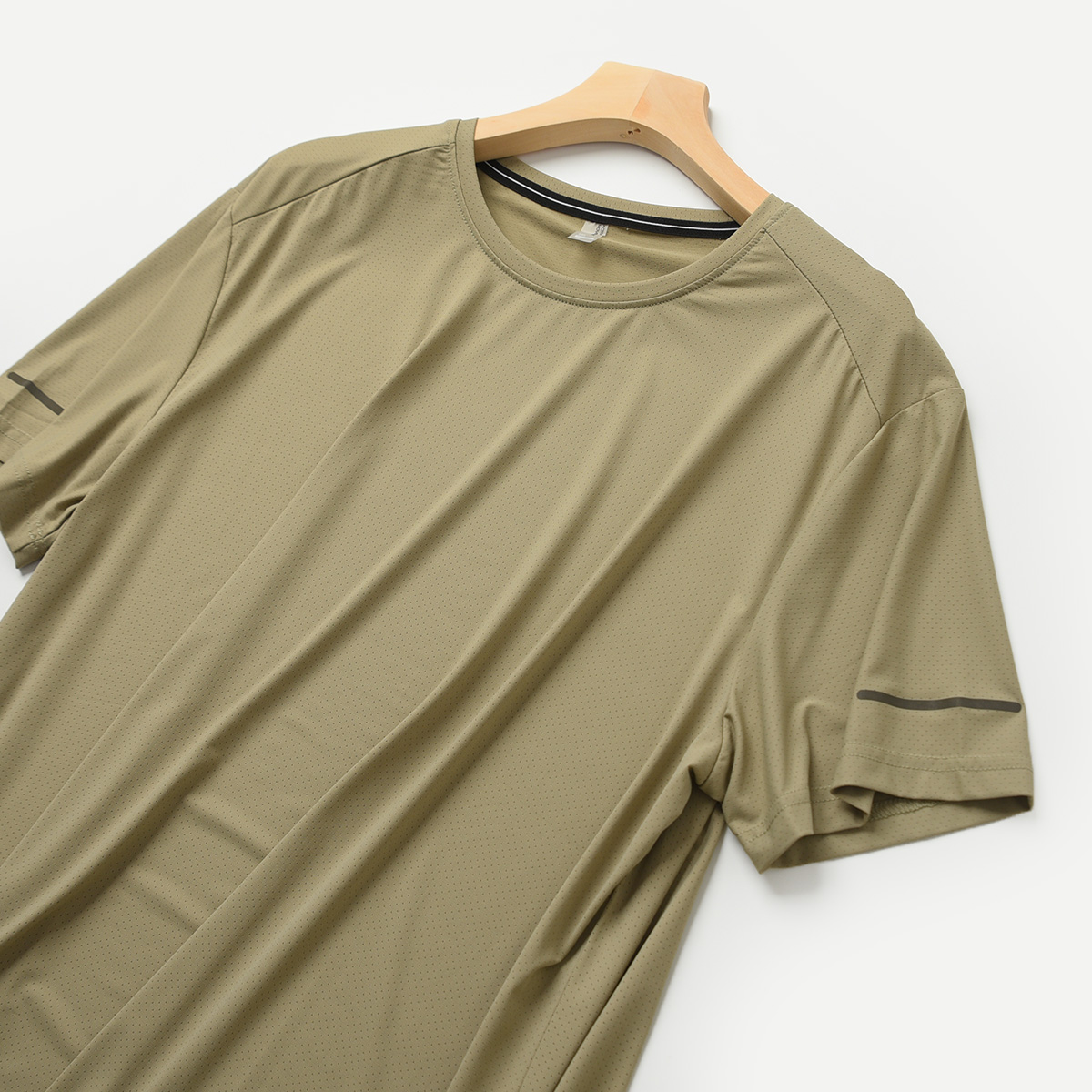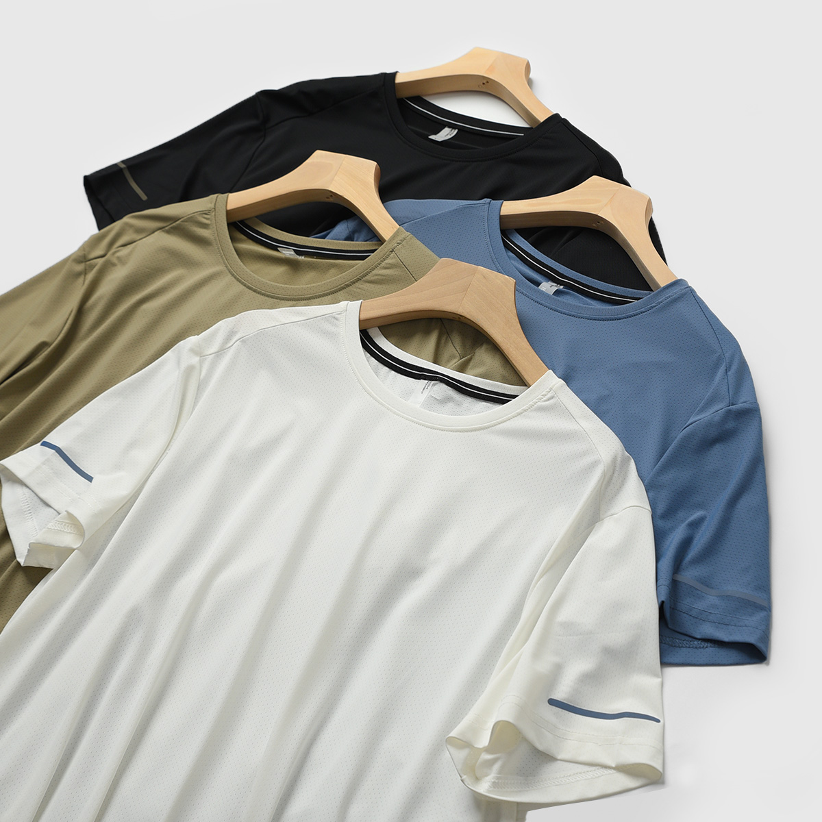 情侣款 男款冰丝凉感网孔圆领短袖 薄款弹力运动休闲T恤k