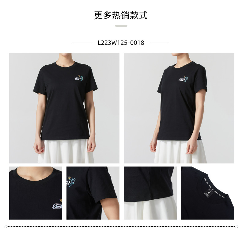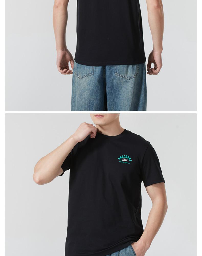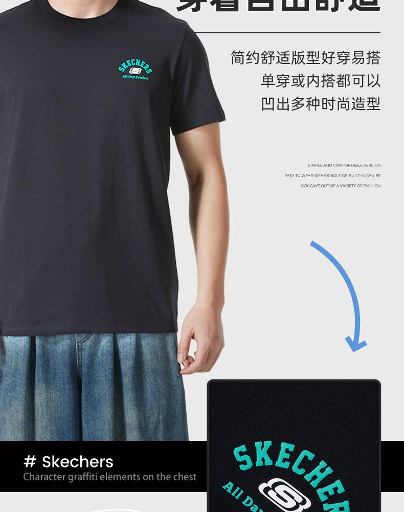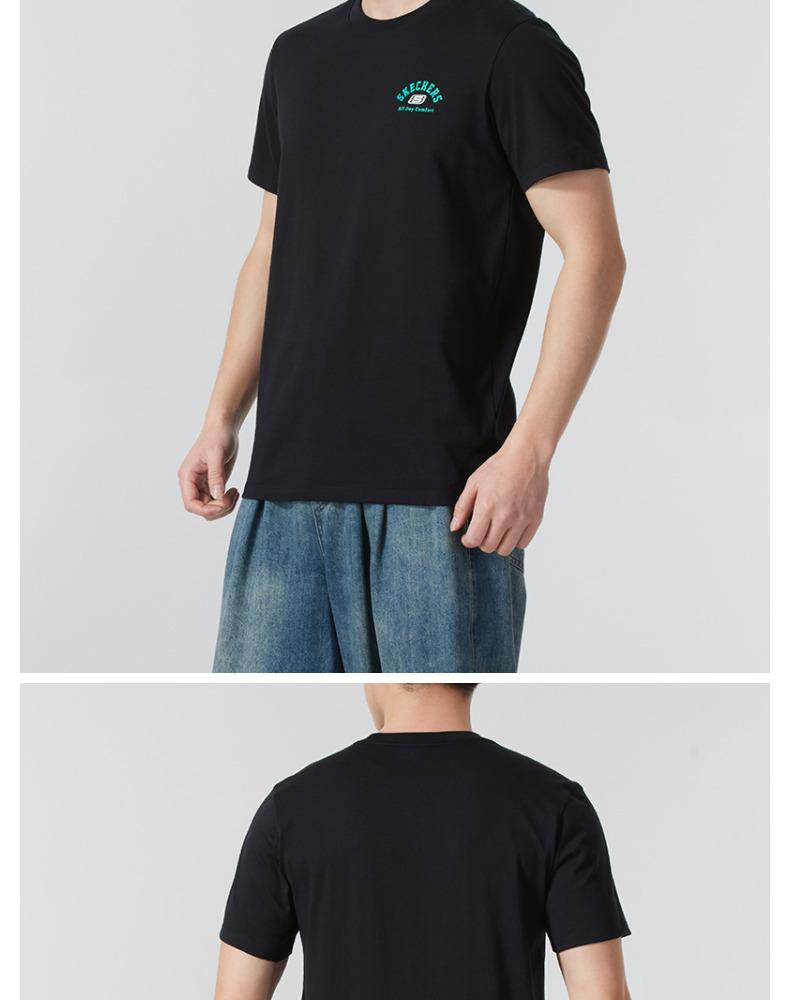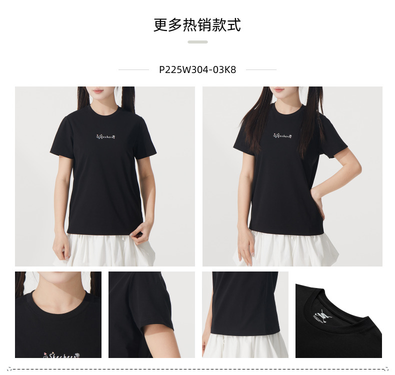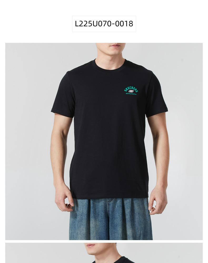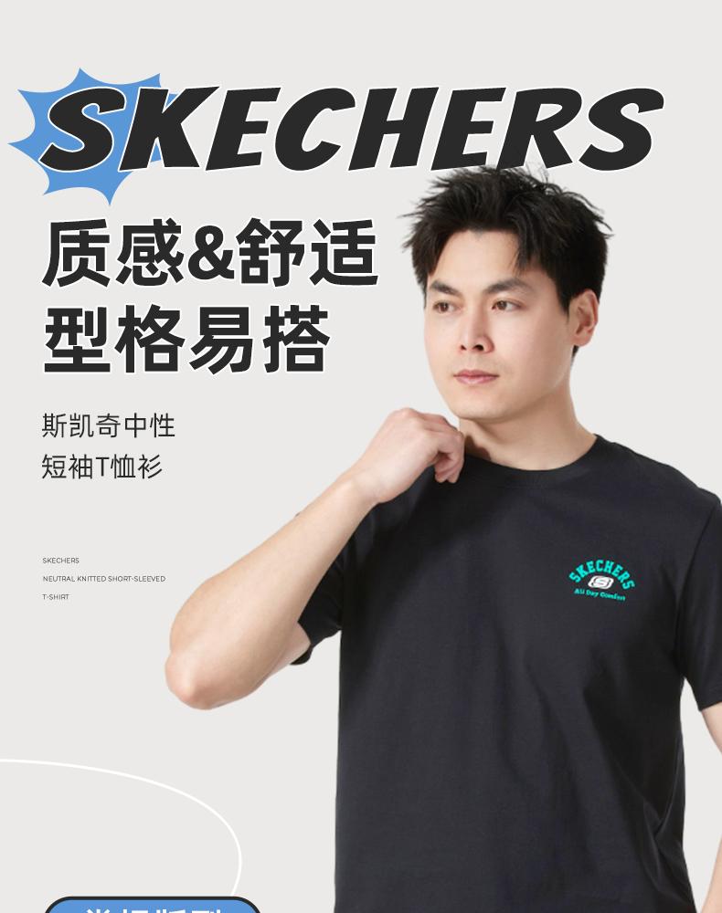 斯凯奇黑色圆领短袖男装女装2025夏季新款透气休闲运动服上衣T恤