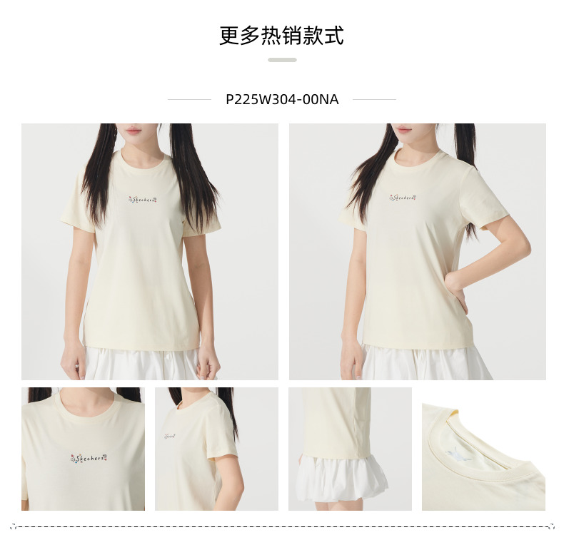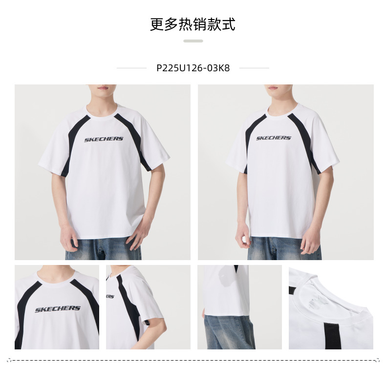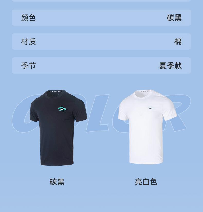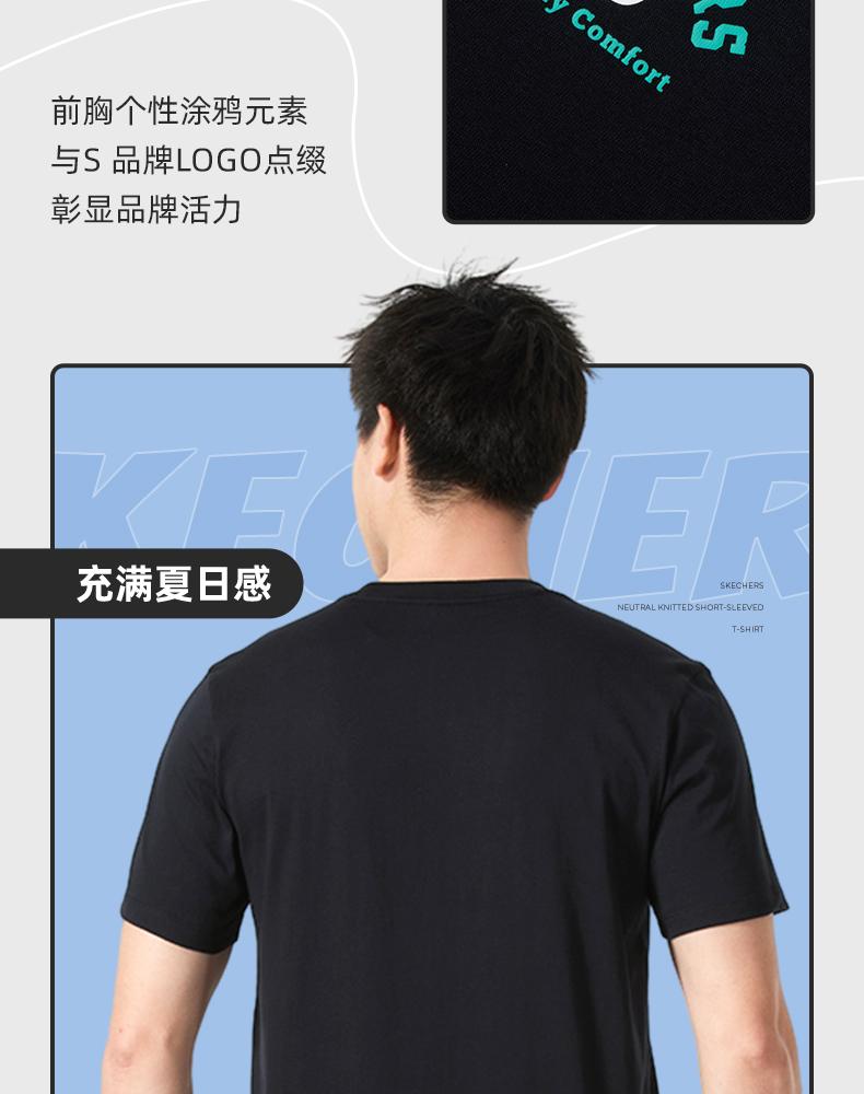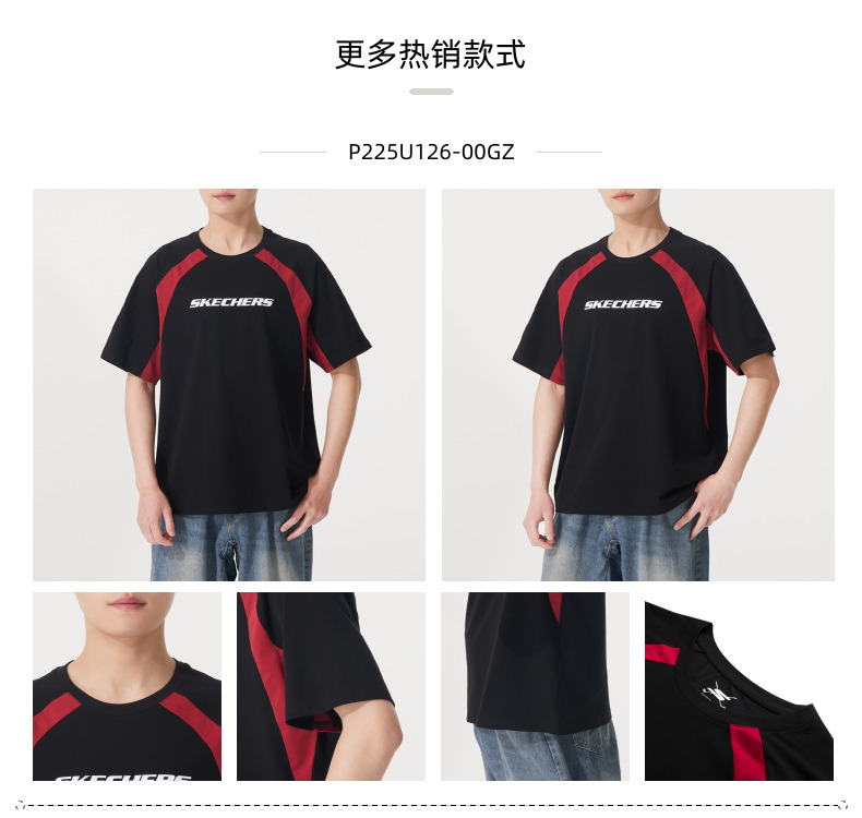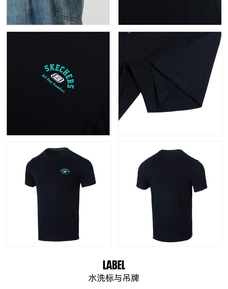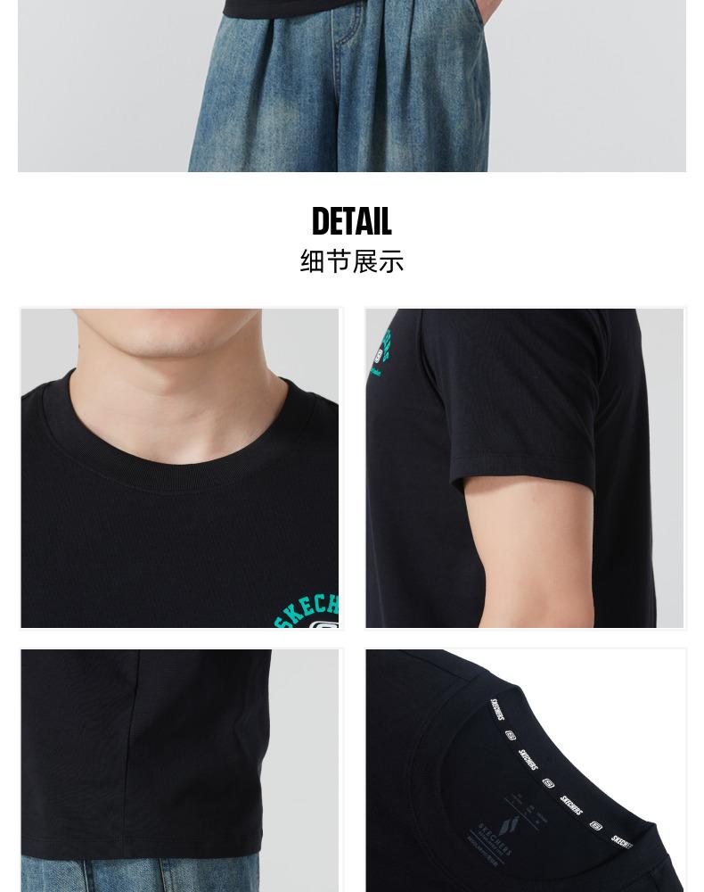 斯凯奇黑色圆领短袖男装女装2025夏季新款透气休闲运动服上衣T恤