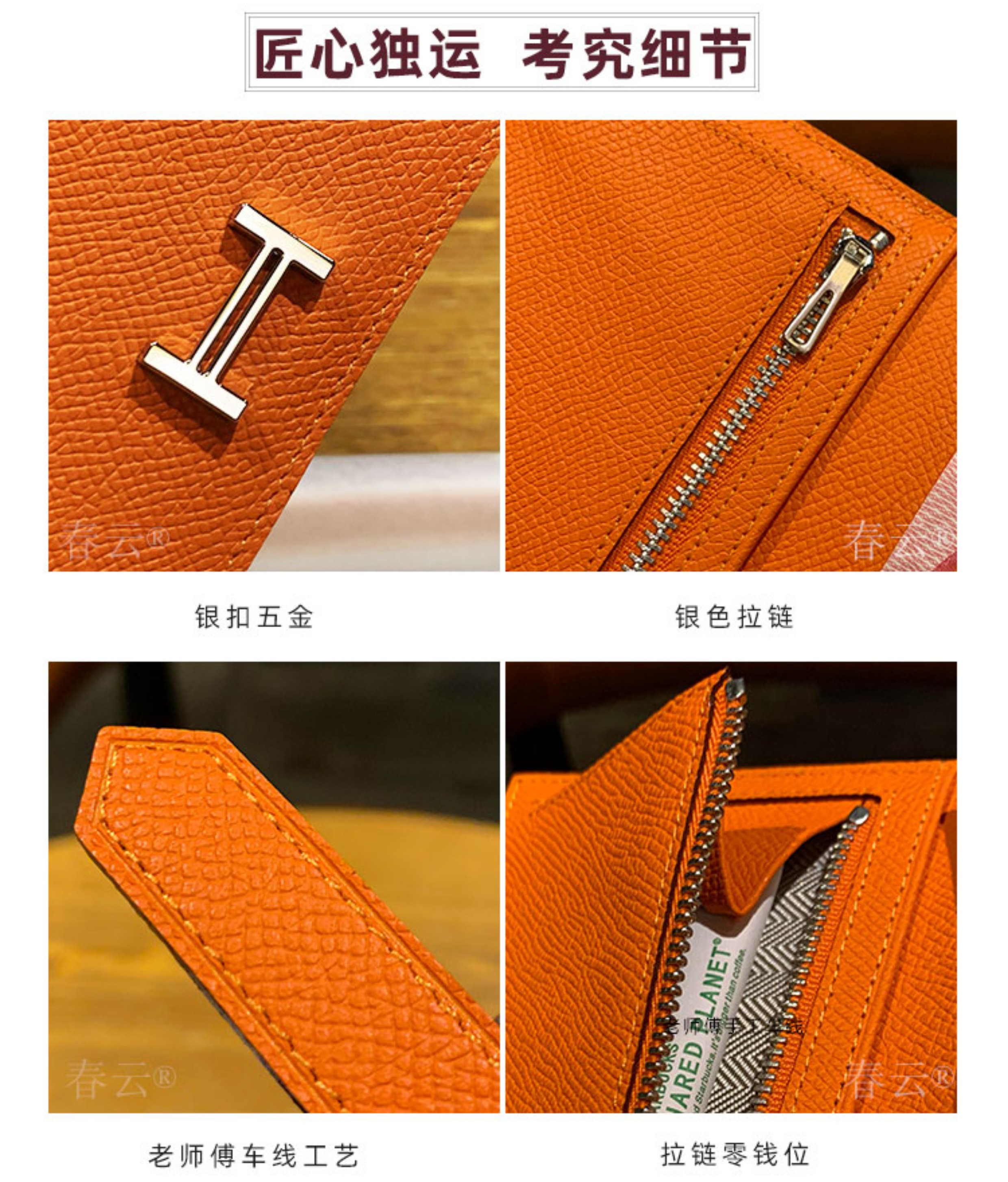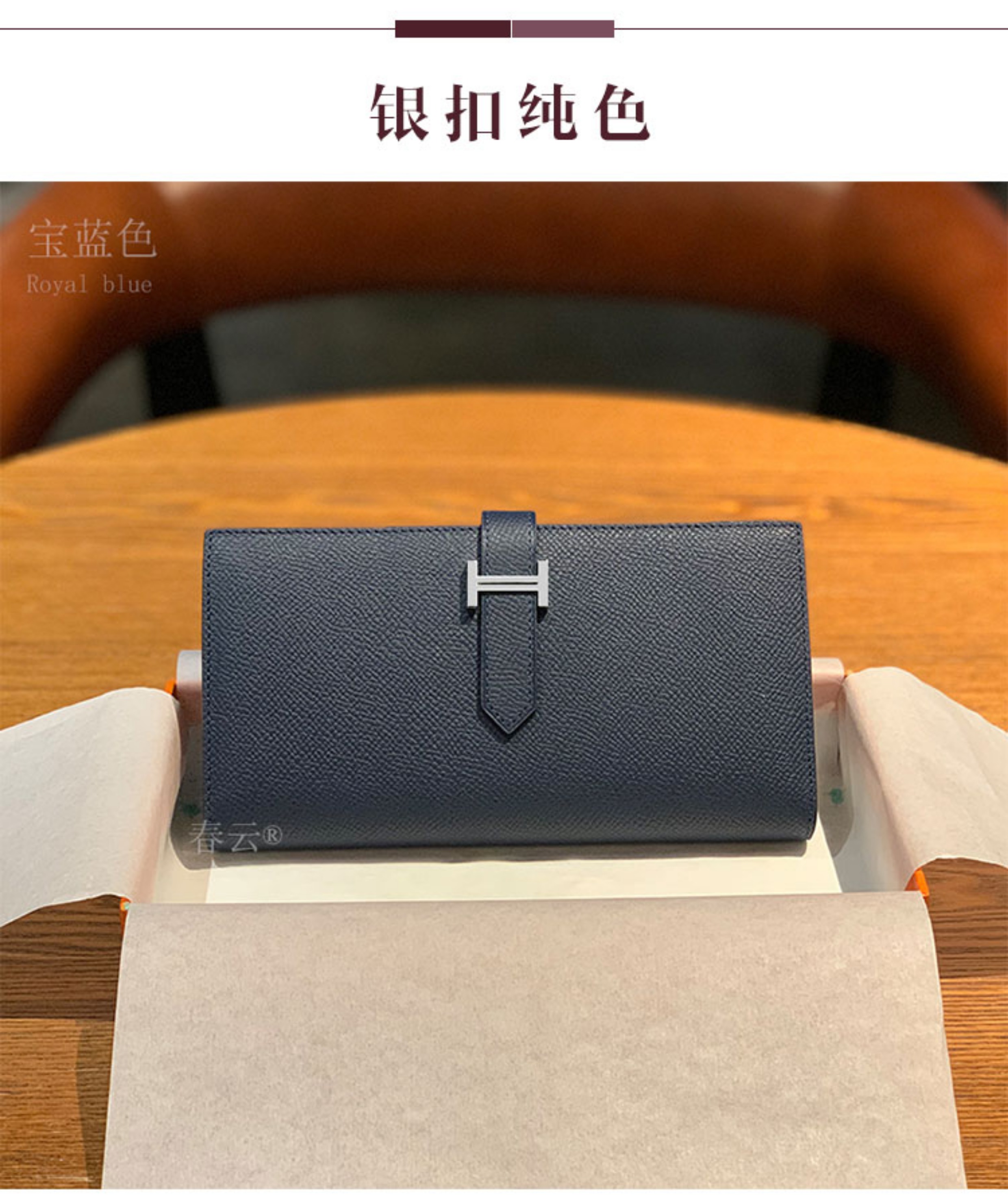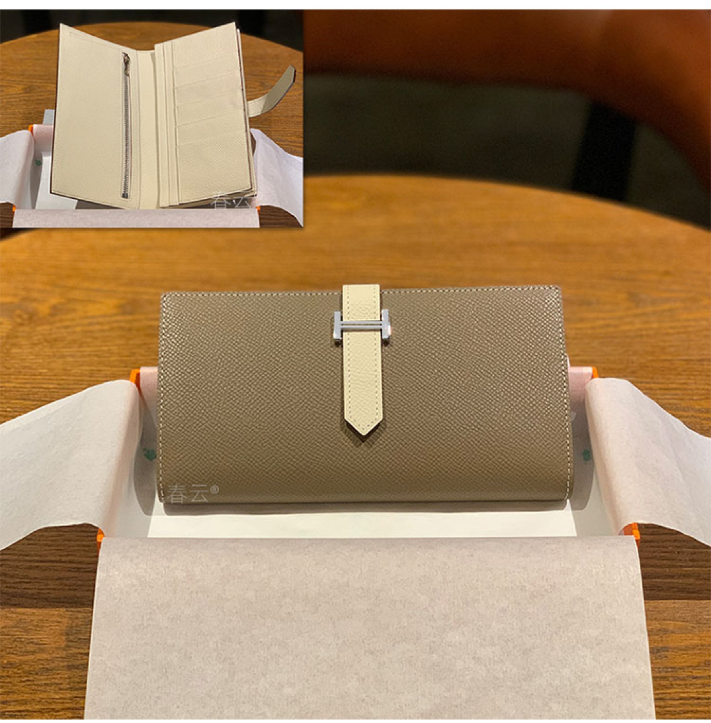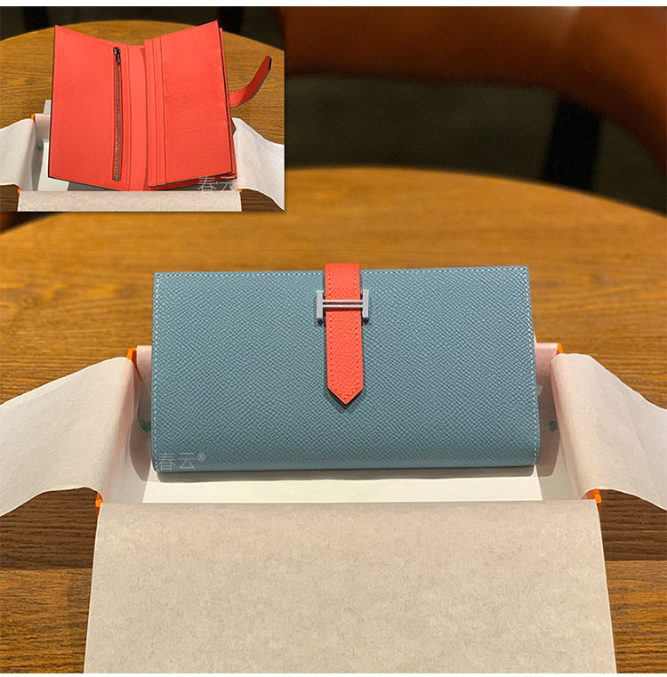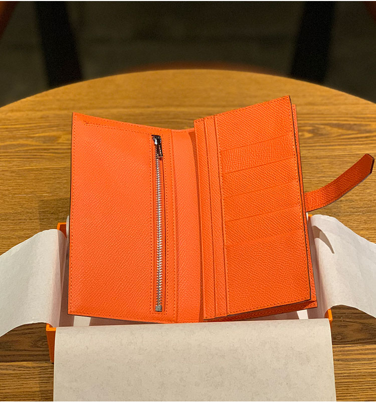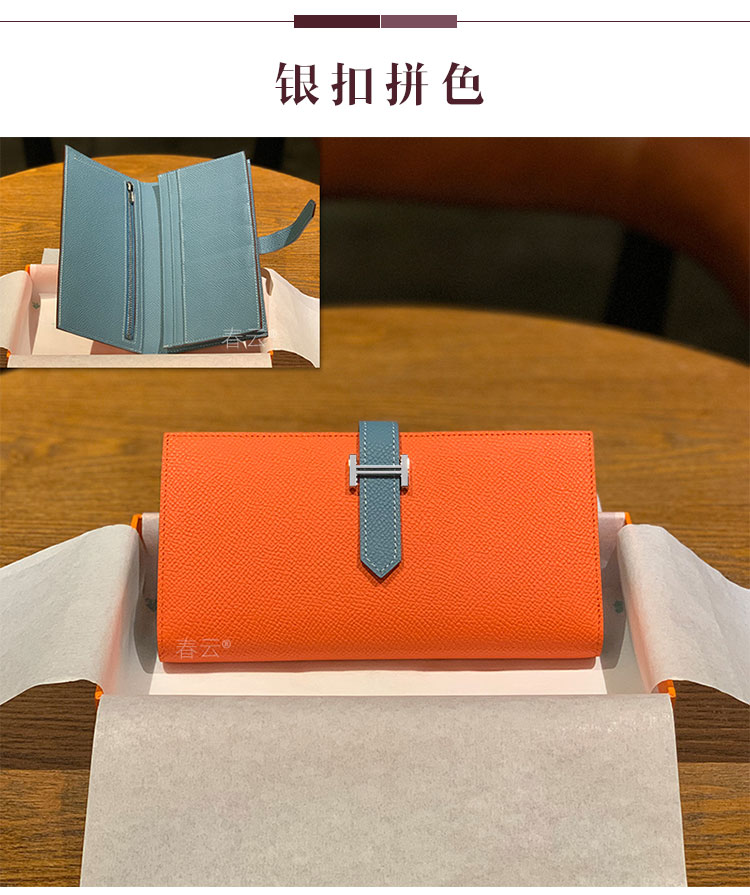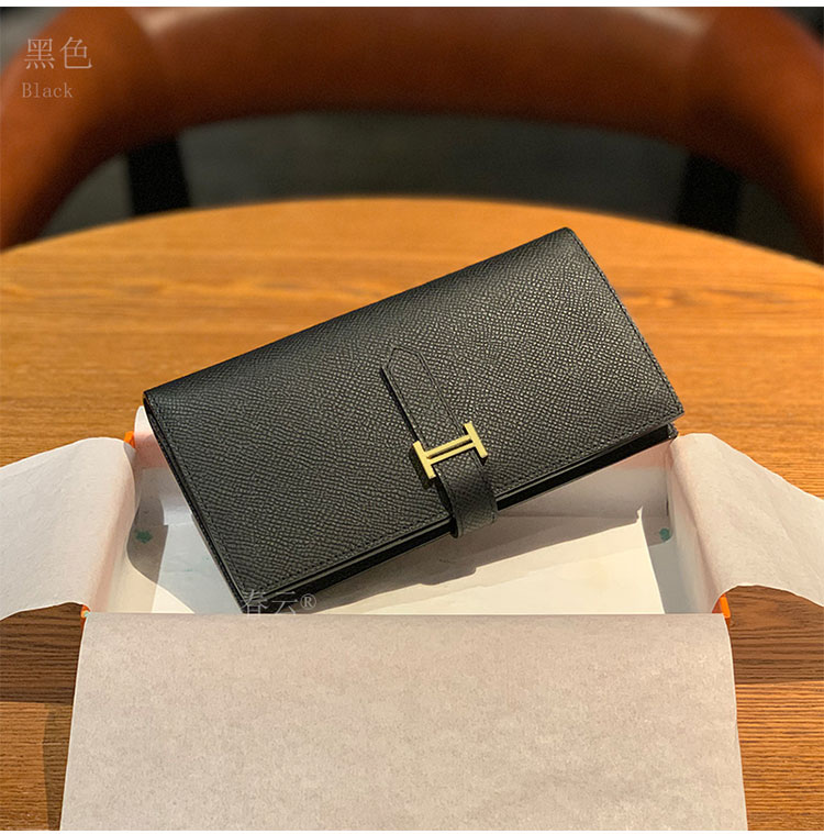2025新款钱包男女通用长款真皮金扣西装夹EPsom手掌纹对折钱夹