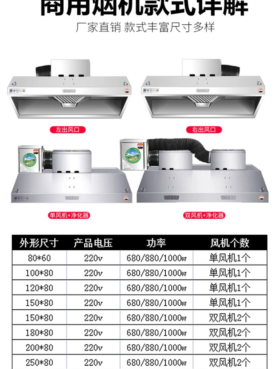 商用抽油烟机不锈钢排烟罩饭店家用厨房农村土灶吸烟机强力排风机