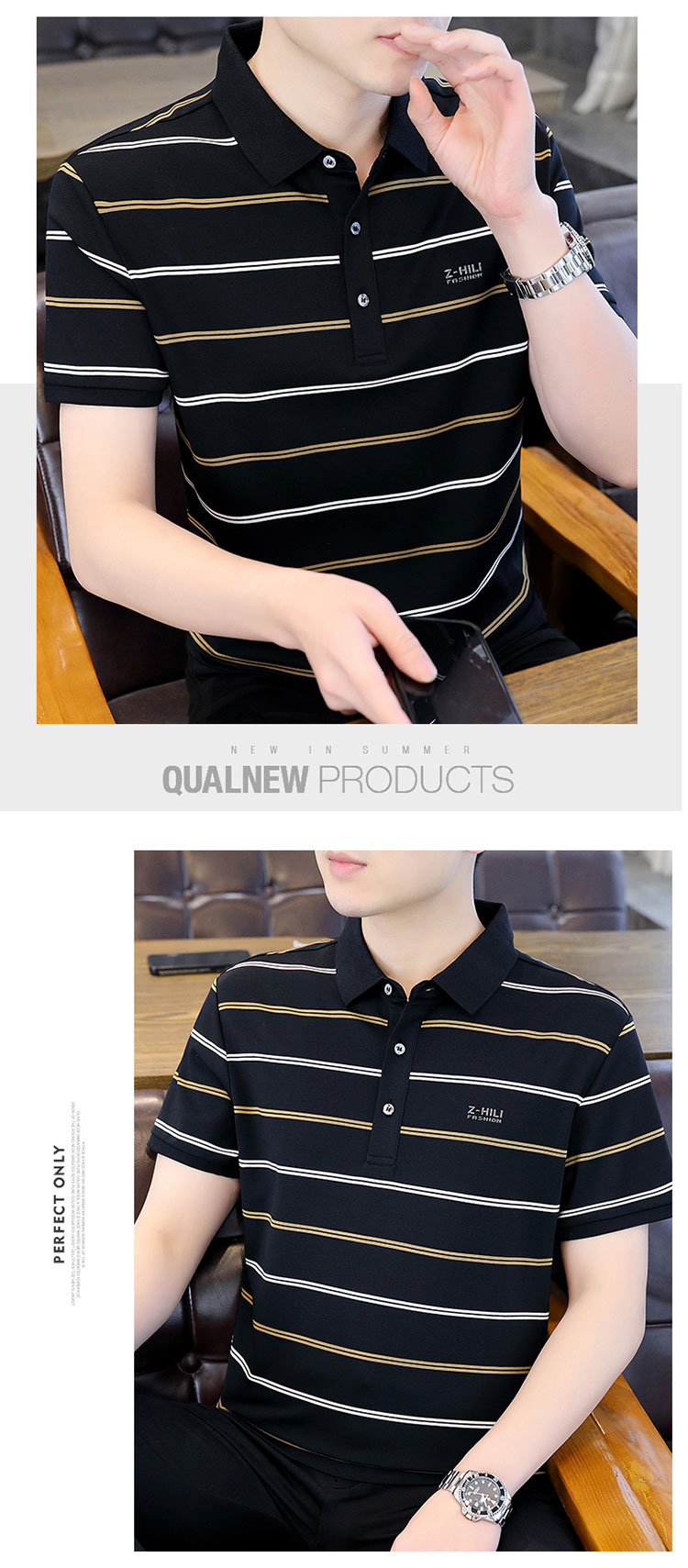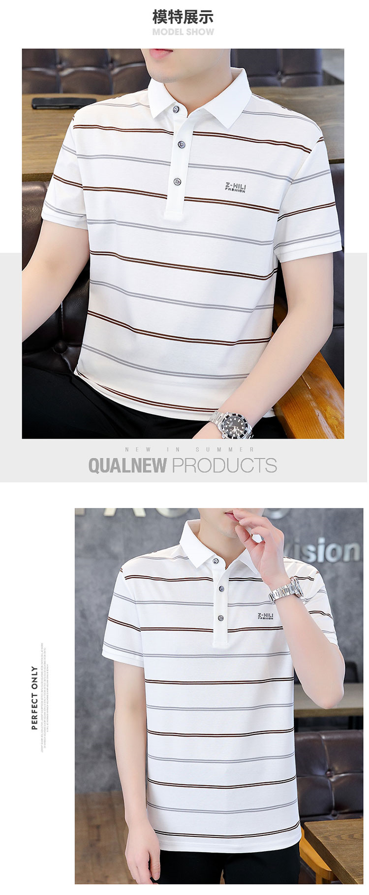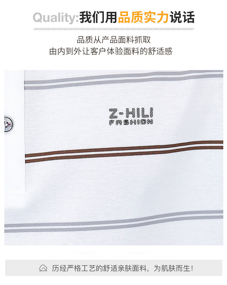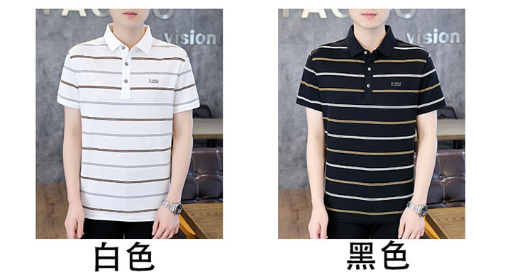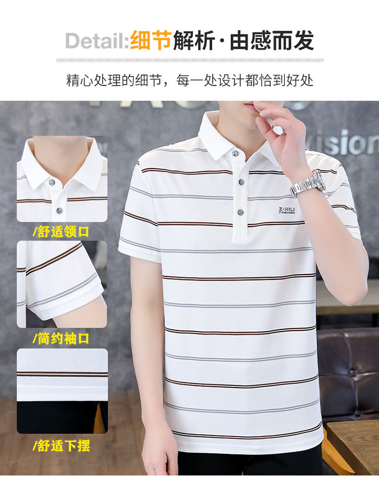 珠地丝光棉男士polo衫2024夏季高端商务衬衫领短袖t恤条纹上衣服